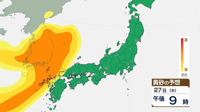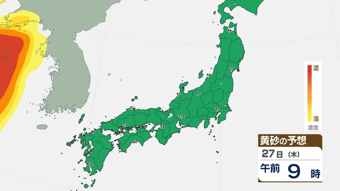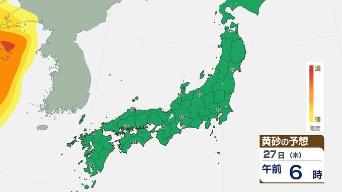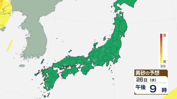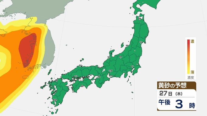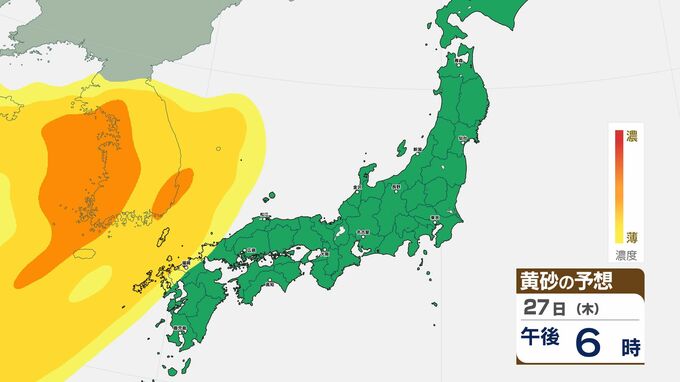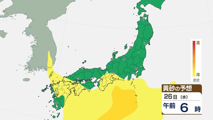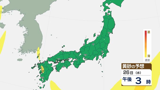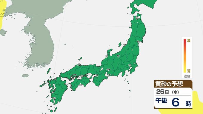 3連休明けは黄砂か【黄砂情報】25日~26日にかけて西日本から南西諸島の広範囲で黄砂予想…視程が5キロ未満になるところも【黄砂のシミュレーション掲載】