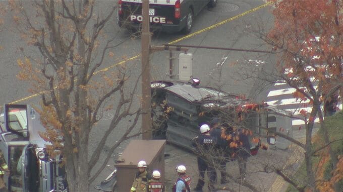 【速報】車2台が横転…長野市中心部の国道19号「昭和通り」の交差点 2台ともに軽乗用車…70代女性と30代男性が運転【現場の画像掲載】 2025年11月24日(月) 15:20 国内 【現場の写真 長野市南県町で車2台横転】