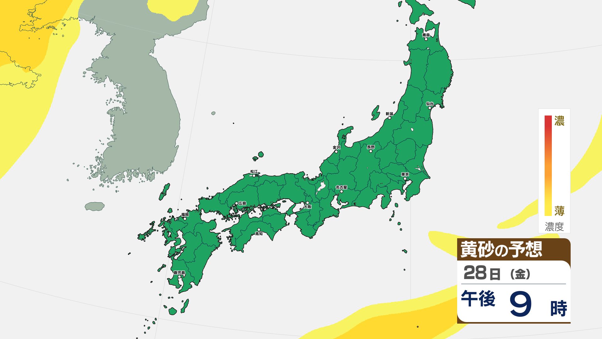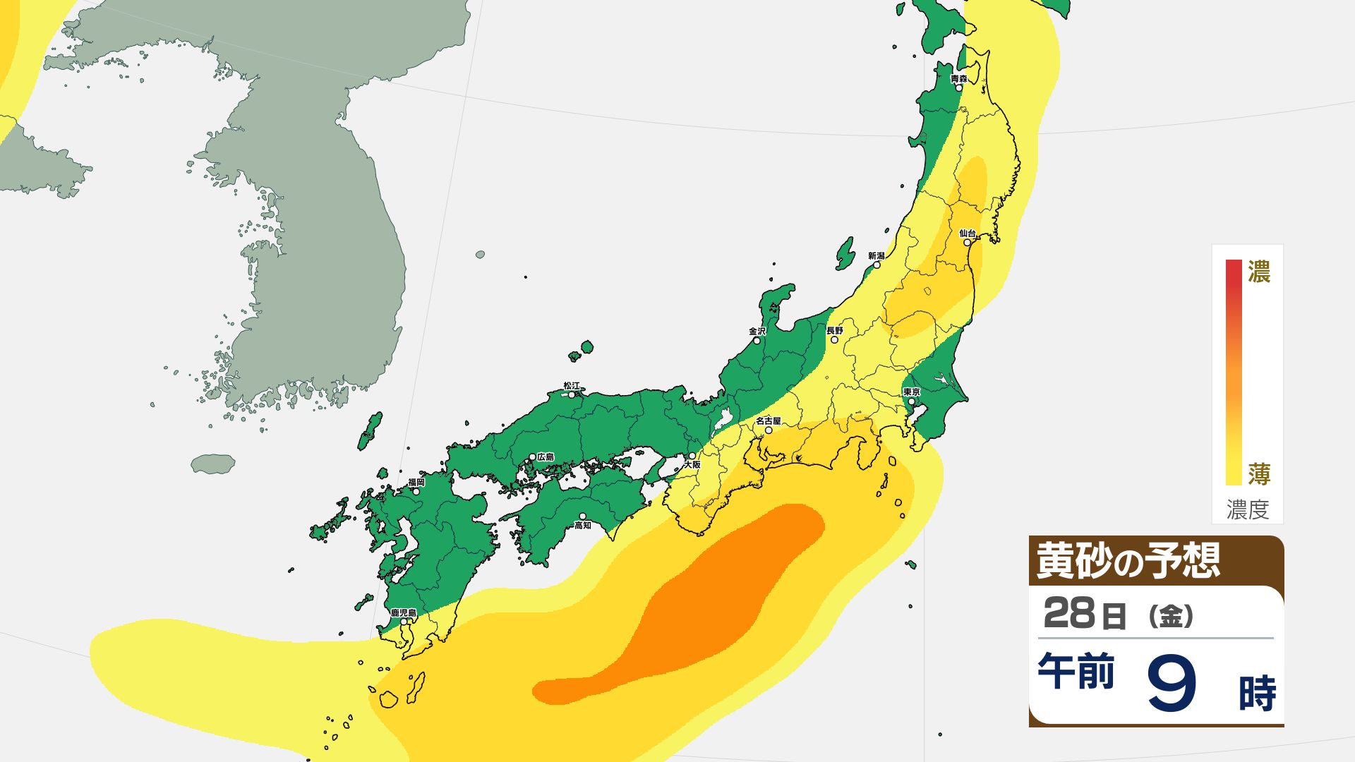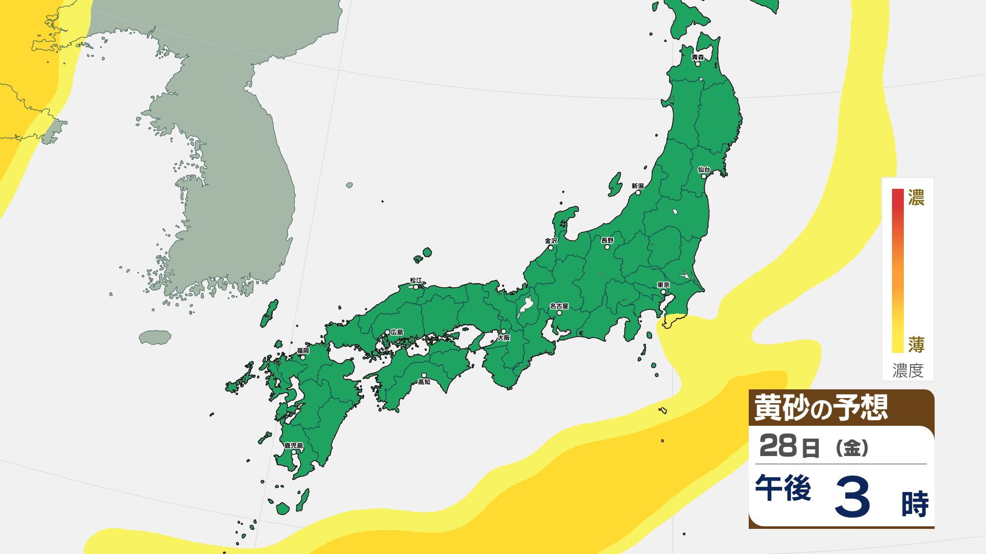 関東甲信も28日は黄砂に注意 【黄砂情報】見通せる距離は10キロ未満と予想…黄砂の付着や交通の影響などに注意を 【シミュレーション掲載】