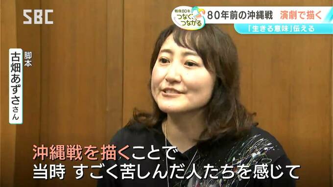 脚本 古畑あずささん:「沖縄戦を描くことで、当時すごく苦しんだ人たちを感じて、それでも、そこでかわいそうだったっていうことを伝えたいわけじゃなくて、当時確実にそこに確かに生きた人たちがいたよということを感じることで、何かそこに寄り添っていきたいっていう。そこから今生きていく、今この時代を生きている私達はどう生きるかっていうことを一緒に考えたいなと」