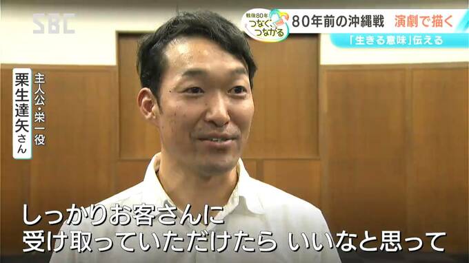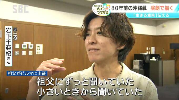 兵士役 岩下千亜紀さん:「祖父にずっと聞いていた、小さいときから聞いていた実際の戦場の話っていうのが自分の中には入っていたので、(戦争に対して)すごく意識があったわけではないけど、今回のこういうふうに仲間とやるっていう舞台が戦争の話だっていうふうに聞いたときに、やっと自分事になったというか、意味を感じています」