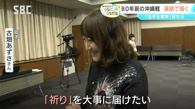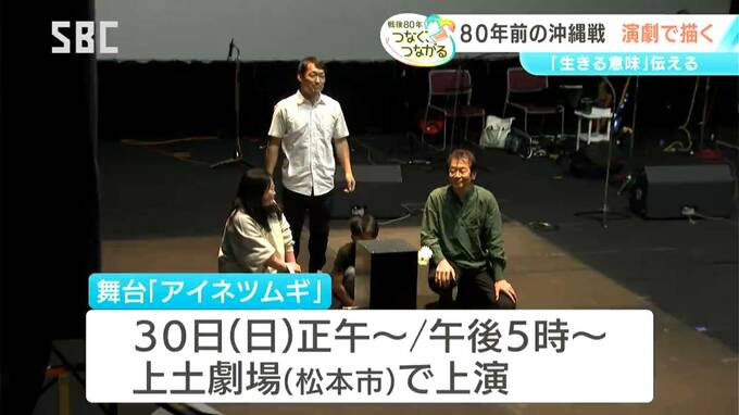 信州の戦後80年つなぐ、つながる 演劇で伝えたい「生きることの意味」【信州の戦後80年つなぐ、つながる】沖縄戦をオリジナル脚本で描く 終戦前後の沖縄と現代の信州をつなぐ物語 2025年11月27日(木) 20:10 国内 脚本 古畑あずささん:「希望とか夢を持って生きられる世界でありますようにっていう、祈りっていうところを大事に届けたいなと思ってます」 舞台「アイネツムギ」は30日、松本市の上土劇場で上演されます。