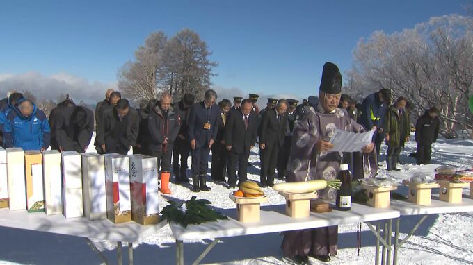 野沢温泉スキー場では29日午前、関係者およそ60人が集まりシーズン中の安全を願いました。