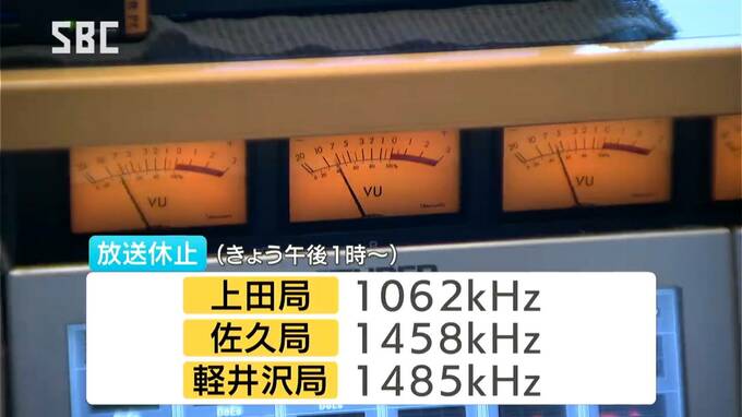 このあと午後1時から上田局の1062キロヘルツ、佐久局の1458キロヘルツ、軽井沢局の1485キロヘルツの放送が休止されます。