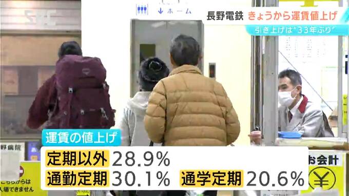 長野電鉄は、きょうから運賃が値上げされました。消費税率の変更に伴うものを除くと、1992年以来33年ぶりです。
