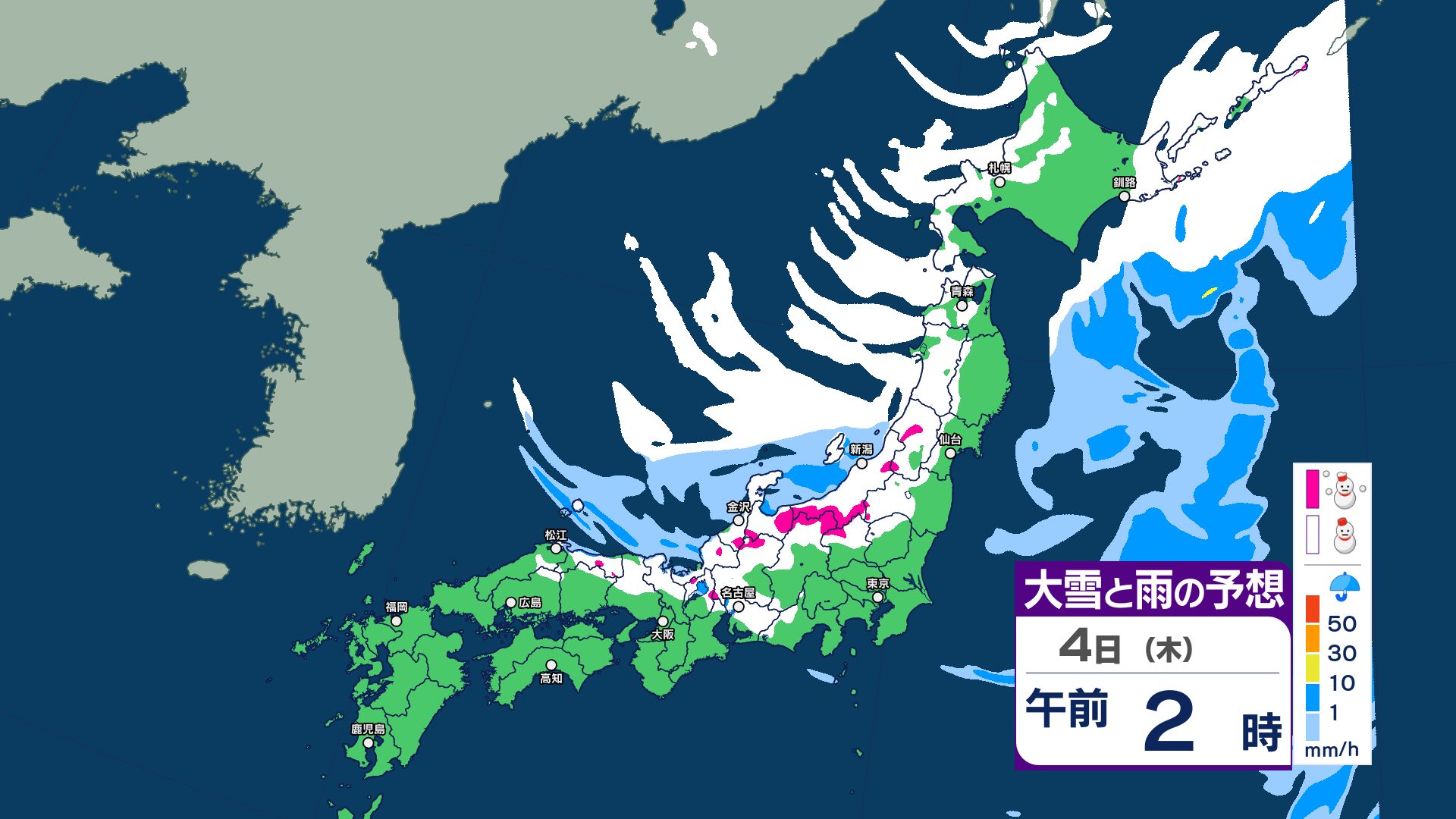 【大雪情報】関東甲信 警報級の大雪の可能性も 冬型の気圧配置が強まる 3日夜~4…