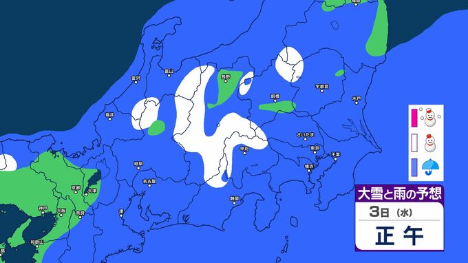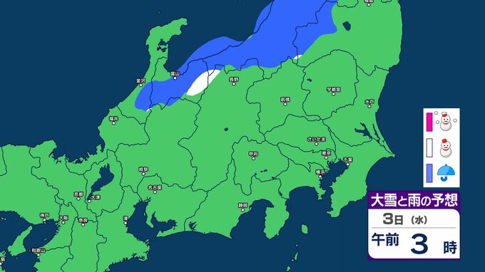 【大雪情報】関東甲信 3日夜から長野県と関東北部で大雪となる所がある見込み 関…