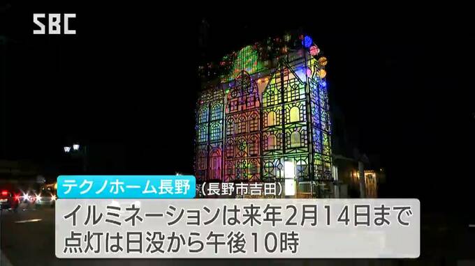 住宅建設会社「テクノホーム長野」が社屋をおよそ6万個のLED電球で飾りました。