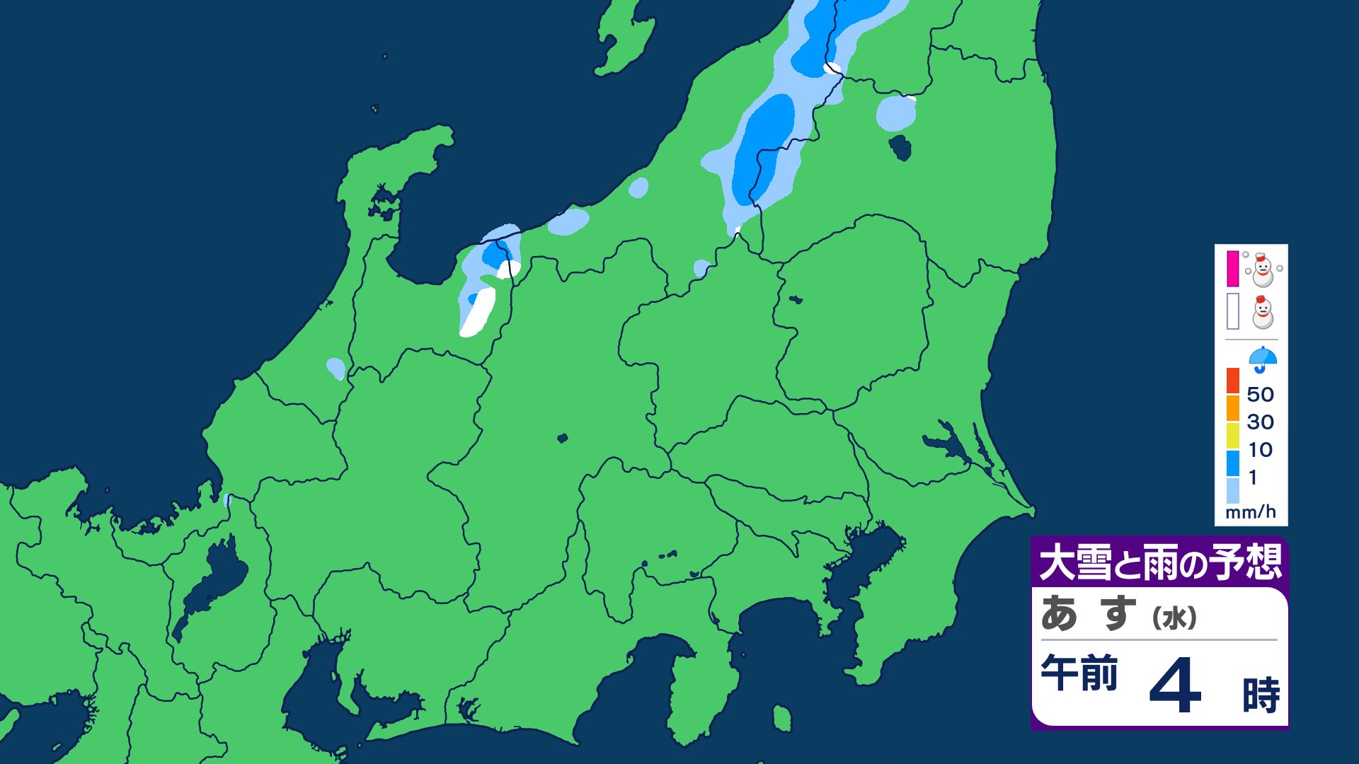 4日の雪と雨の予想