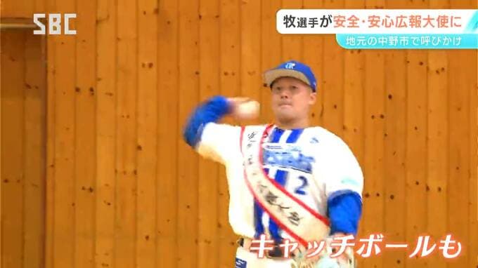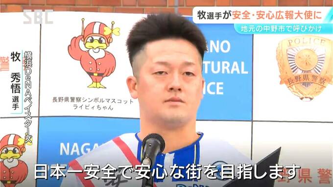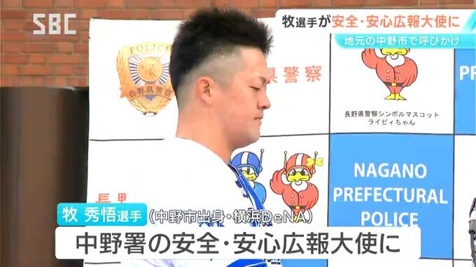 中野市出身でプロ野球横浜DeNAの牧秀悟選手が、中野警察署の「安全・安心広報大使」として交通安全などを呼びかけました。