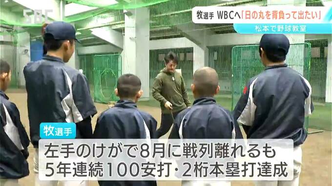 牧選手は11月30日、松本市内で開かれた野球教室にも参加しました。集まった中学生にバッティングを指導します。