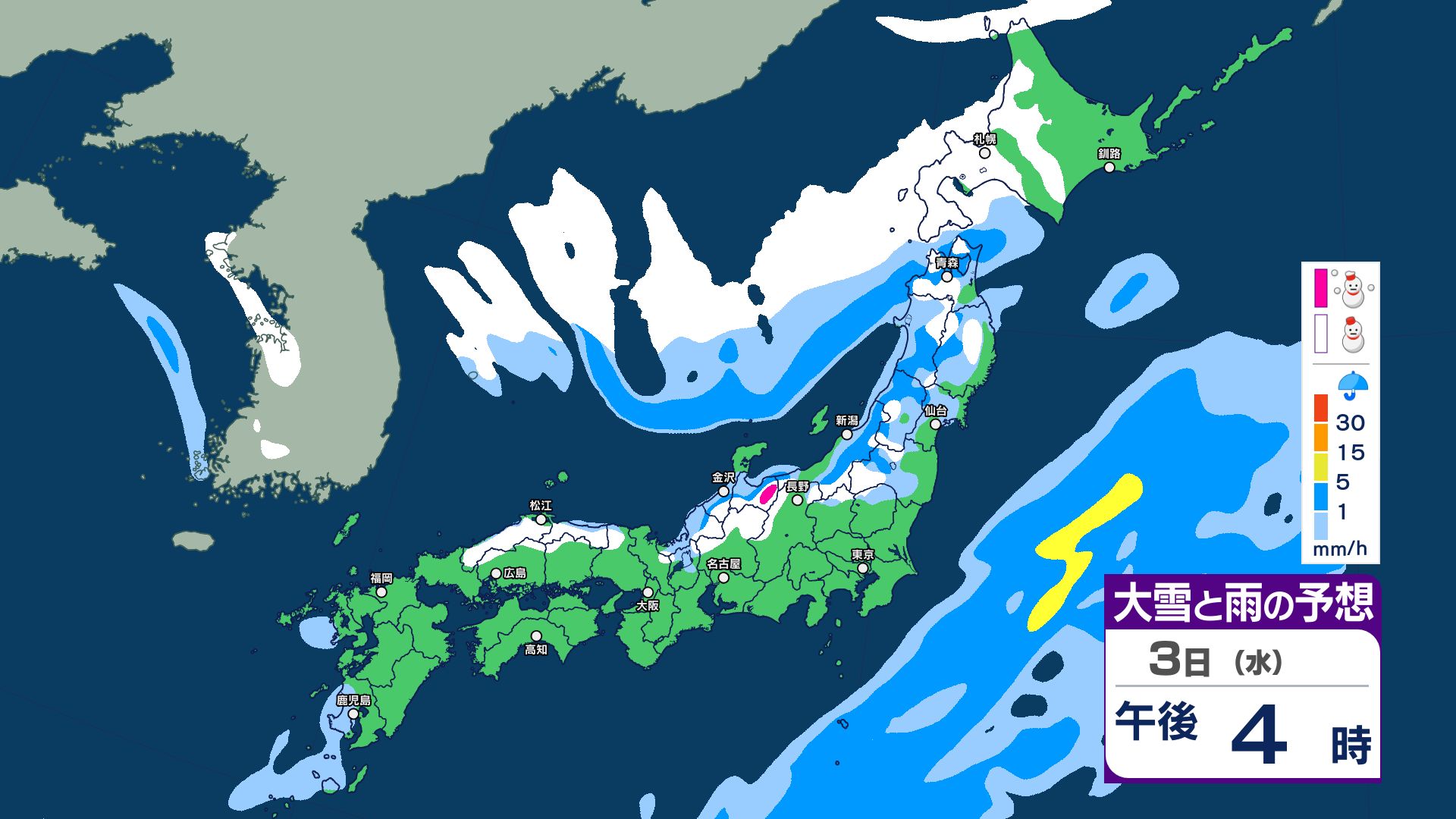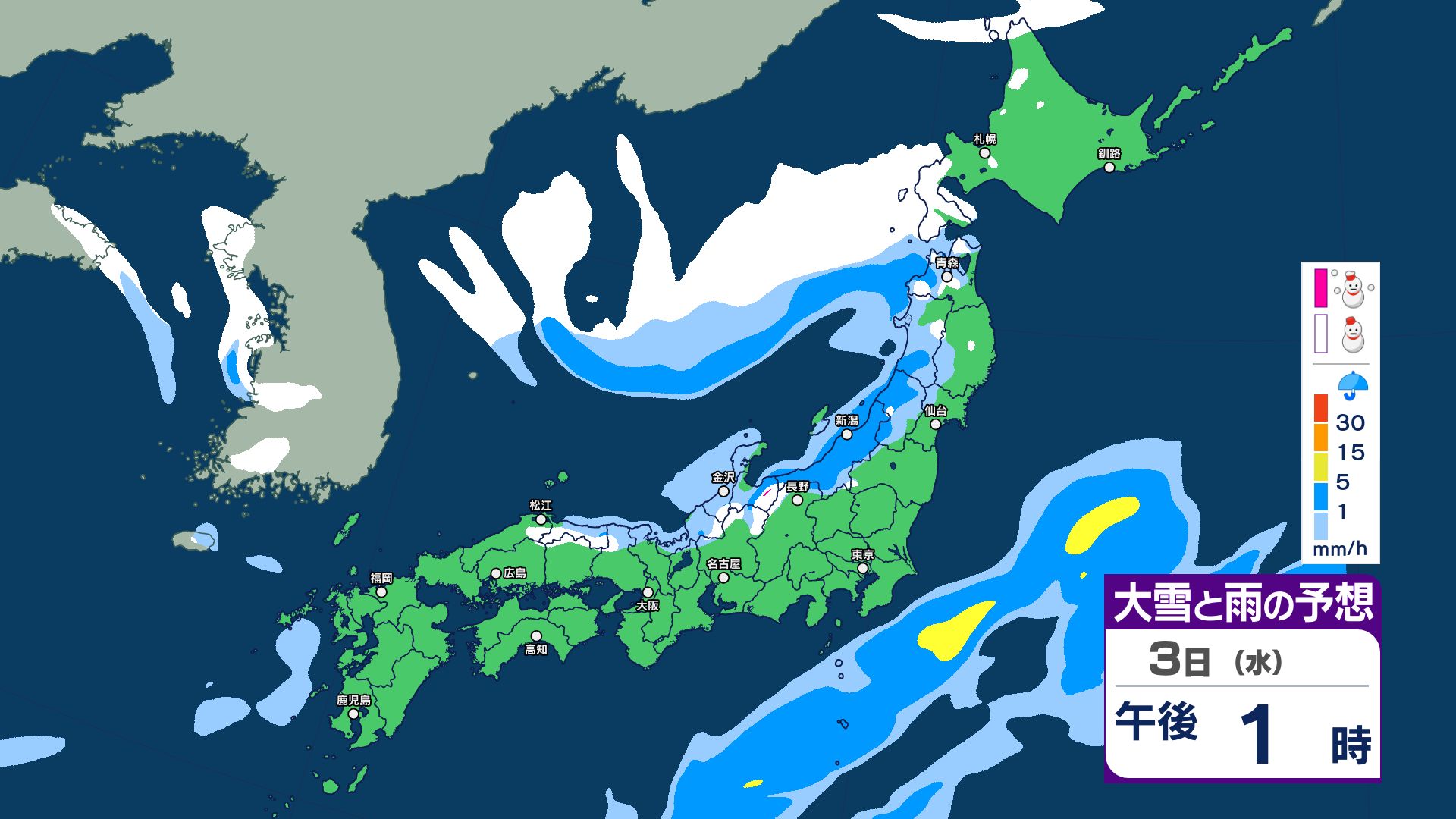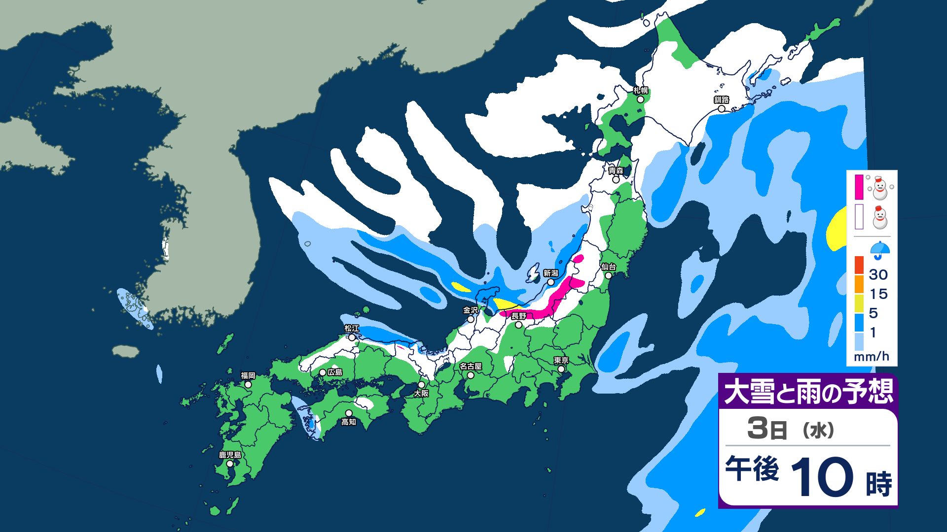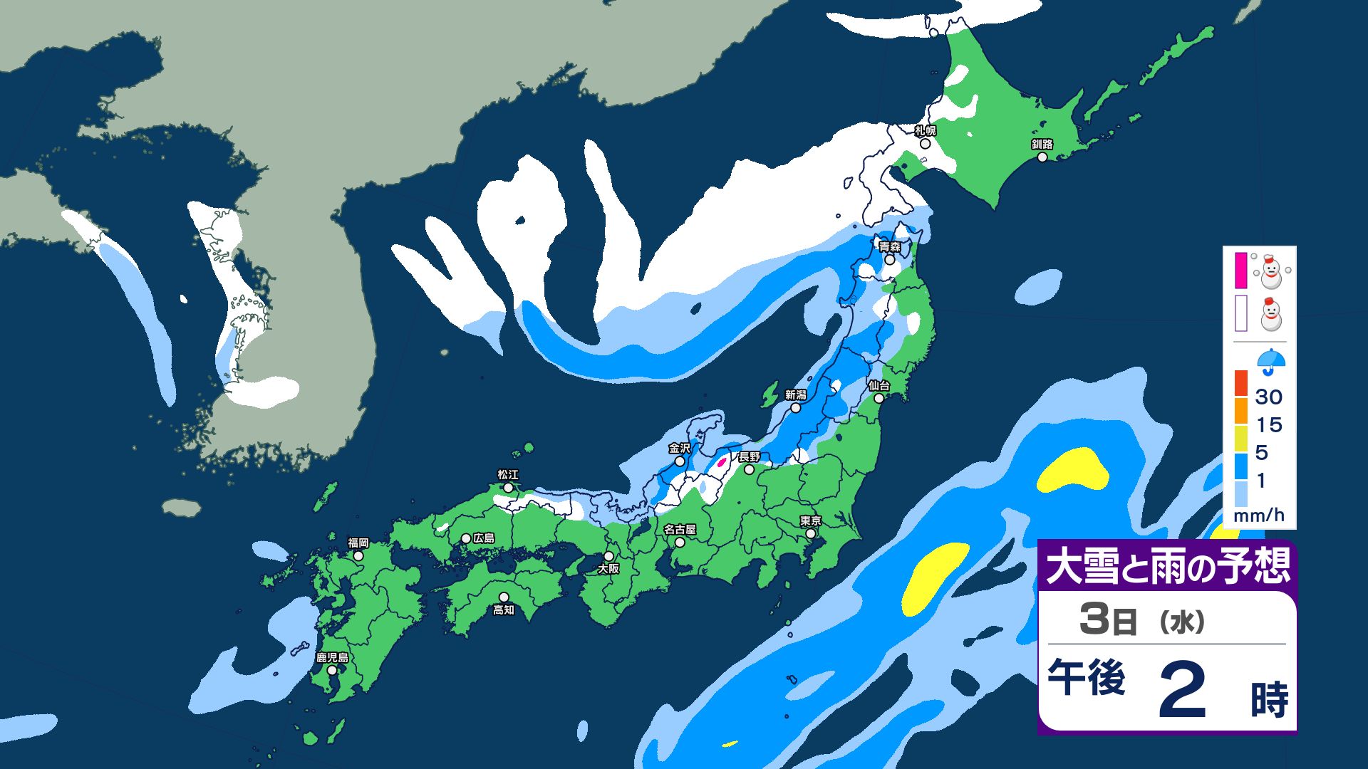 【大雪情報】3日夜~4日にかけて大雪注意…24時間予想降雪量は東北地方70センチ・関東甲信50センチ 警報級の大雪の可能性【5日までの1時間ごと 雪のシミュレーション更新】 2025年12月2日(火) 20:56 国内 【3日~5日 雪のシミュレーション・1時間ごと掲載】