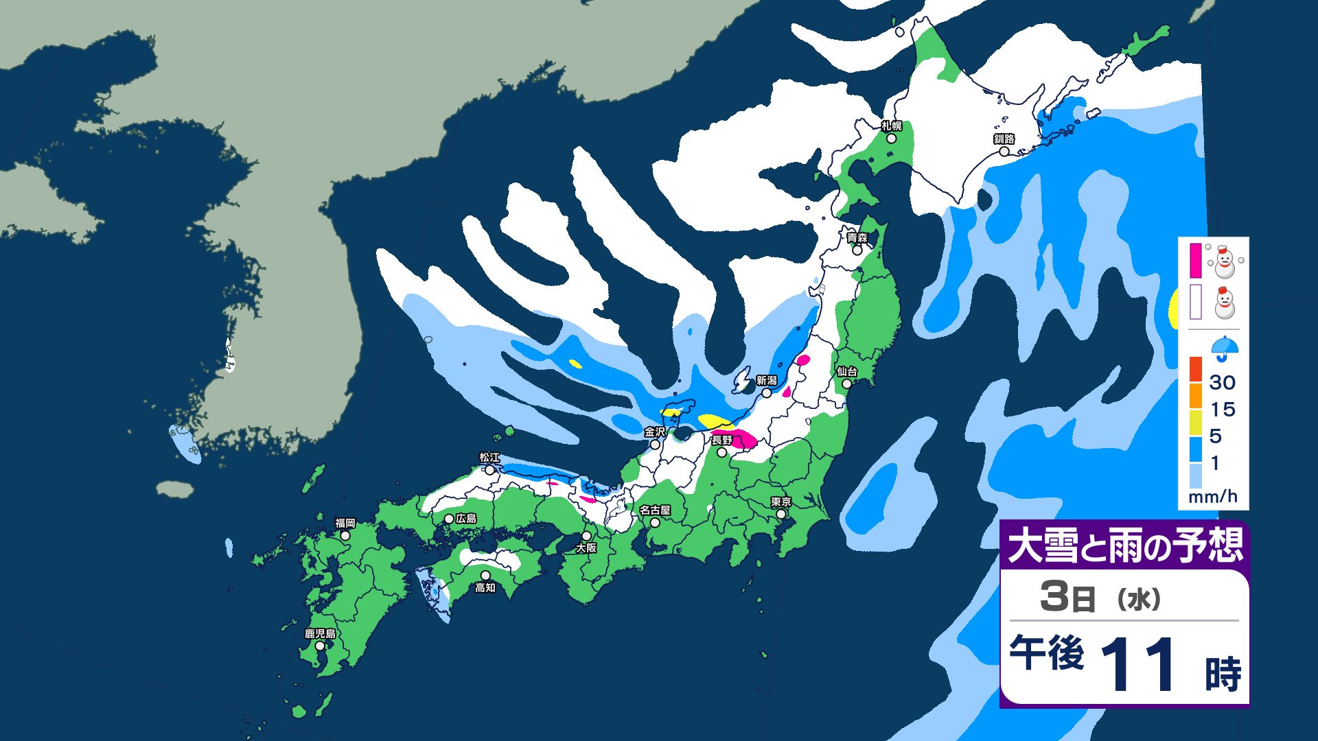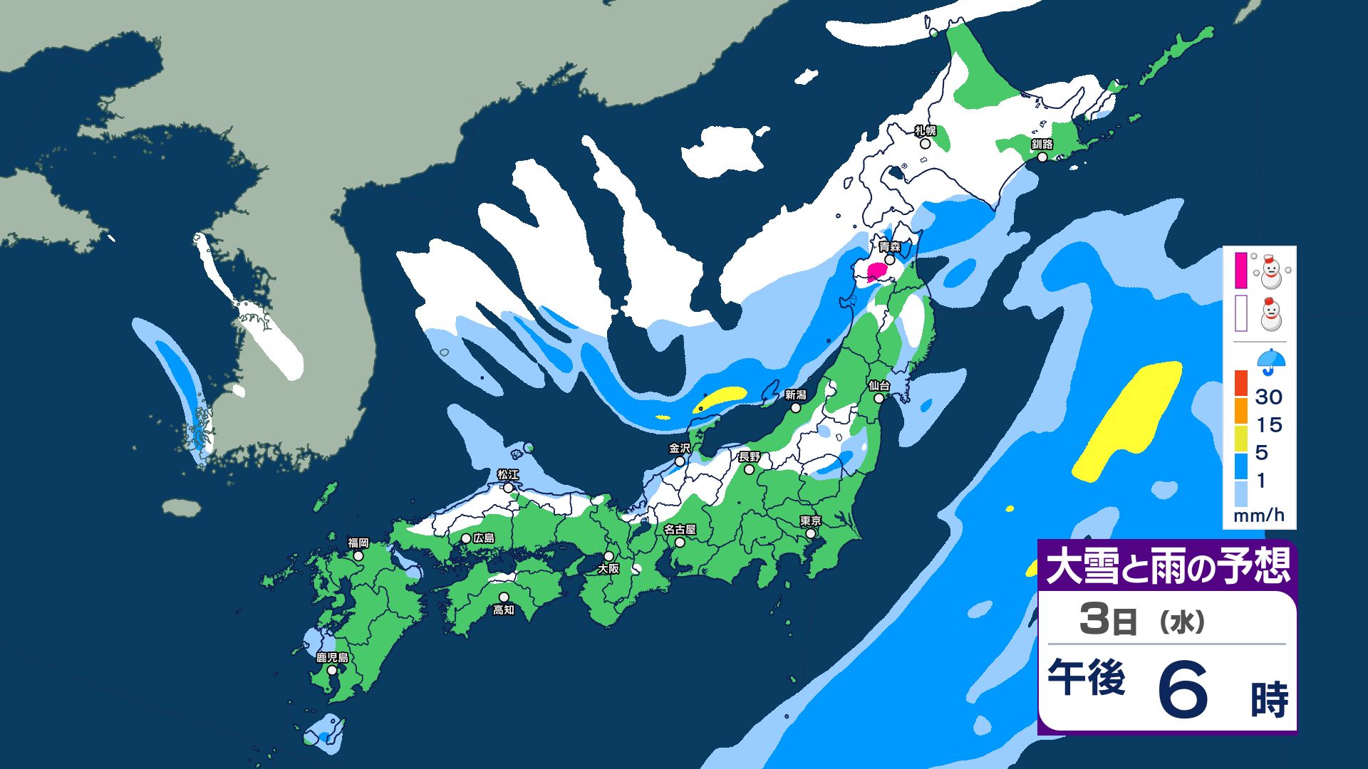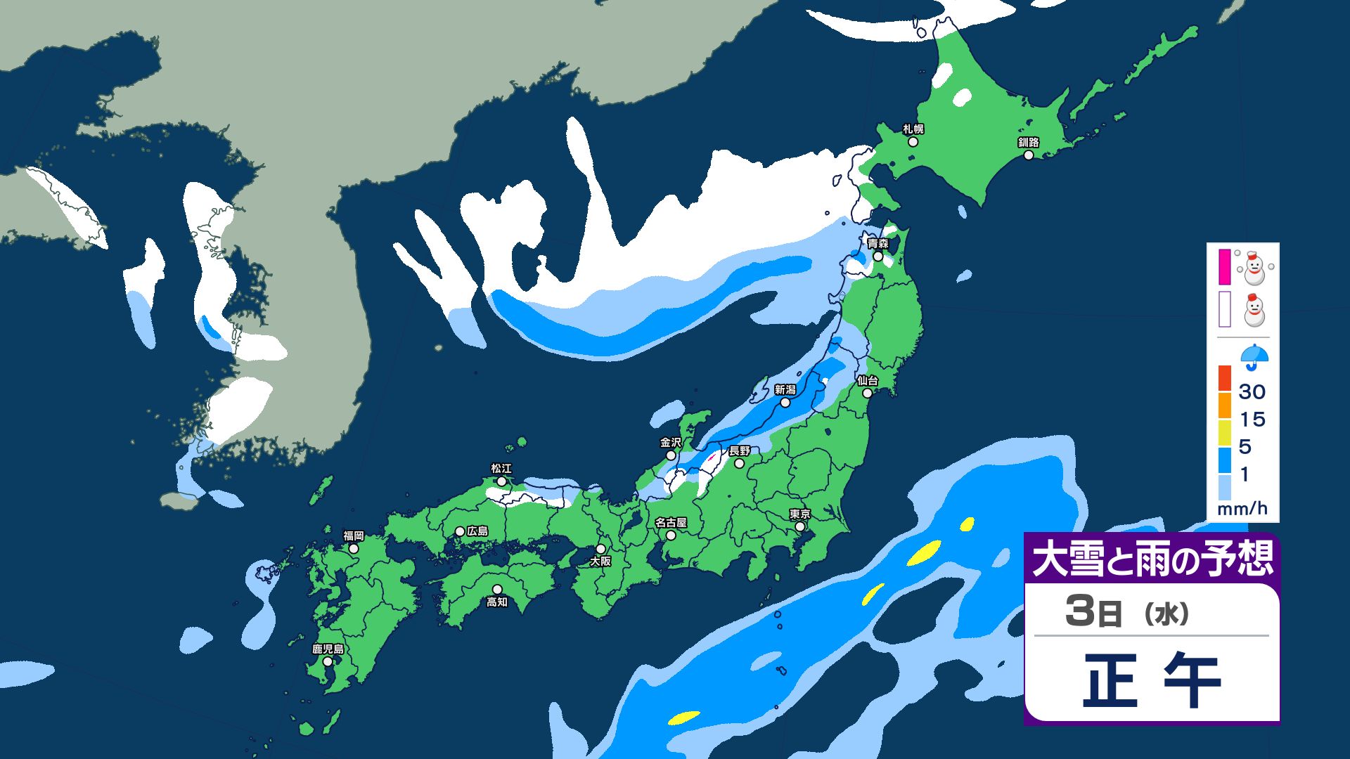 【大雪情報】3日夜~4日にかけて大雪注意…24時間予想降雪量は東北地方70センチ・関東甲信50センチ 警報級の大雪の可能性【5日までの1時間ごと 雪のシミュレーション更新】 2025年12月2日(火) 20:56 国内 【3日~5日 雪のシミュレーション・1時間ごと掲載】
