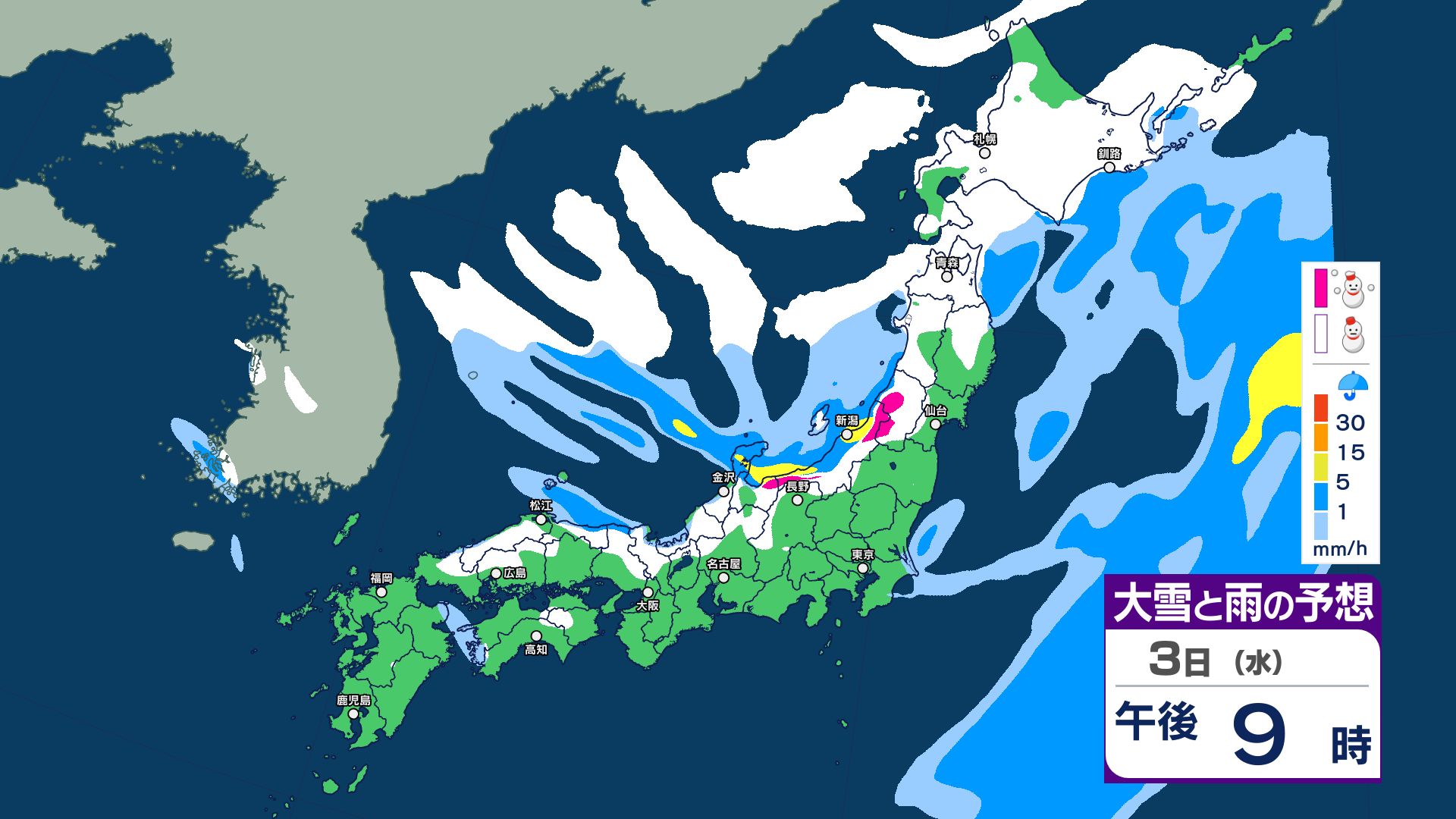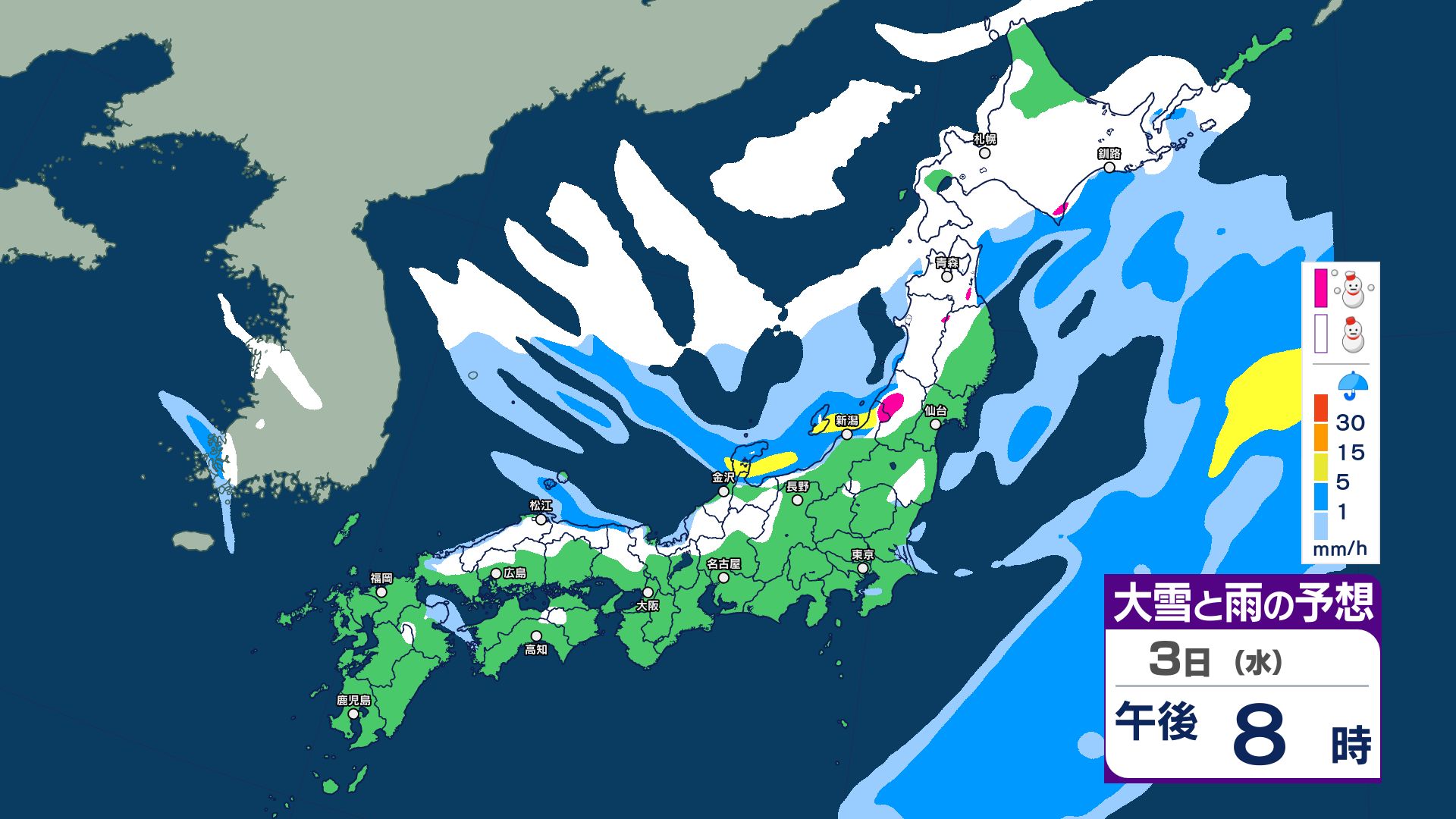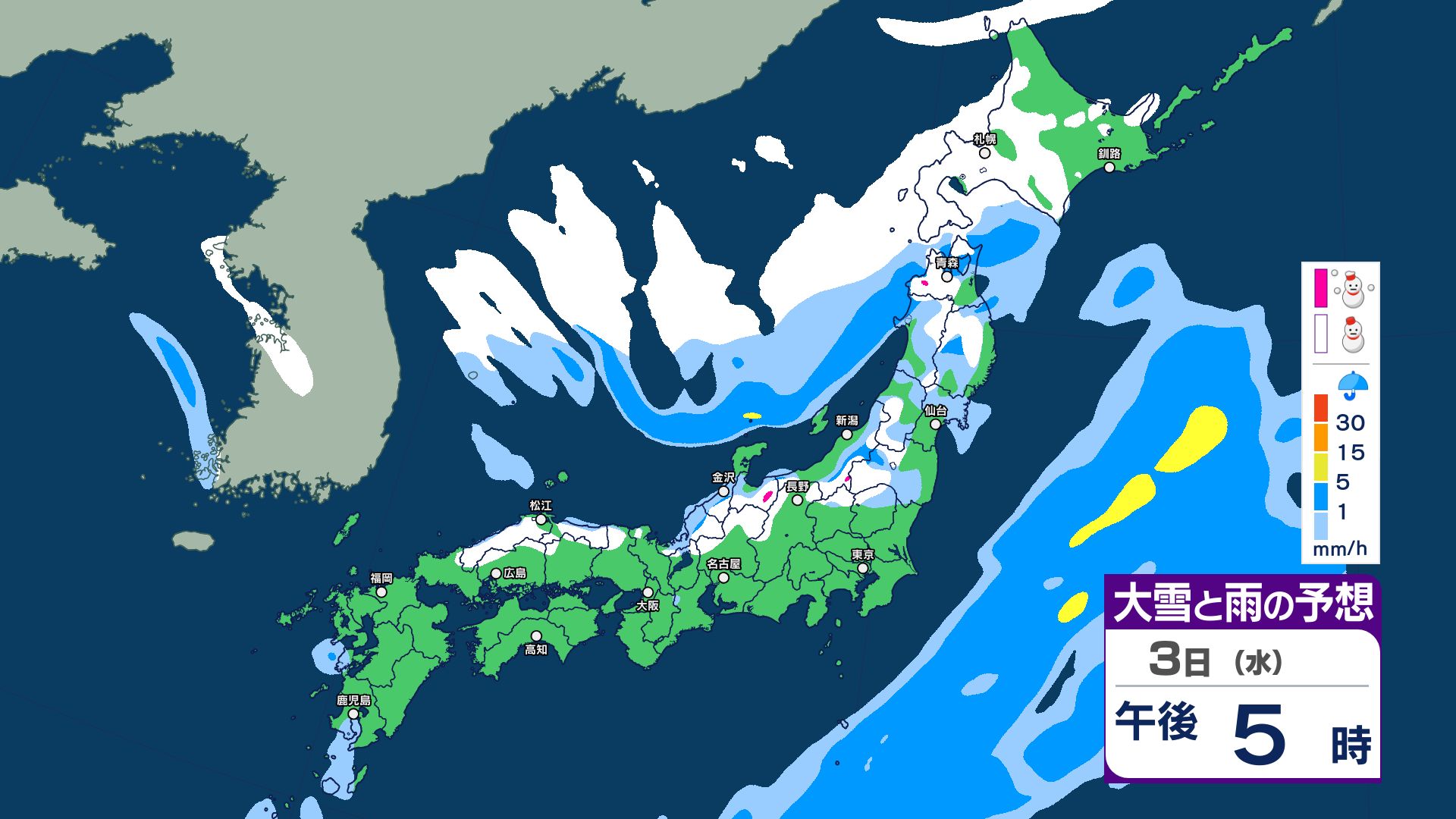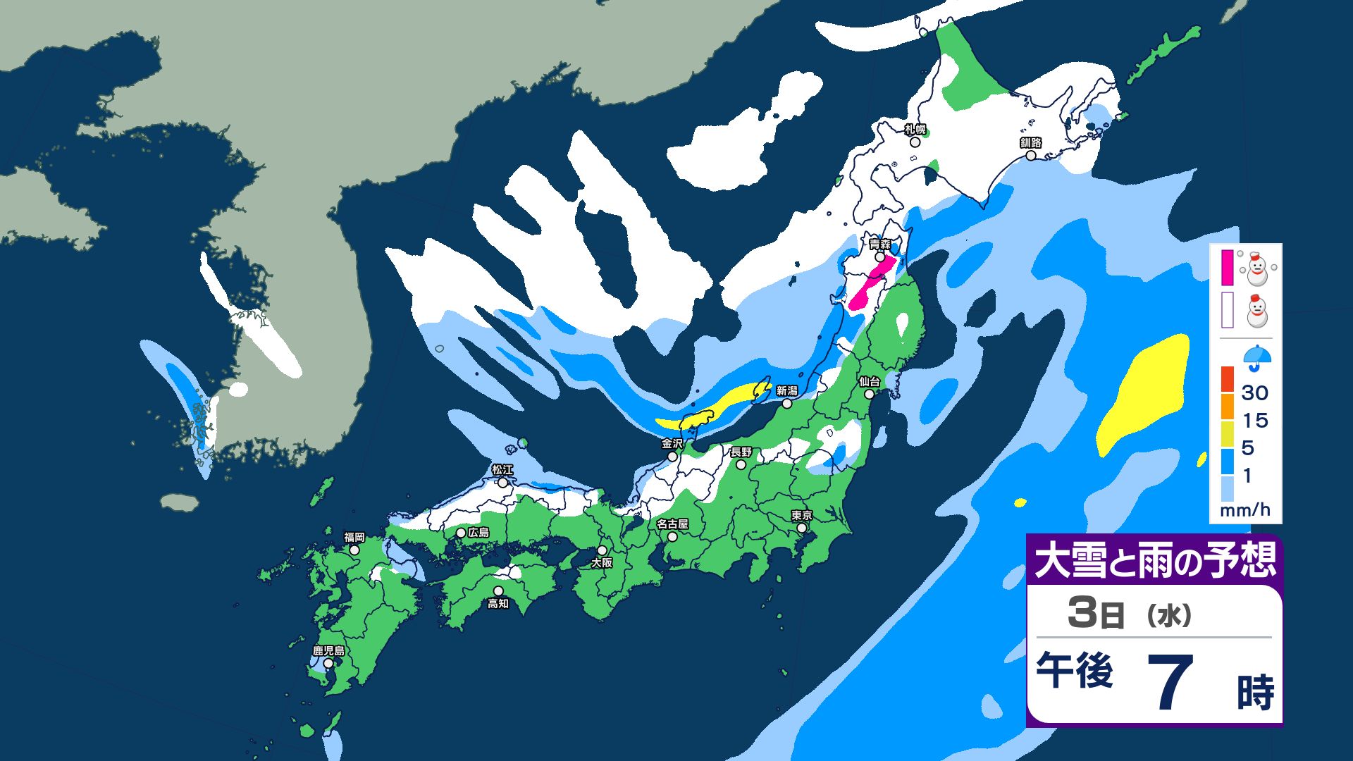 【大雪情報】3日夜~4日にかけて大雪注意…24時間予想降雪量は東北地方70センチ・関東甲信50センチ 警報級の大雪の可能性【5日までの1時間ごと 雪のシミュレーション更新】 2025年12月2日(火) 20:56 国内 【3日~5日 雪のシミュレーション・1時間ごと掲載】