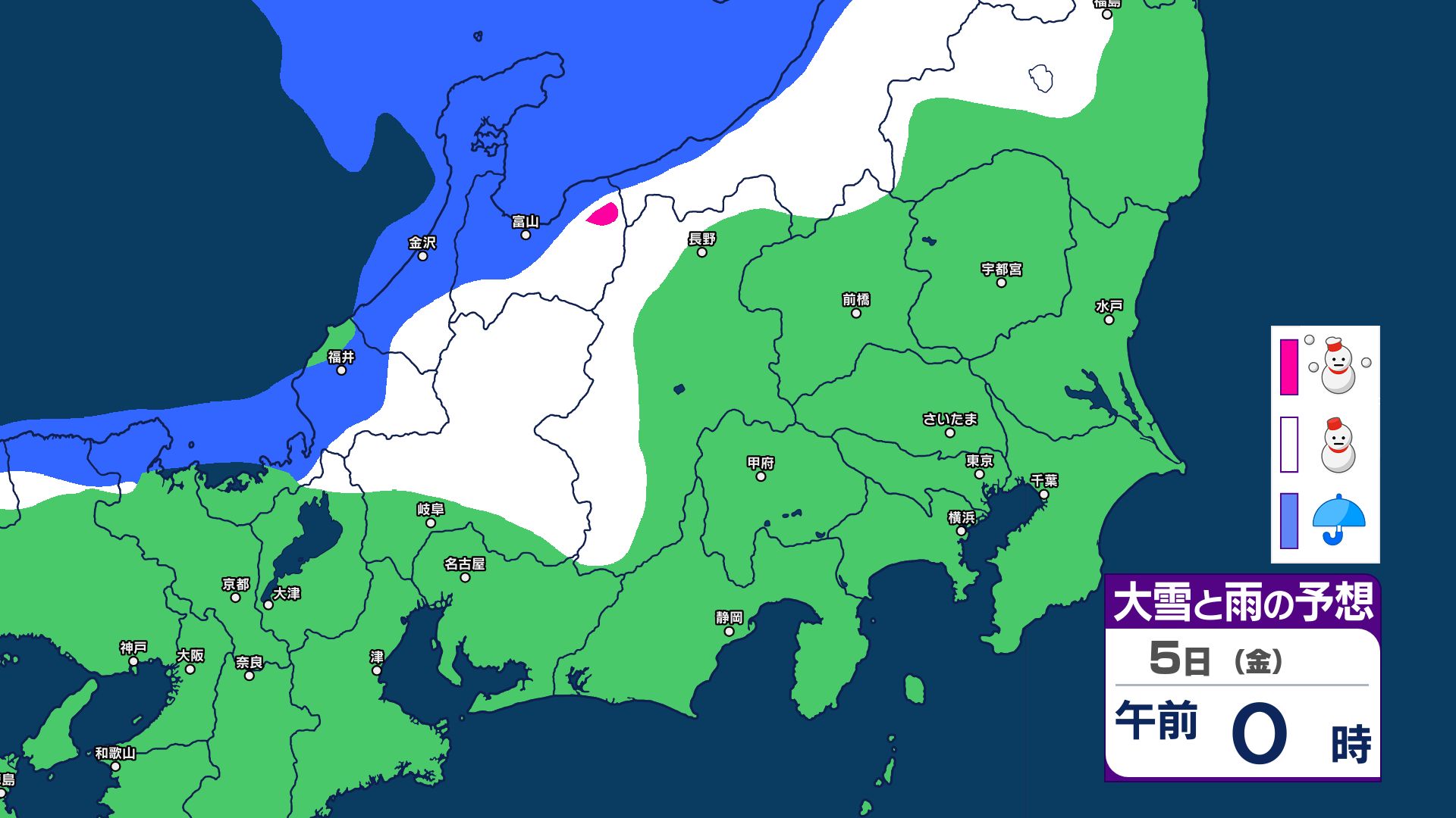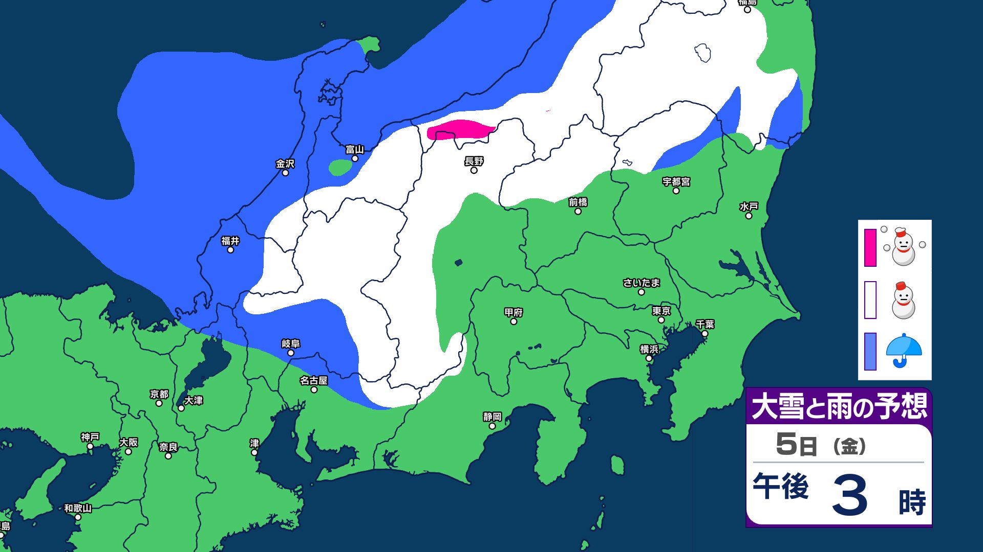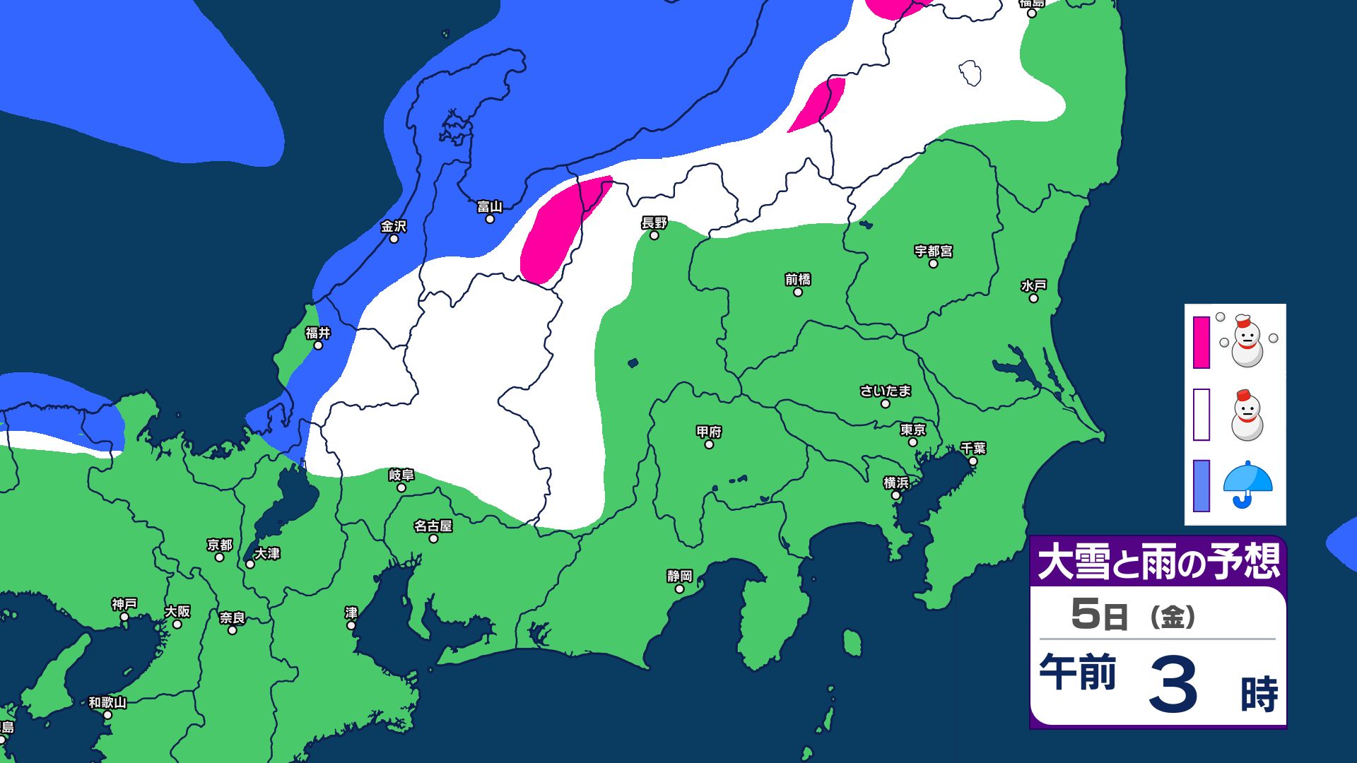 【大雪情報】関東甲信 冬型の気圧配置強まる 3日夜~4日昼前にかけ【雪と雨のシミ…