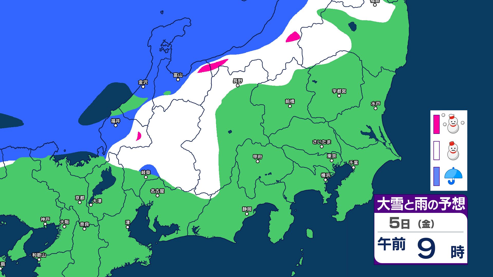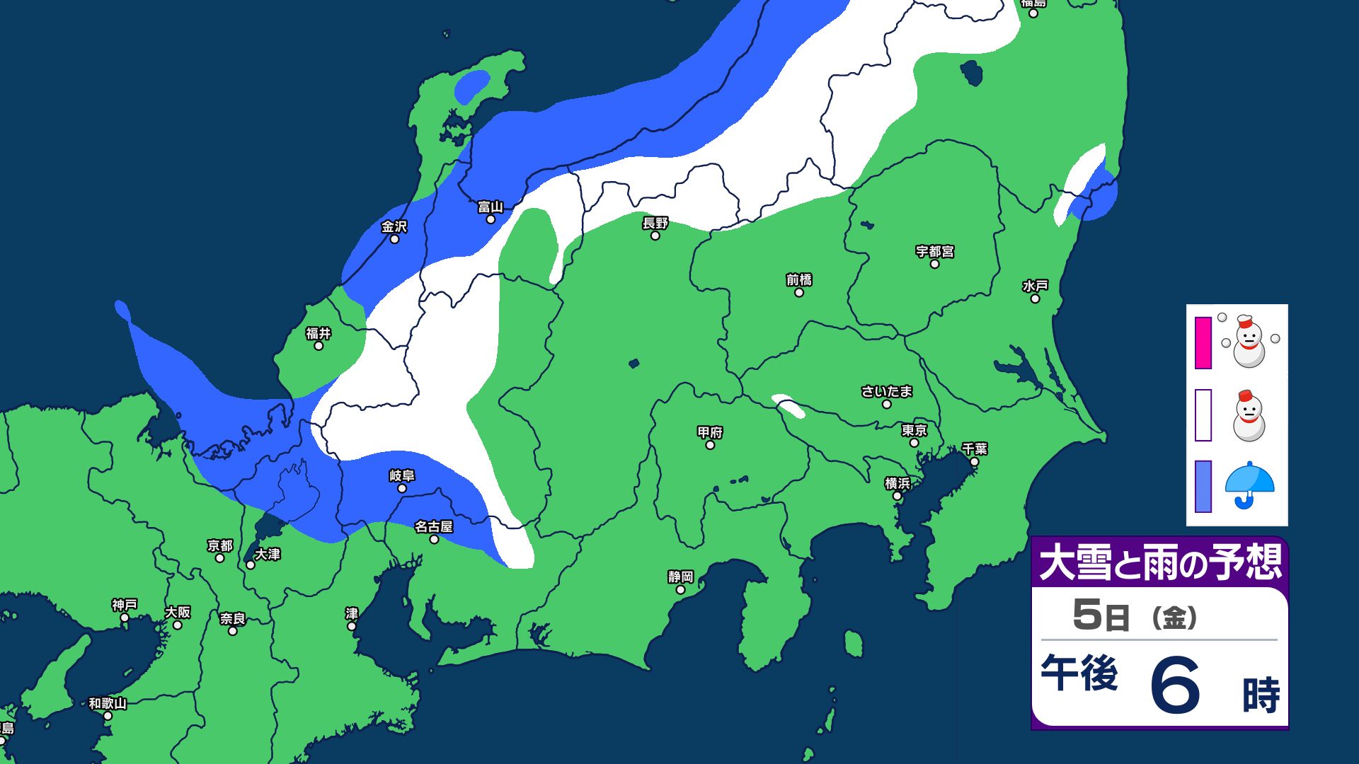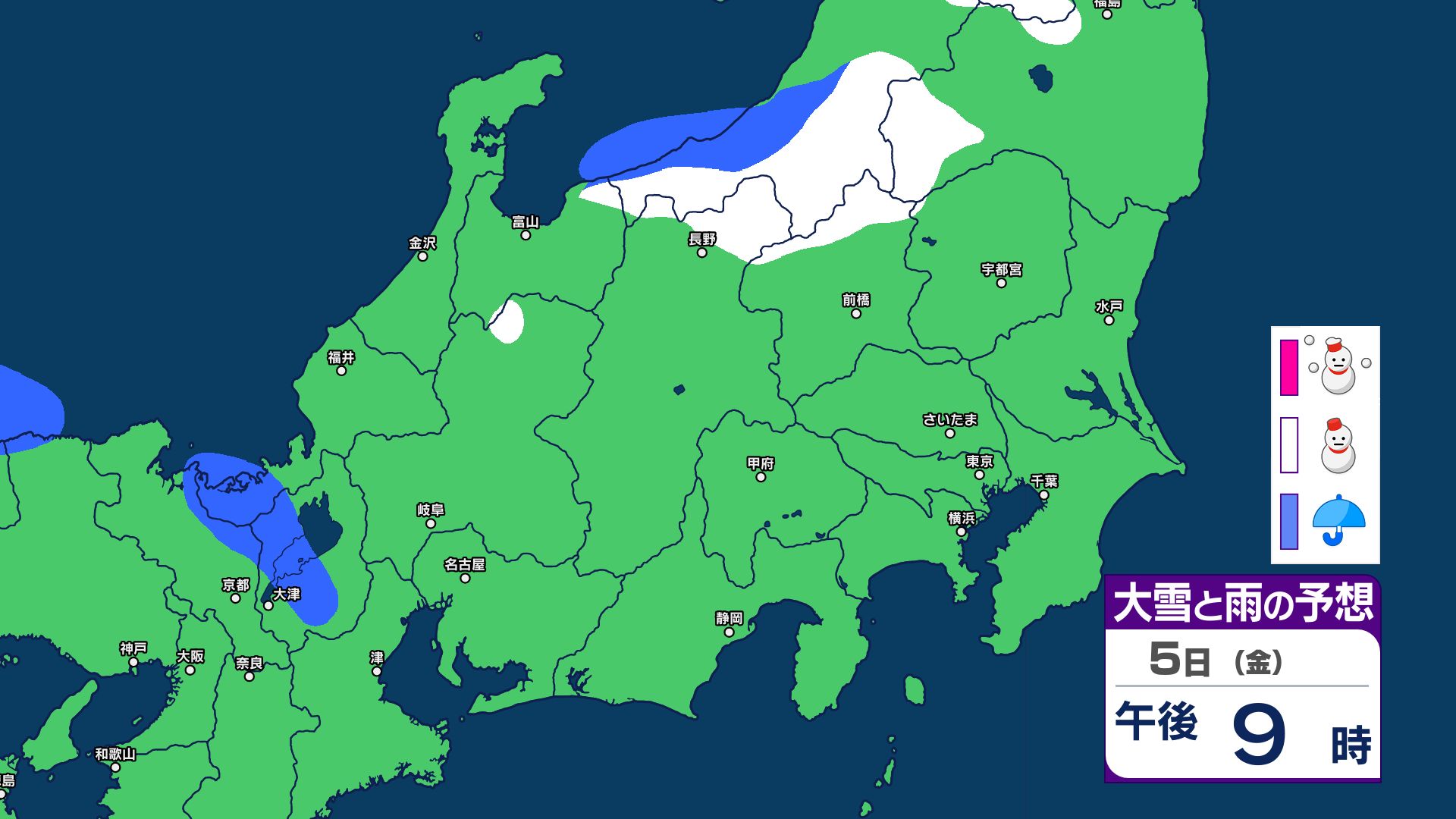 【大雪情報】関東甲信 冬型の気圧配置強まる 3日夜~4日昼前にかけ【雪と雨のシミ…