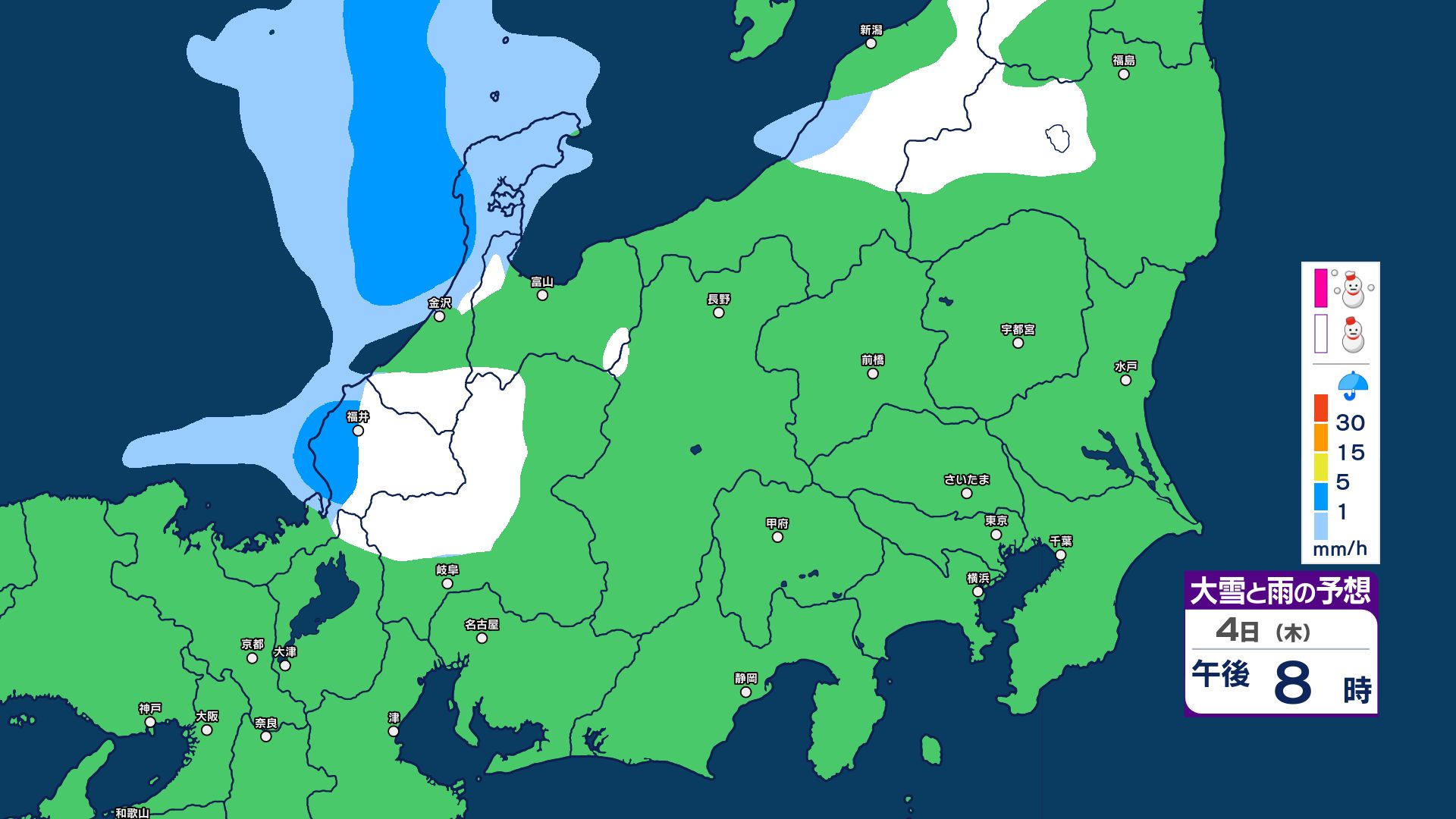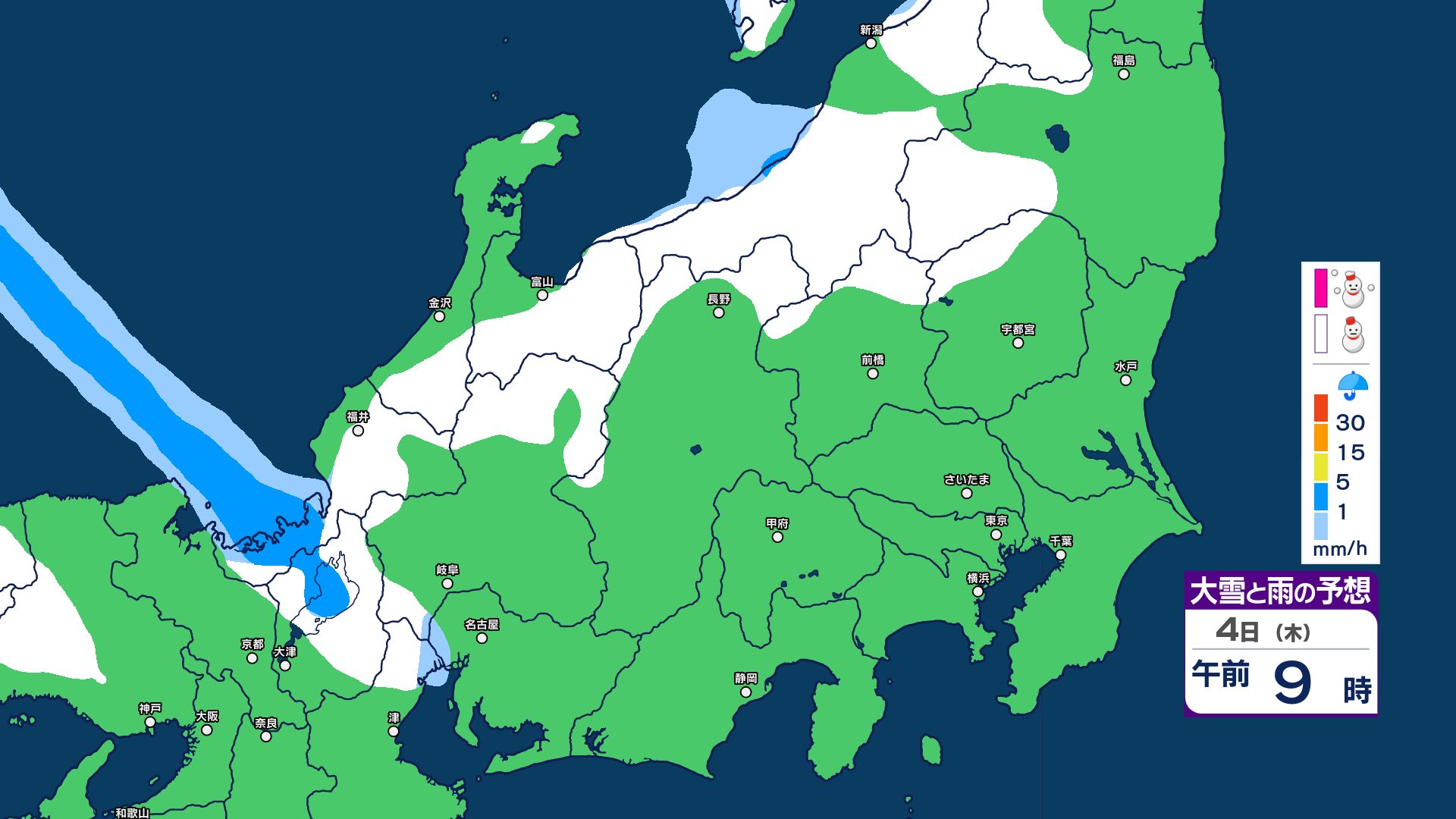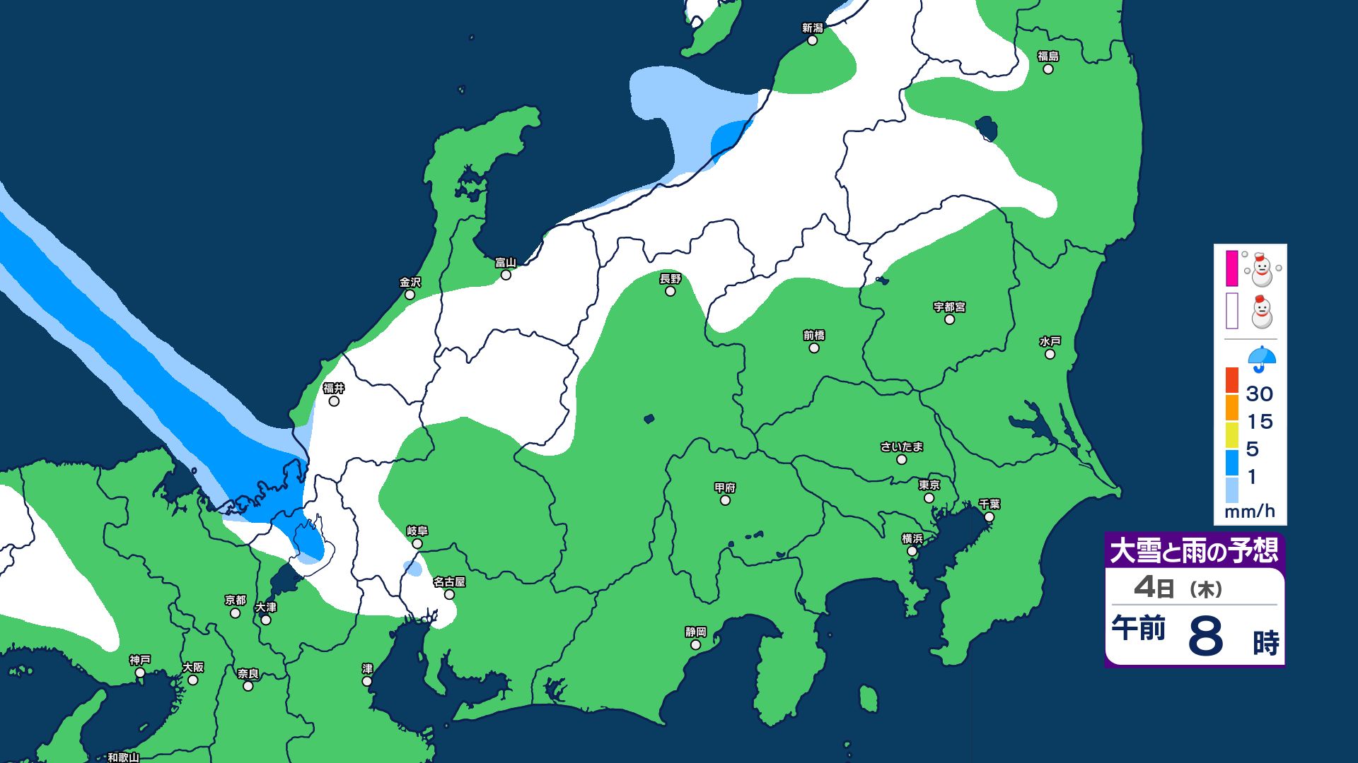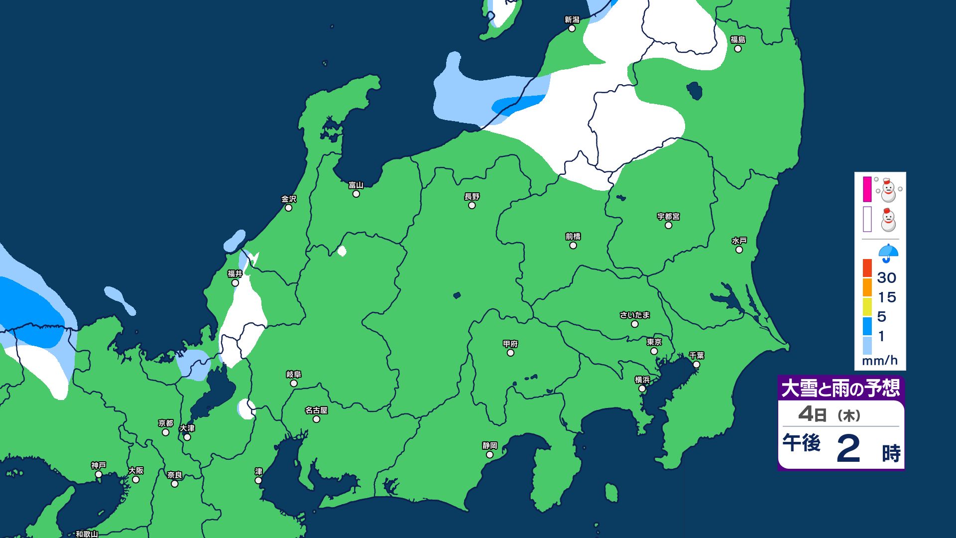 【大雪情報】関東甲信 冬型の気圧配置強まる 3日夜~4日昼前にかけ【雪と雨のシミ…