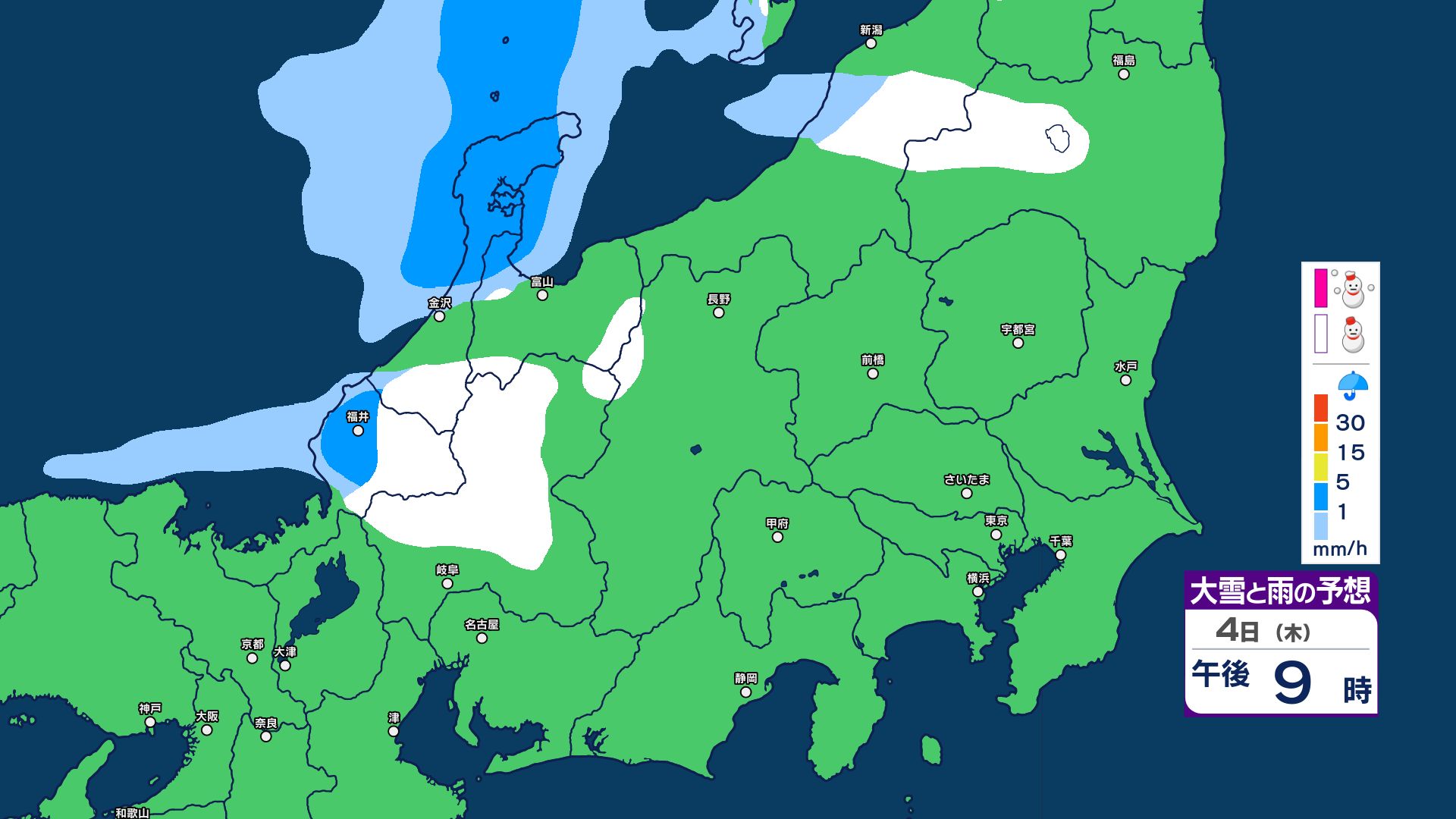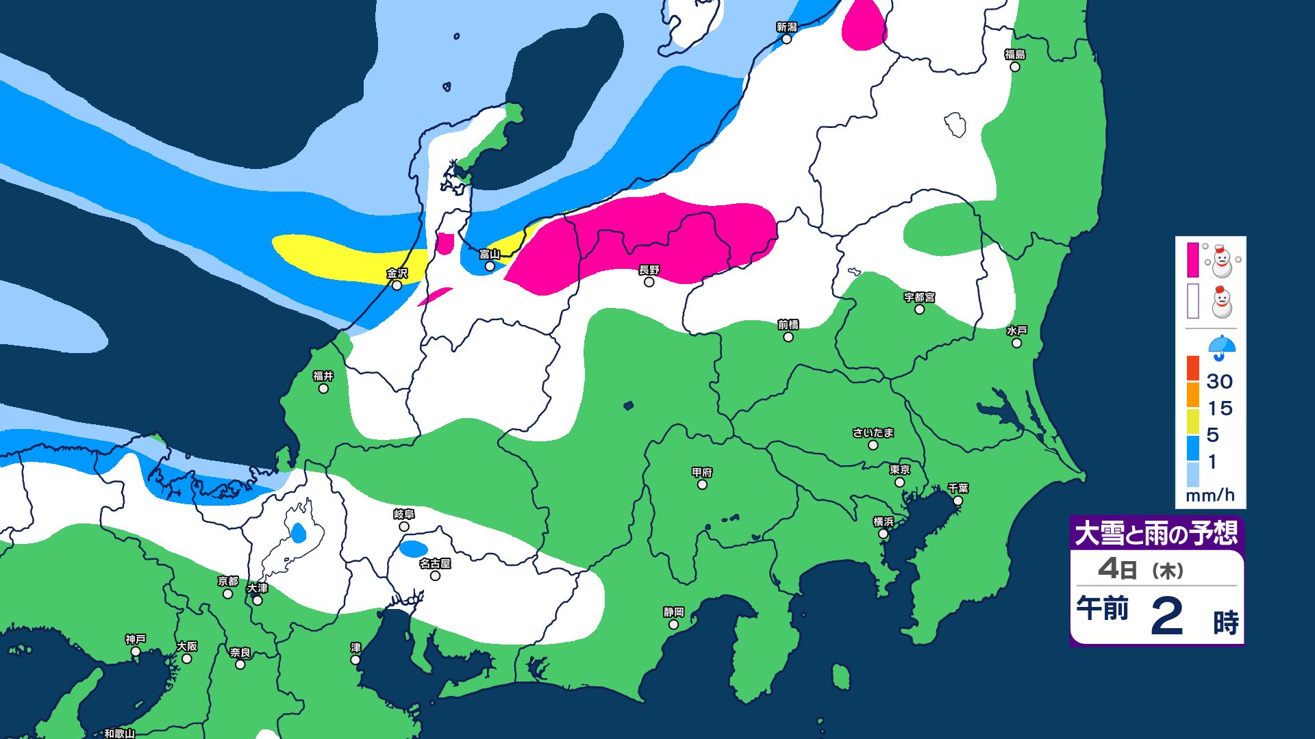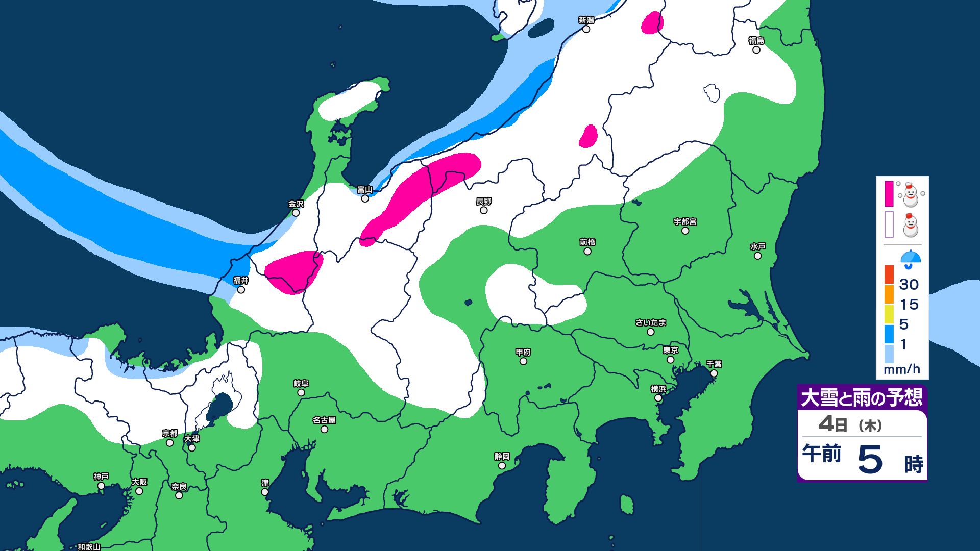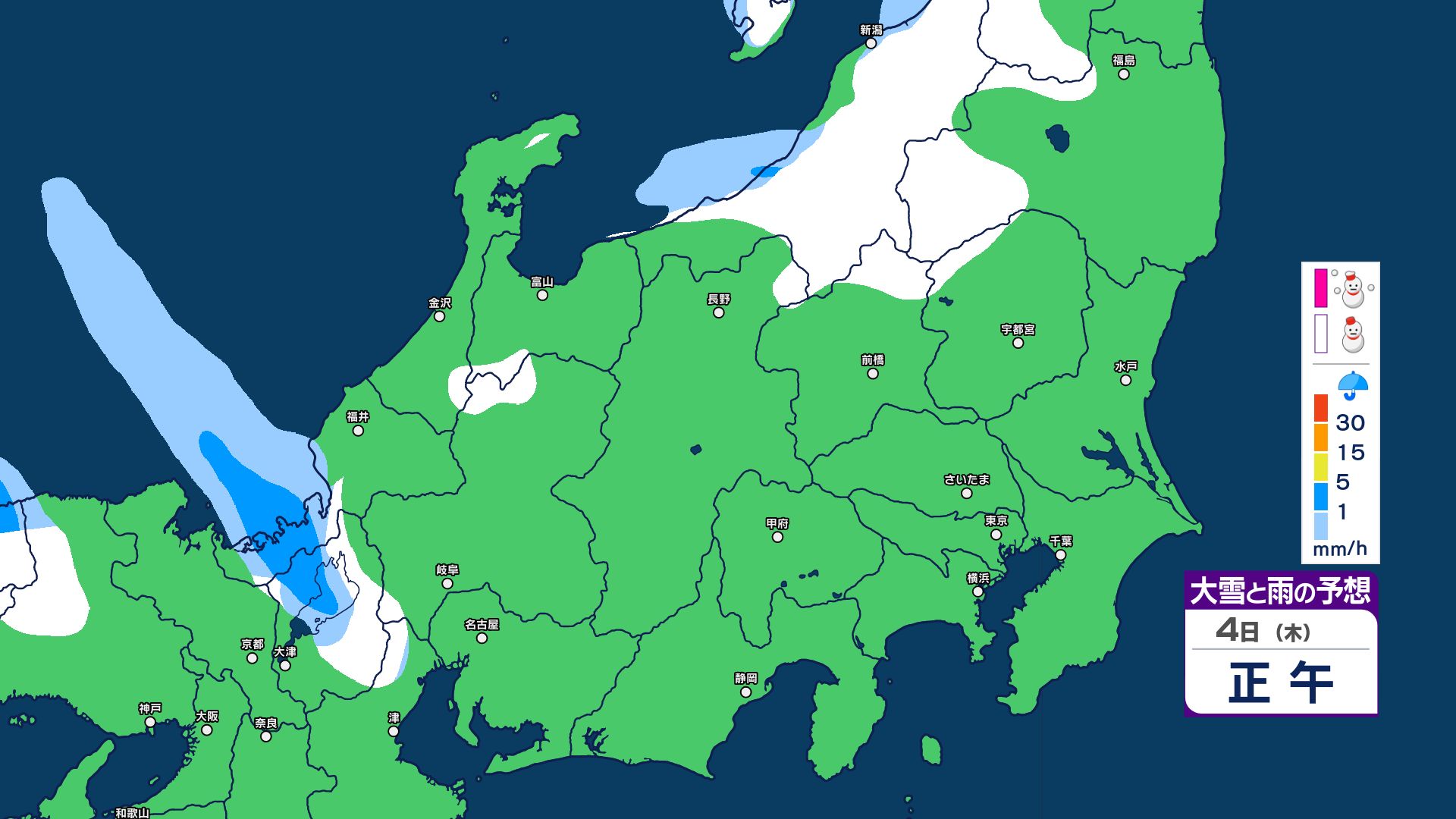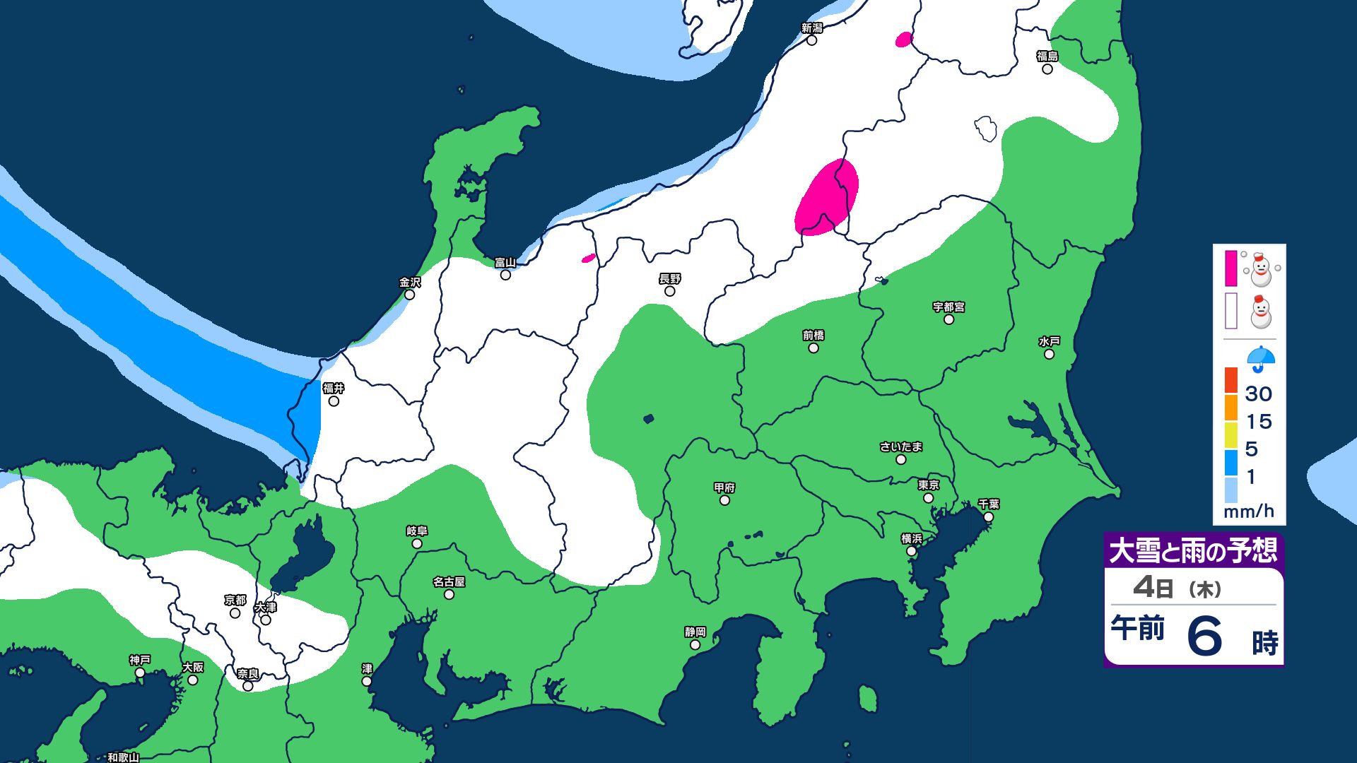 【大雪情報】関東甲信 冬型の気圧配置強まる 3日夜~4日昼前にかけ【雪と雨のシミ…