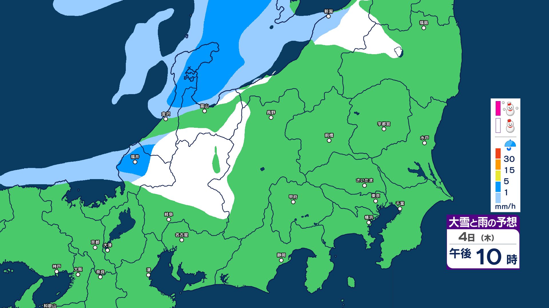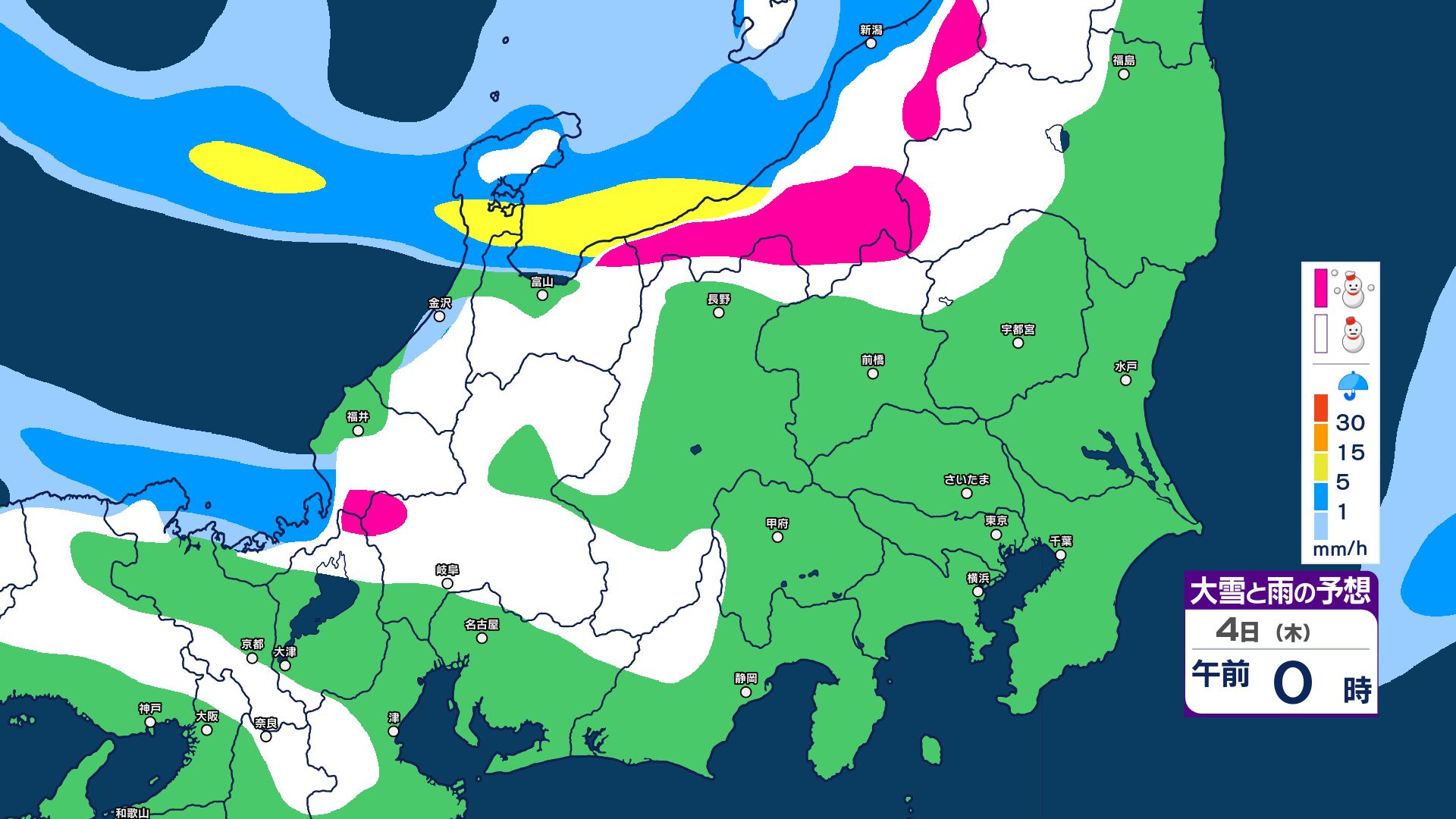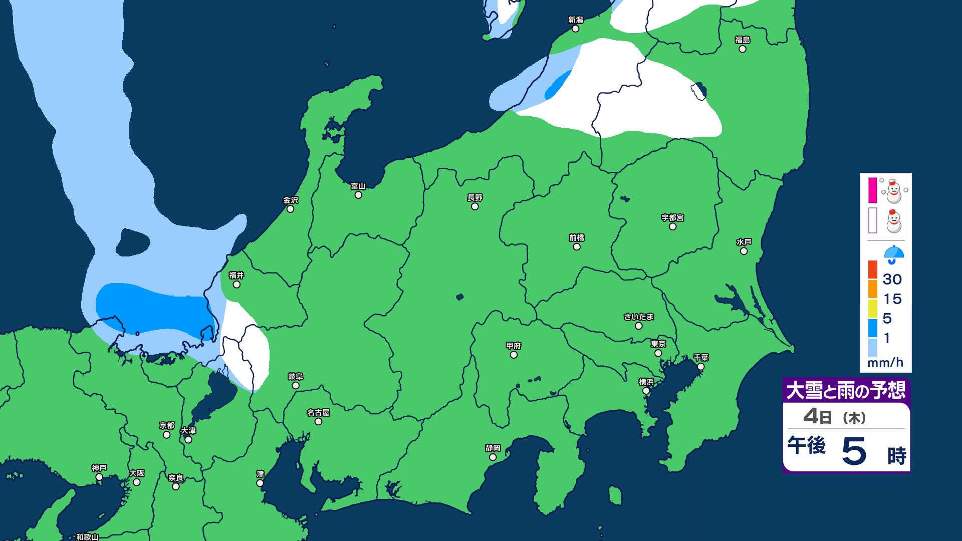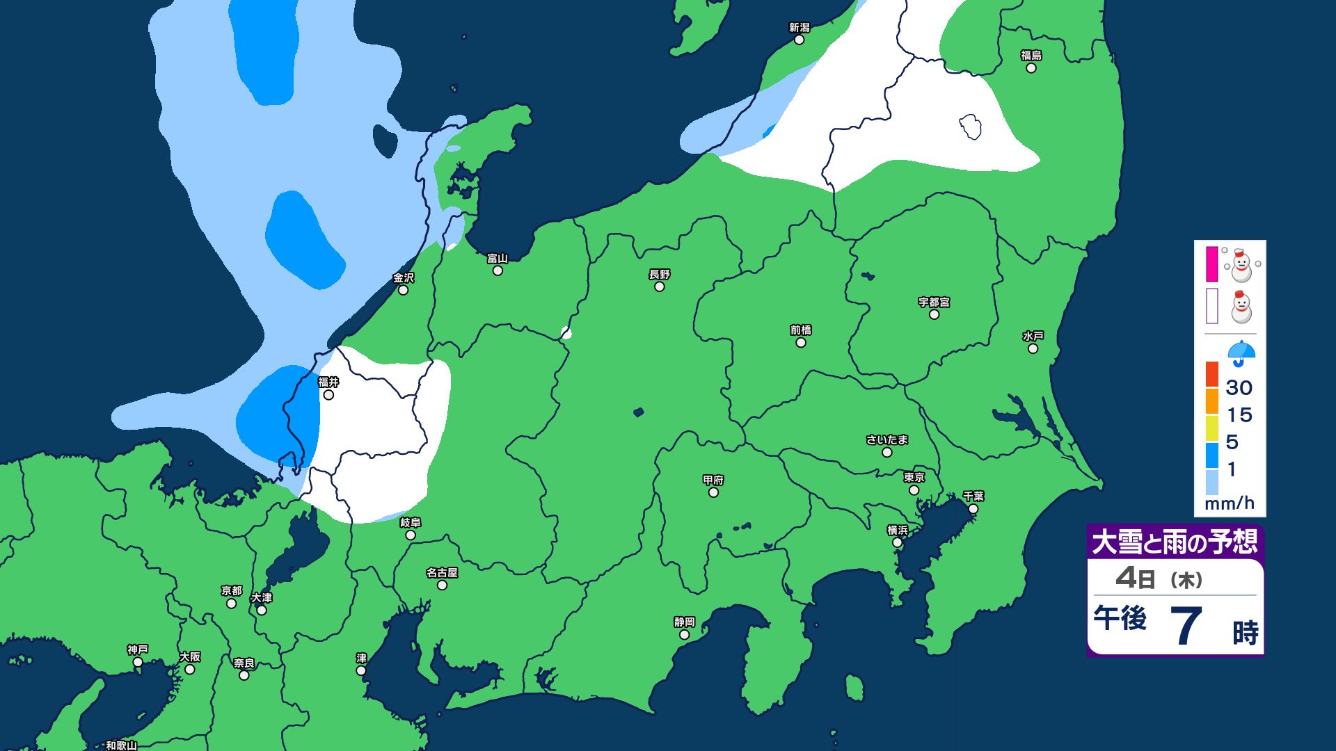 【大雪情報】関東甲信 冬型の気圧配置強まる 3日夜~4日昼前にかけ【雪と雨のシミ…