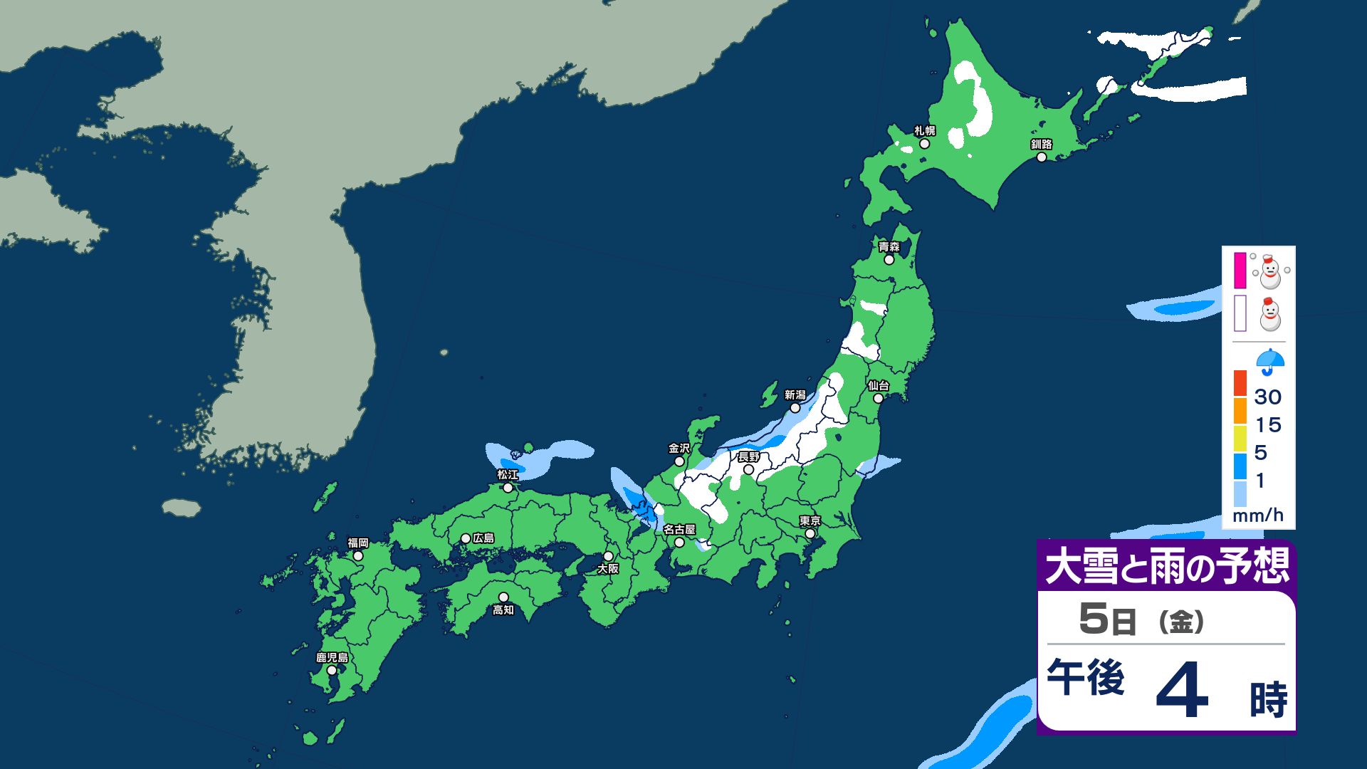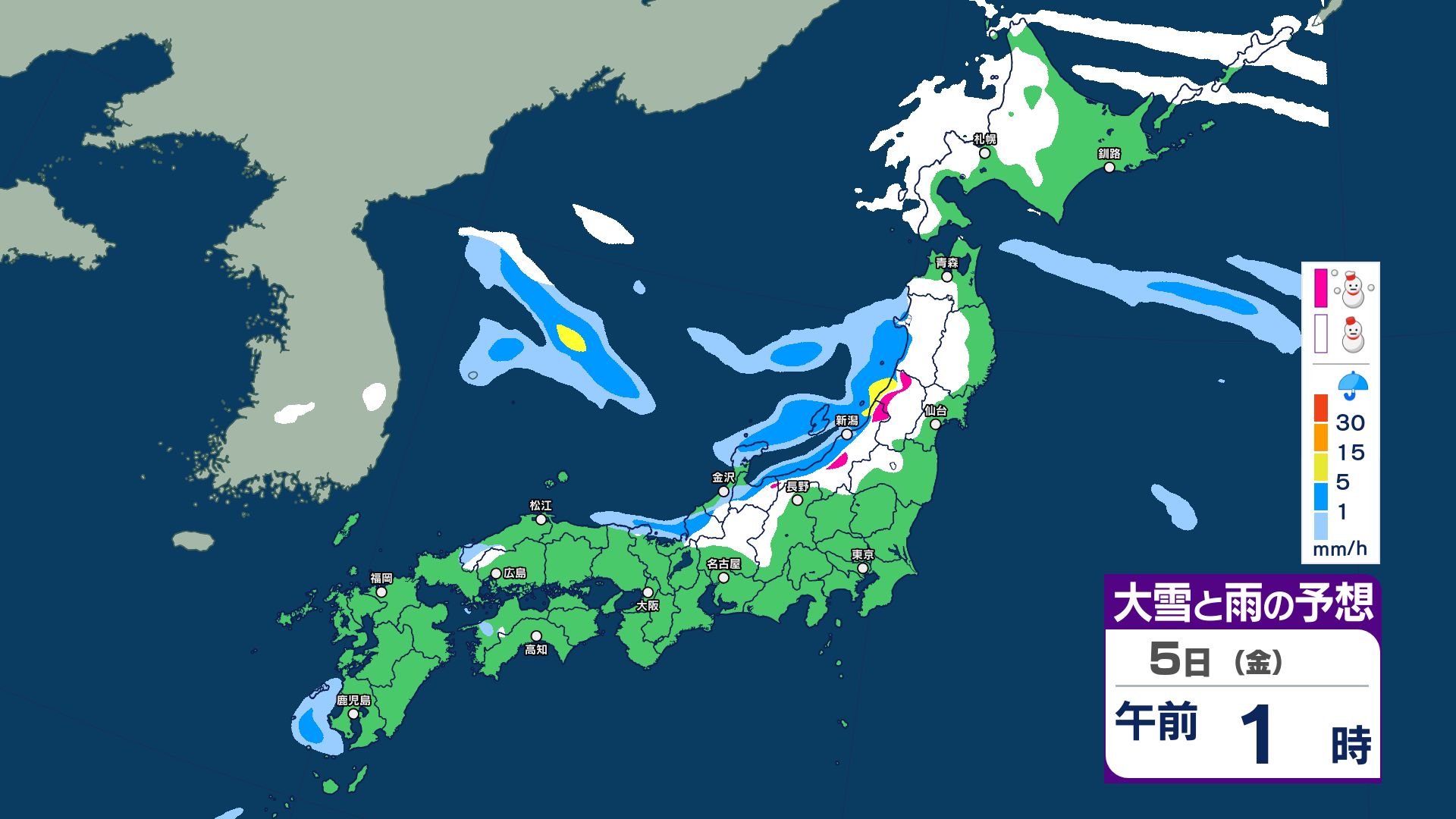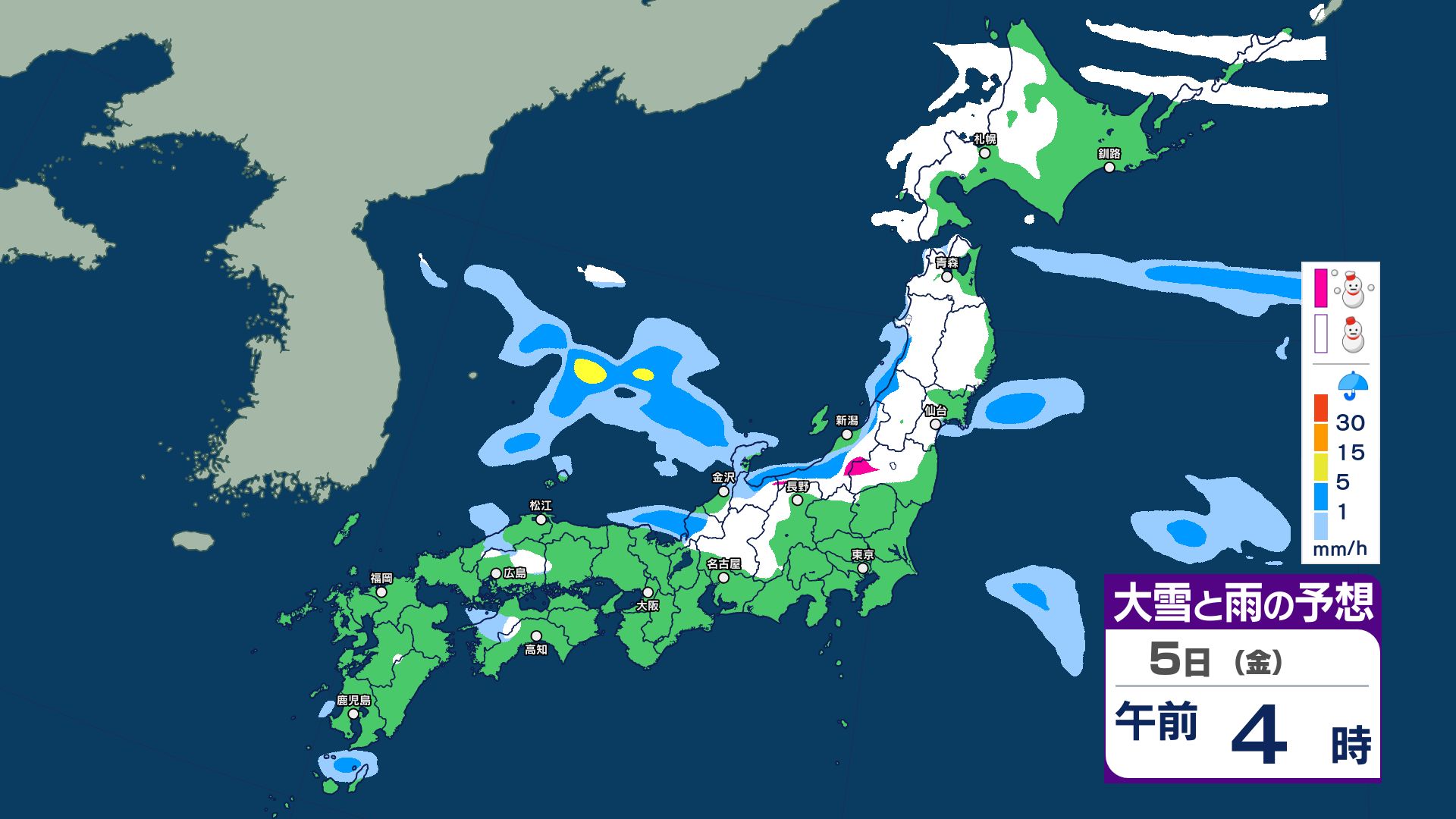 大雪のピークは2回か…3日夜~4日にかけて東北・新潟70センチ・関東甲信60センチの降雪予想 平地でも積雪のところも【5日まで 1時間ごとの雪のシミュレーション掲載】 2025年12月3日(水) 19:00 国内