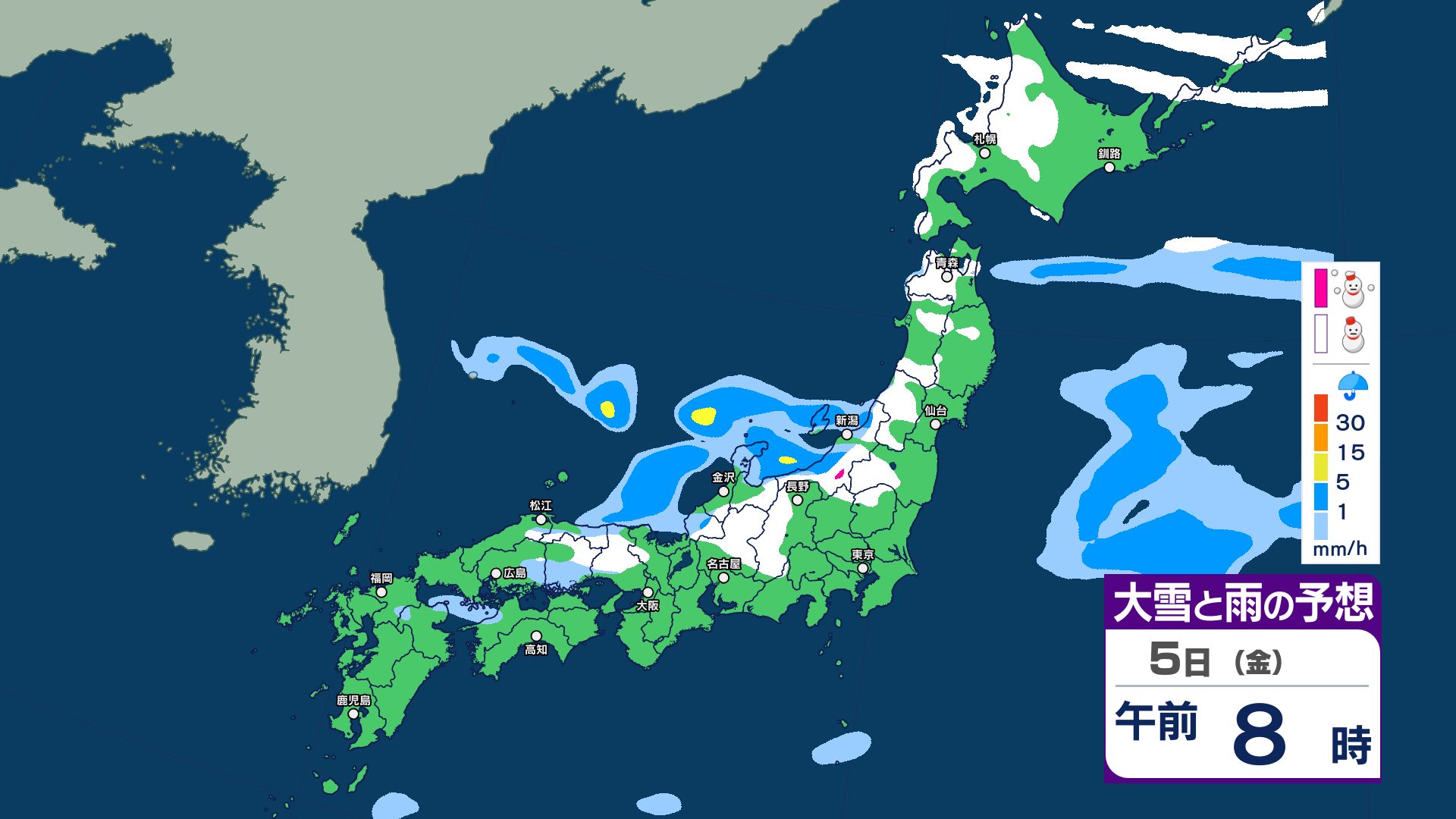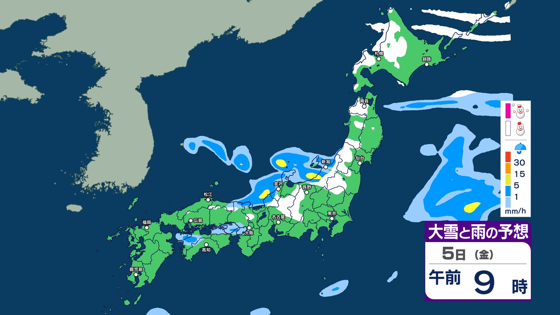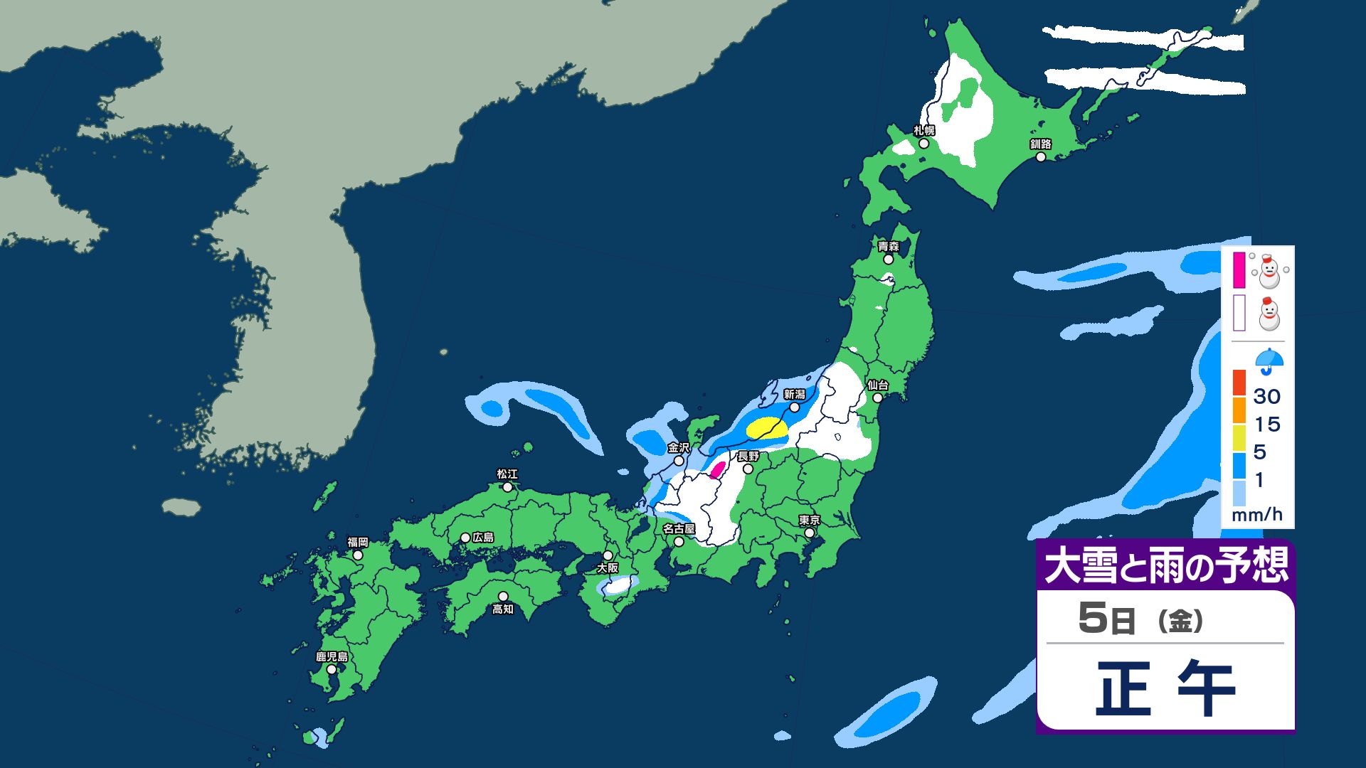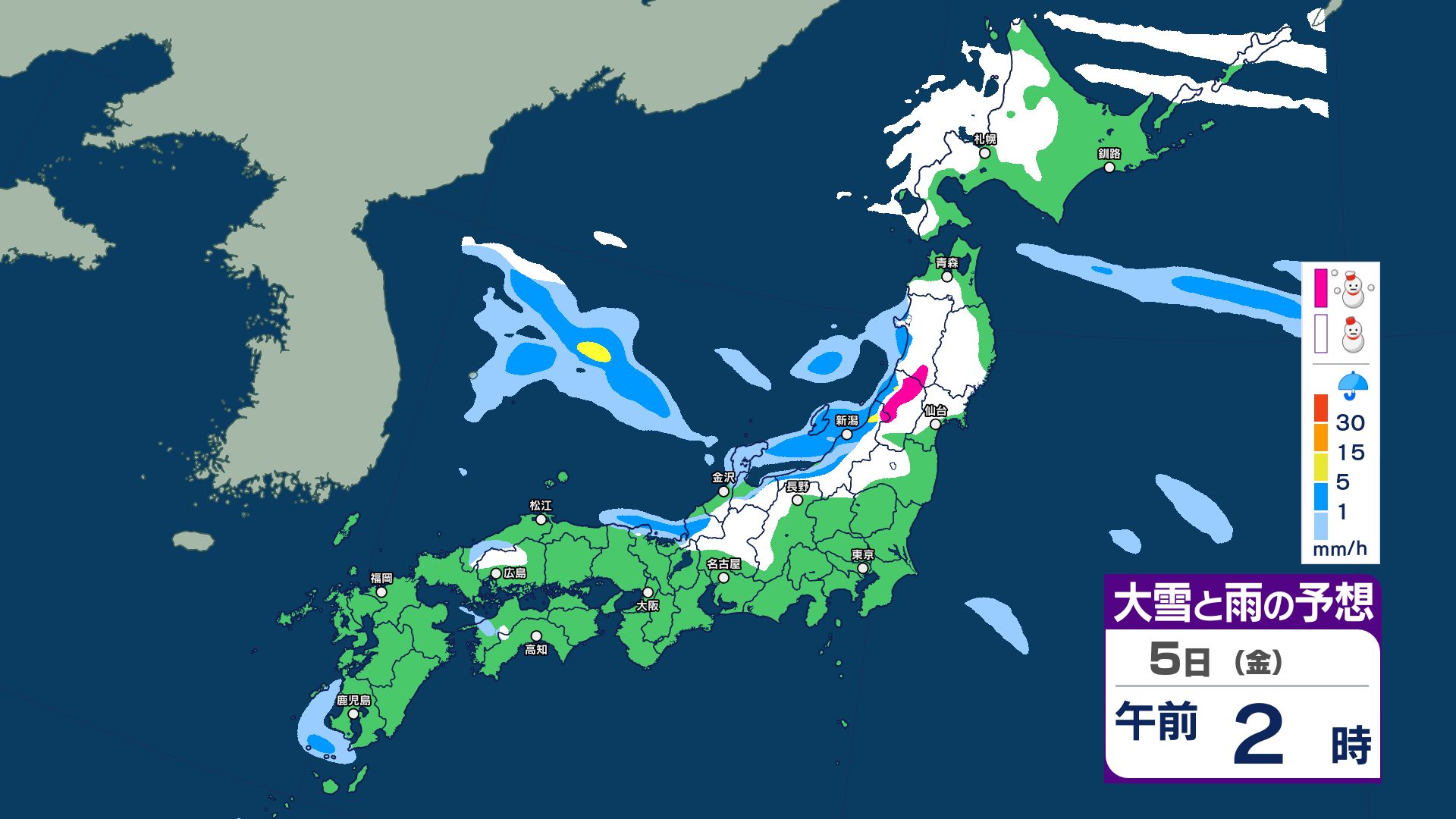 大雪のピークは2回か…3日夜~4日にかけて東北・新潟70センチ・関東甲信60センチの降雪予想 平地でも積雪のところも【5日まで 1時間ごとの雪のシミュレーション掲載】 2025年12月3日(水) 19:00 国内