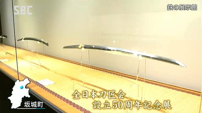現代の刀鍛冶で作る全日本刀匠会の設立50周年を記念した展覧会が、長野県坂城町で開かれています。