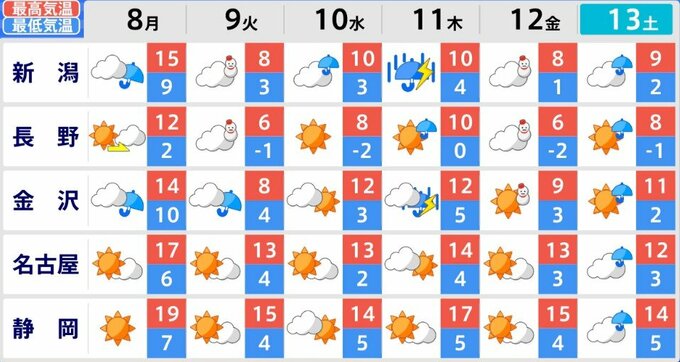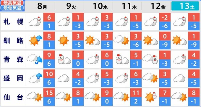 週明け8日~9日は再び冬型の気圧配置…北日本から東日本の日本海側を中心に雪や雨のところも 全国の週間天気予報は?【6日~11日まで 雪と雨のシミュレーション更新】 2025年12月6日(土) 10:03 国内 全国各地の週間予報 8日~13日