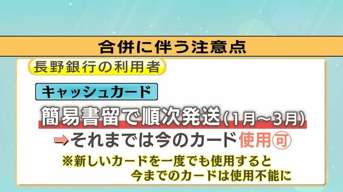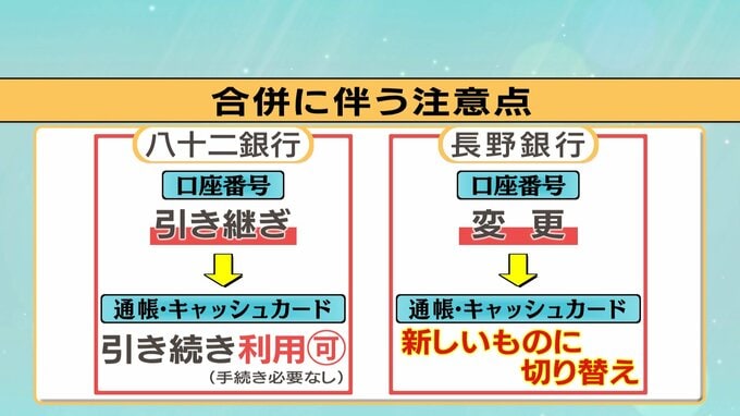 一方で、長野銀行の利用者は、口座番号が変わるため、通帳やキャッシュカードを切り替える必要があります。