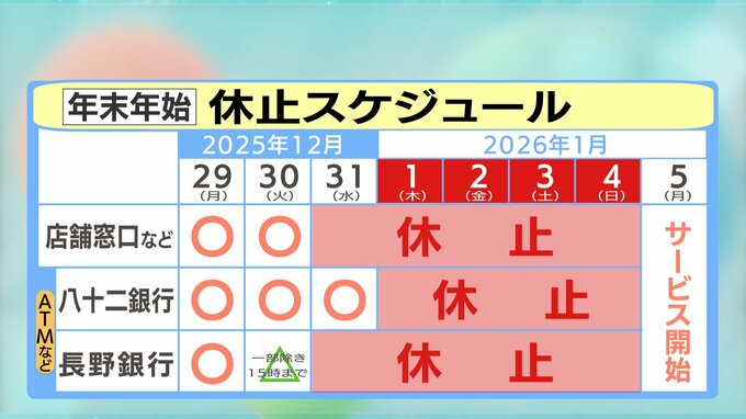 年末年始は、ATMやインターネットバンキングなど両行の全てのシステムが休止します。