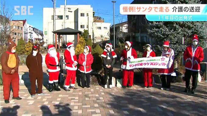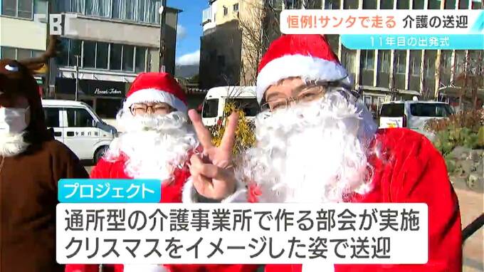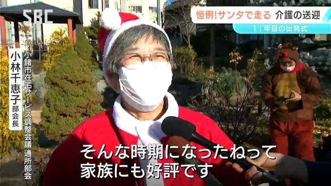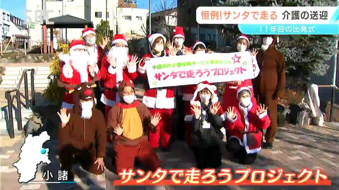 クリスマスにあわせてサンタなどの姿で介護施設への送迎を行う取り組みが、今年も小諸市で始まりました。