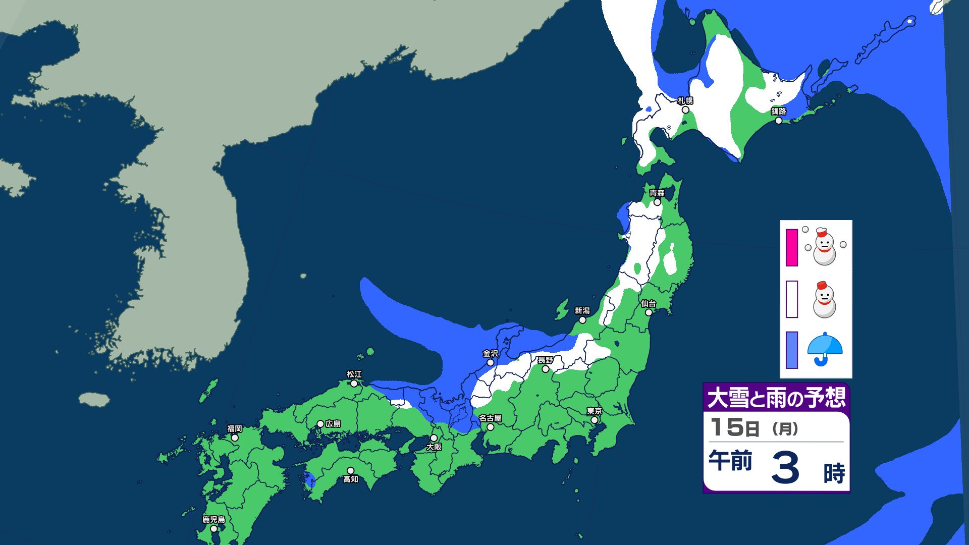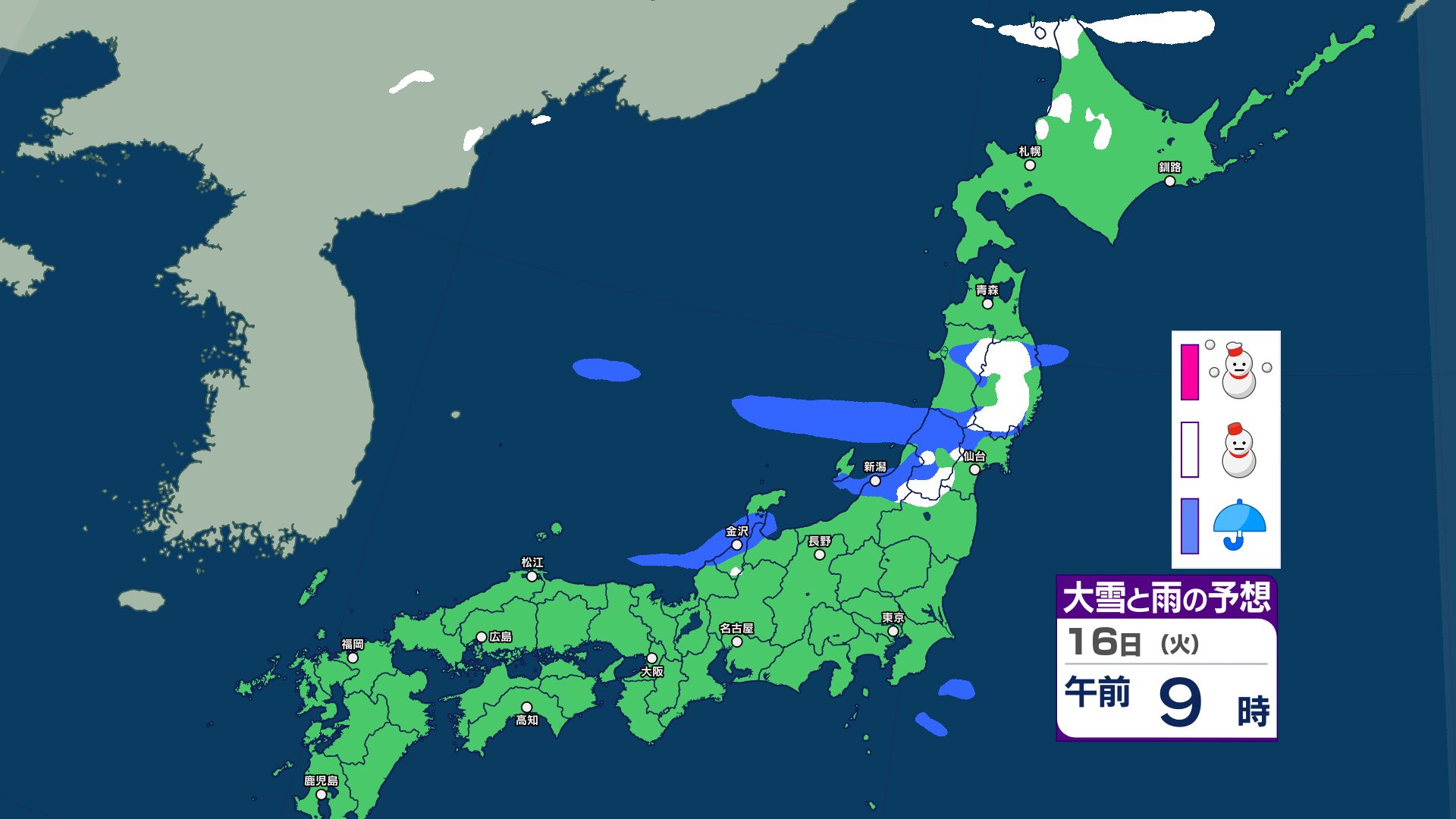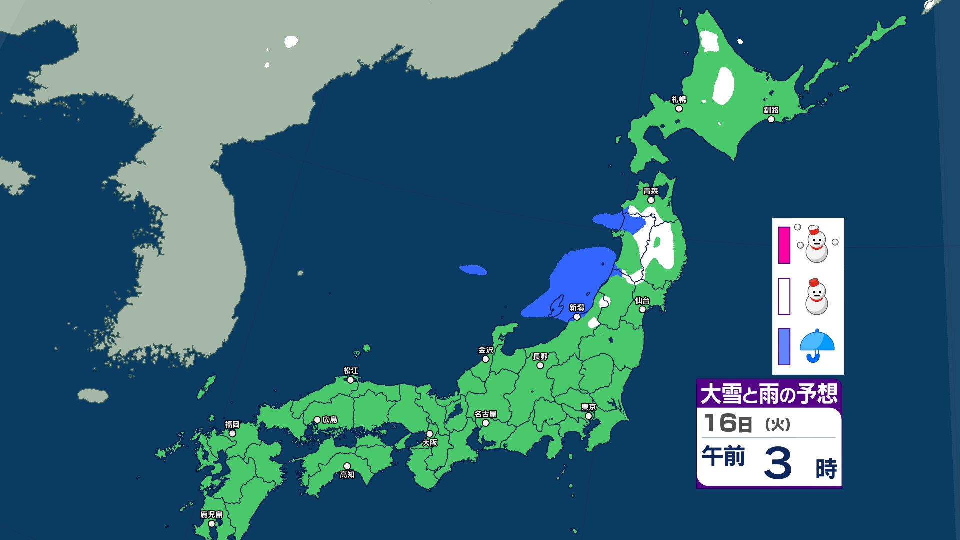 3. 【大雪情報】あす12日にかけて北日本~東日本で大雪に警戒 14日~15日は北日本~西日本で荒れた天気 警報級の大雪のおそれ【雪と雨・寒気のシミュレーション 16日まで掲載】