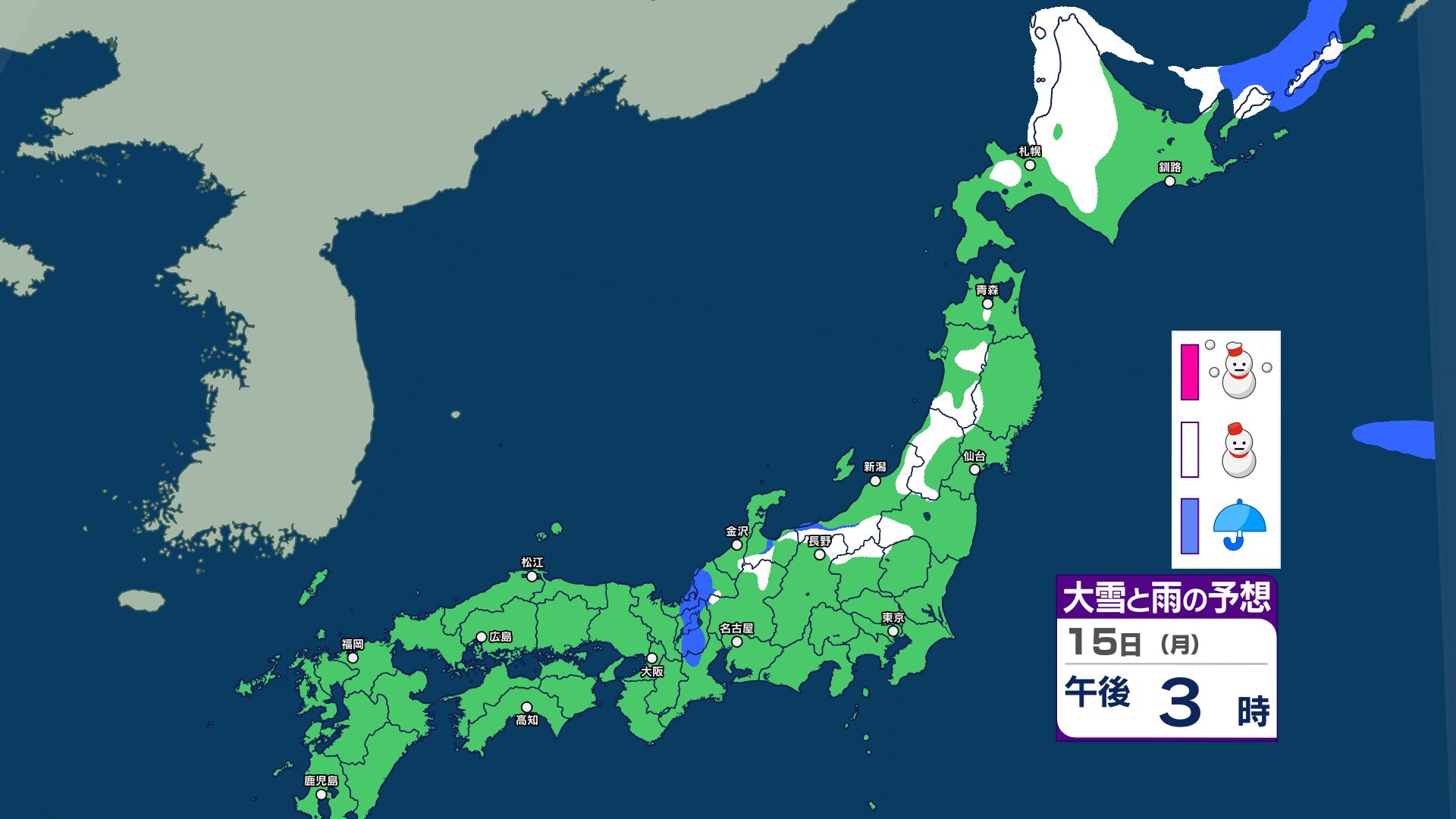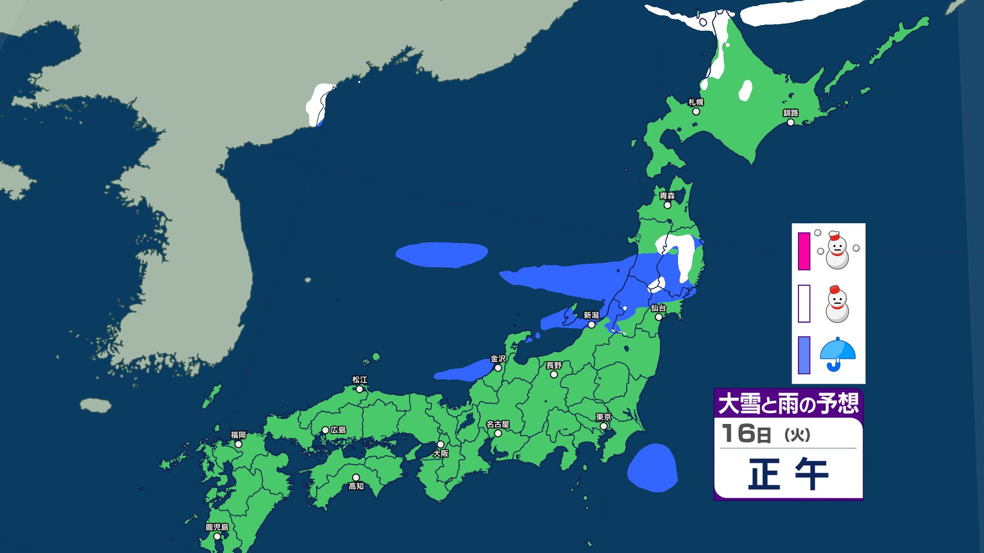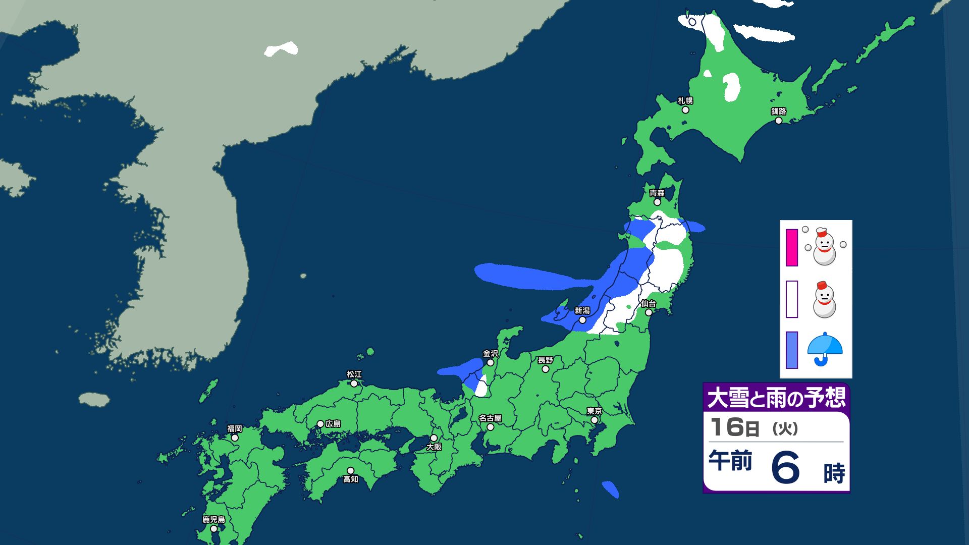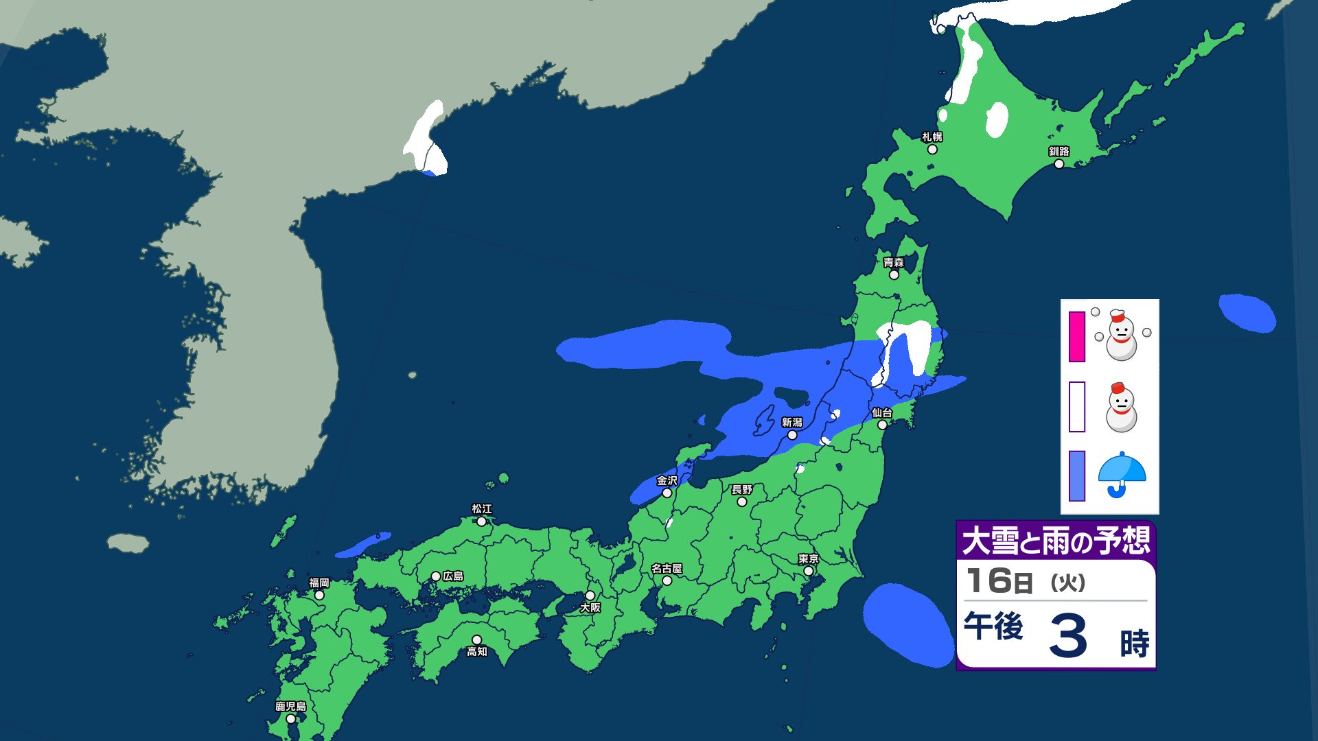 3. 【大雪情報】あす12日にかけて北日本~東日本で大雪に警戒 14日~15日は北日本~西日本で荒れた天気 警報級の大雪のおそれ【雪と雨・寒気のシミュレーション 16日まで掲載】