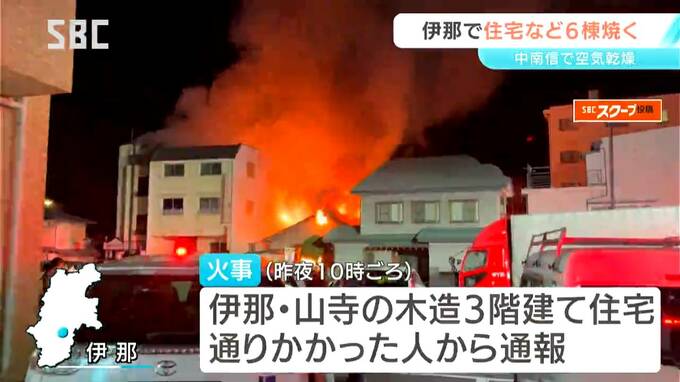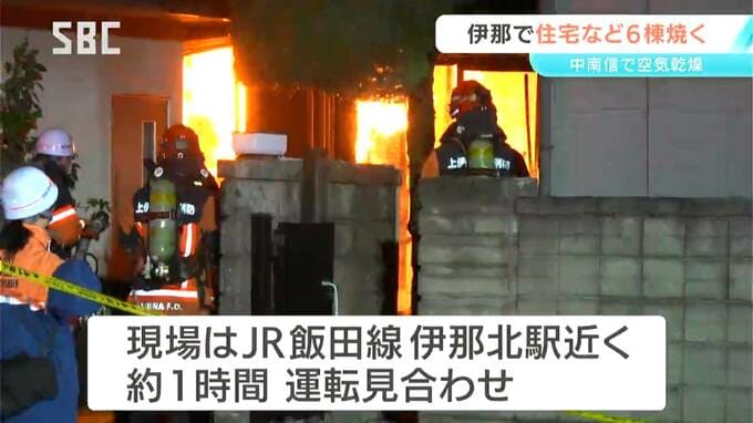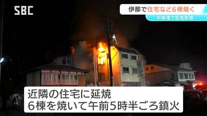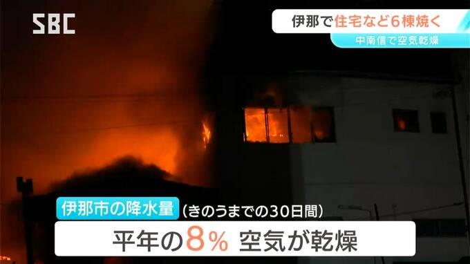 伊那市のJR伊那北駅近くの住宅で火事があり、周辺の住宅など合わせて7棟が焼けました。県内では特に中南部で空気が乾燥しているため、火の扱いに注意が必要です。