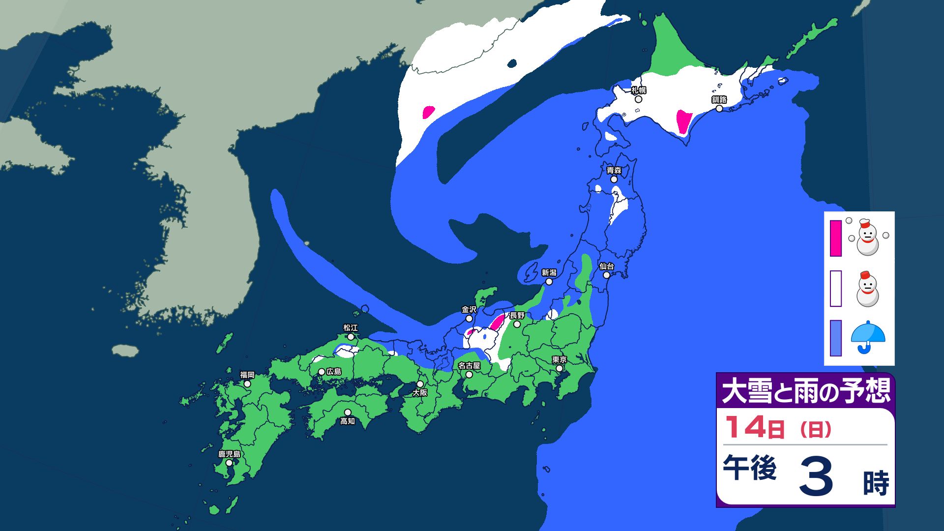 3. 14日(日)~15日頃にかけて北日本~東日本で荒れた天気の見込み…北日本は大荒れの所も…低気圧の発達の程度によって警報級の大雪や大雨に 【雪と雨のシミュレーション 17日まで掲載】