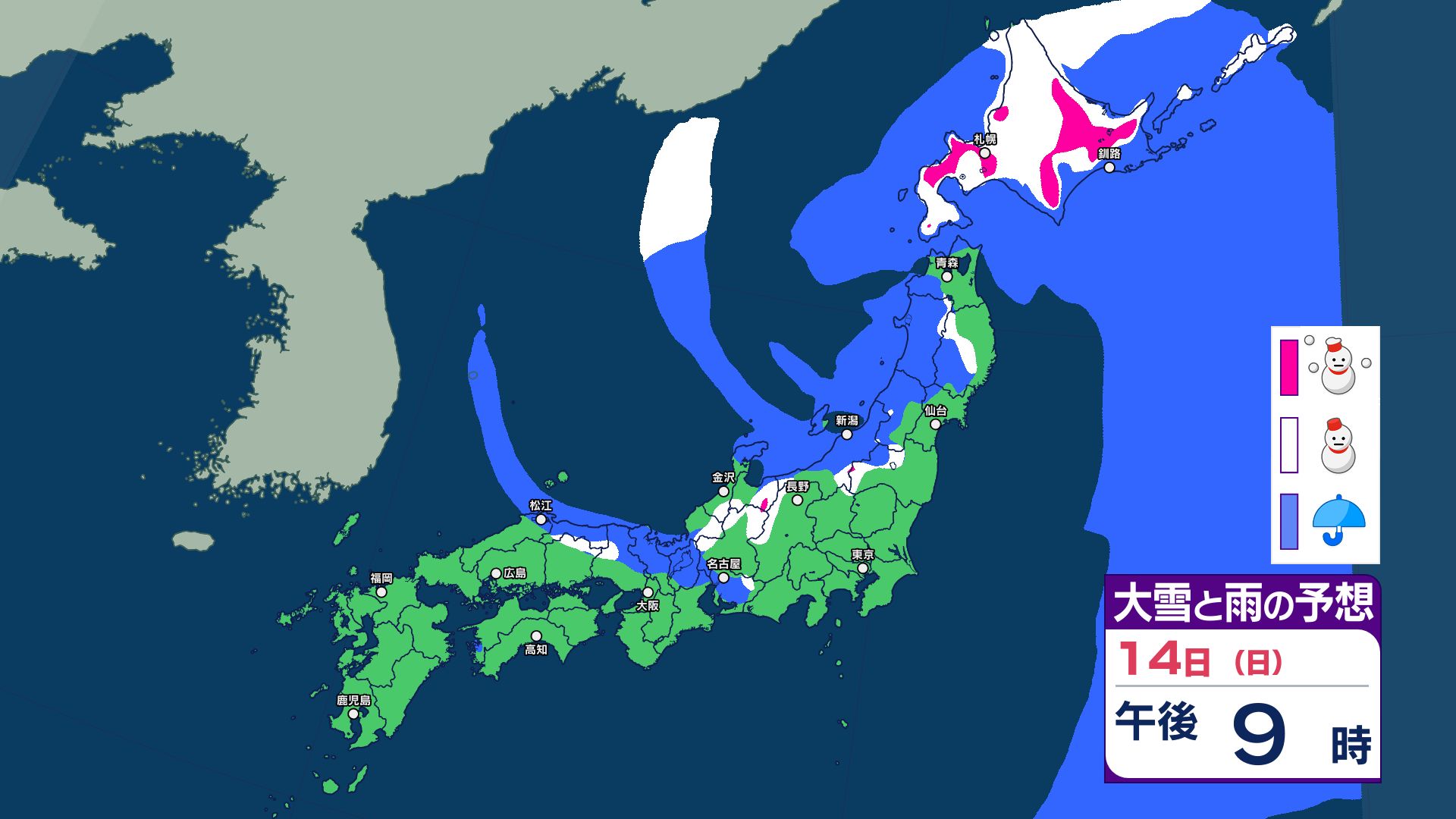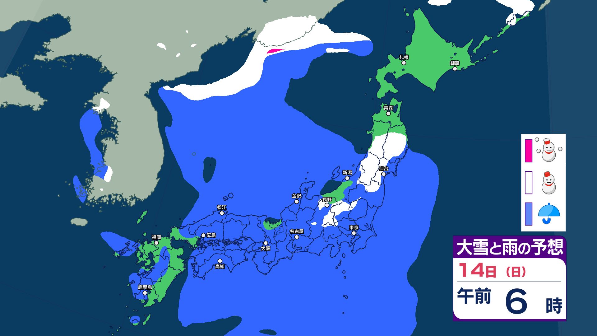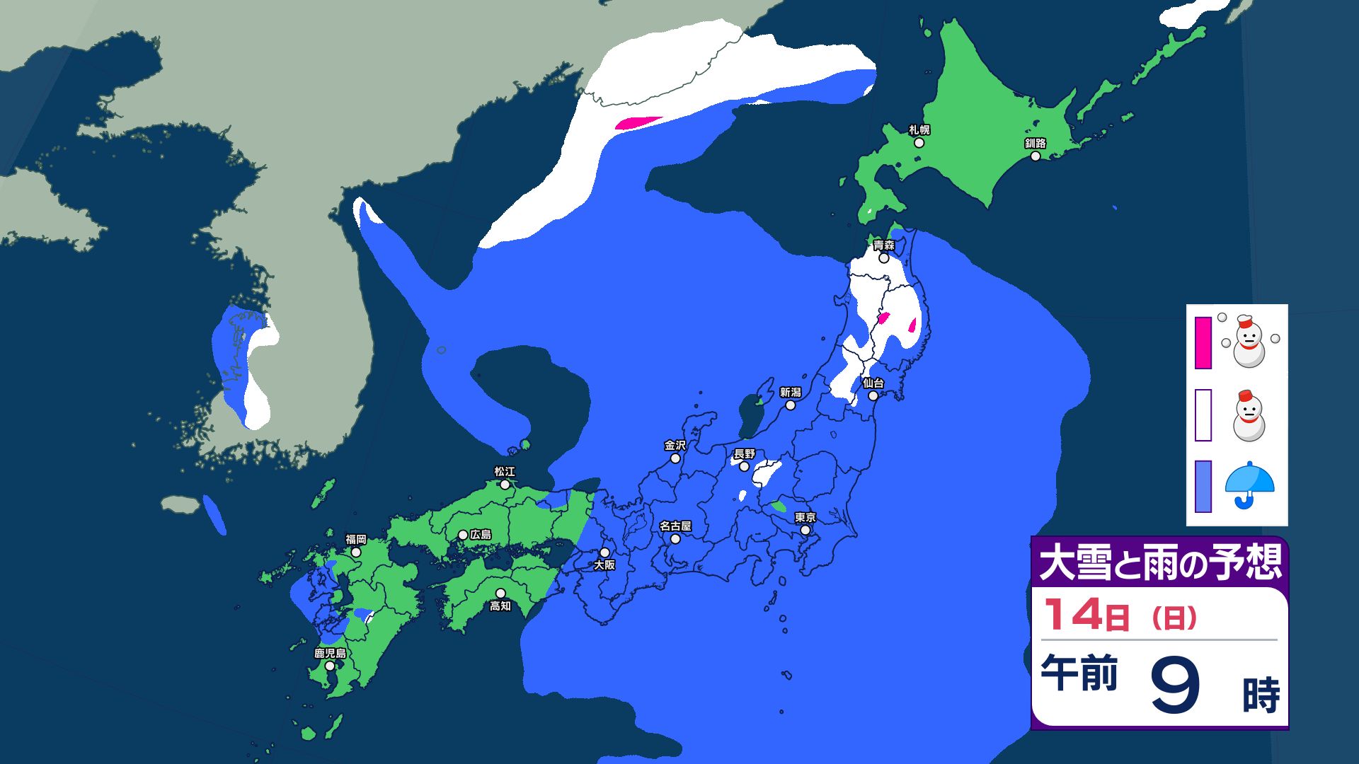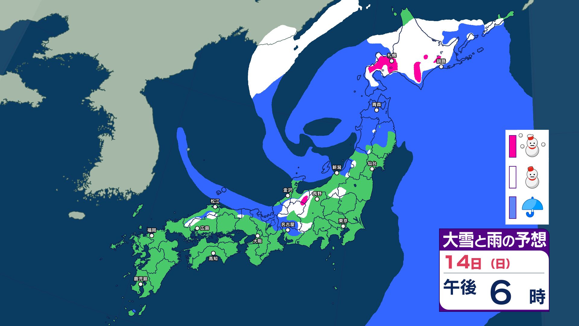 14日(日)~15日頃にかけて北日本~東日本で荒れた天気の見込み…北日本は大荒れの所も…低気圧の発達の程度によって警報級の大雪や大雨に 【雪と雨のシミュレーション 17日まで掲載】