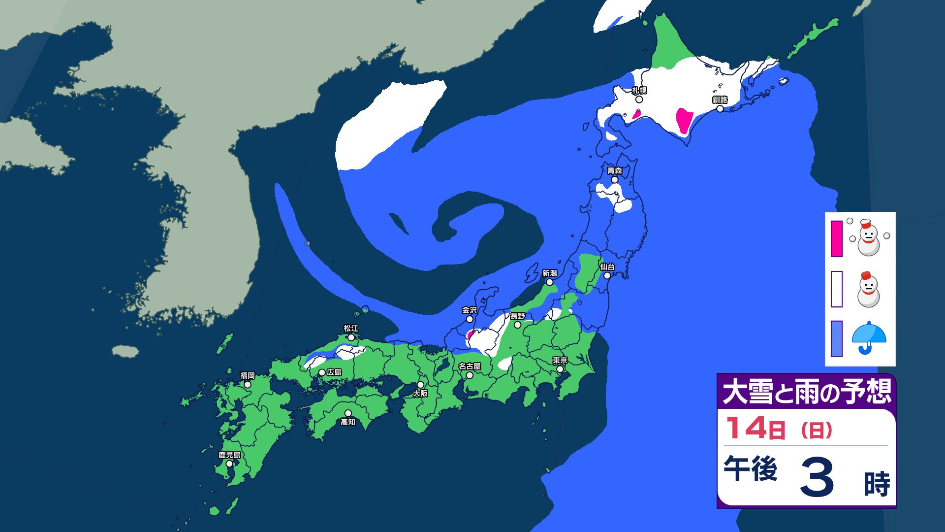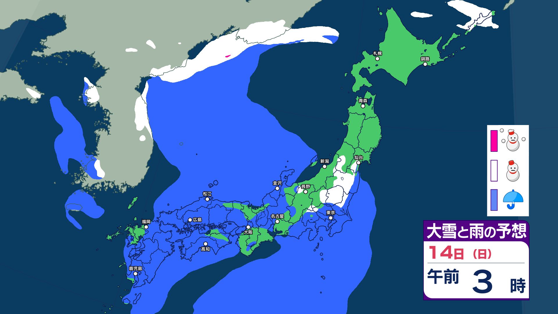 3. 関東地方も降りはじめは「雪やみぞれ」の可能性 低気圧の発達で14日は荒れた天気に…北日本~西日本にかけて【雪と雨のシミュレーション 17日まで掲載】