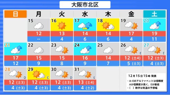 12月15日 14時30分 大阪管区気象台 発表