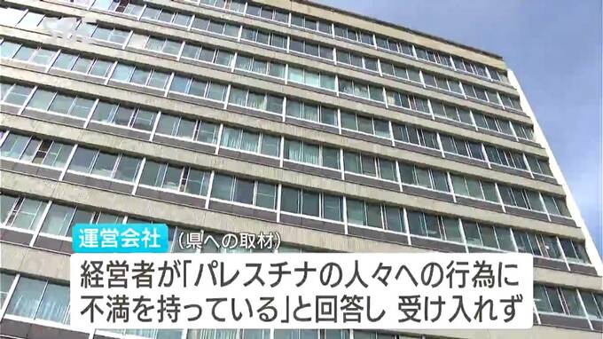県によりますと、10月にイスラエルの旅行業者が運営会社に予約の問い合わせをしたところ、SNSのやり取りで経営者が「パレスチナの人々への行為に不満を持っている」と回答し、宿泊の受け入れに応じませんでした。