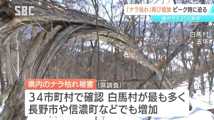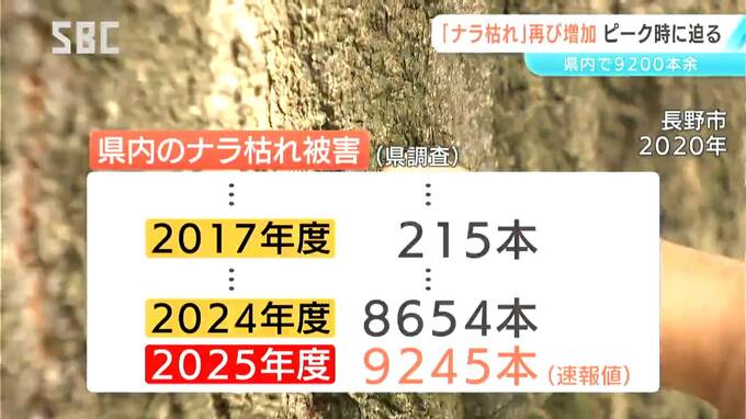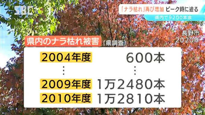 コナラやミズナラなどの広葉樹が枯れる「ナラ枯れ」の被害が県内で再び増加しピークだったおよそ15年前に迫る水準となっていることがわかりました。