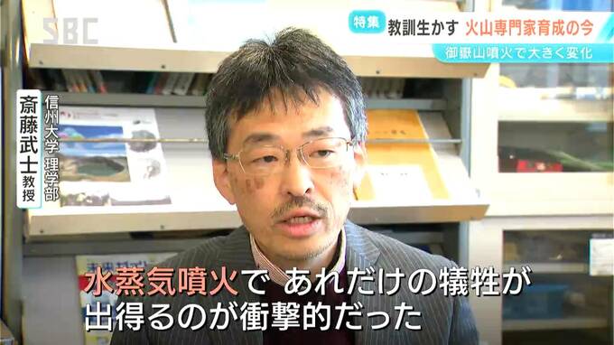 信州大学 齊藤武士教授:「まさか御嶽山があんな風に吹くとはという感じでしたね。日本だけじゃなく世界中の火山が水蒸気噴火であれだけの被害がありうるのが衝撃的だった」