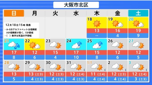 近畿地方の向こう2週間の気温は、寒気の影響が弱く、暖かい空気が流れ込む日もあるため高く、かなり高い日も多い見込みです。農作物の管理等に注意してください。