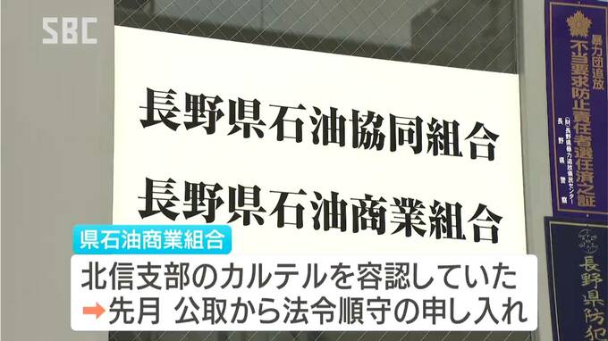 県石油商業組合は、北信支部で行われていたガソリン価格のカルテルを容認していたとして11月、公正取引委員会から法令順守の申し入れを受けています。
