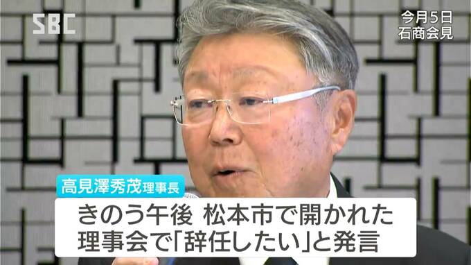 関係者によりますと、松本市の石商中信支部で18日午後およそ2時間行われた理事会で、高見澤理事長が「辞任したい」と発言したということです。