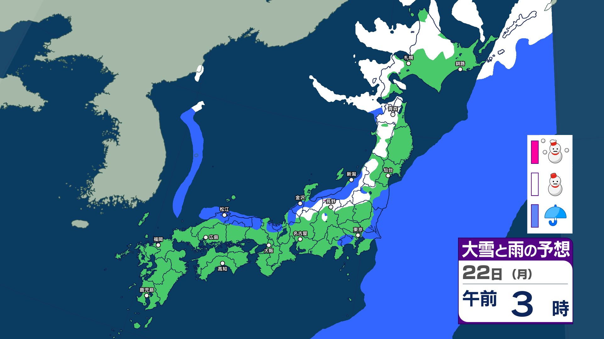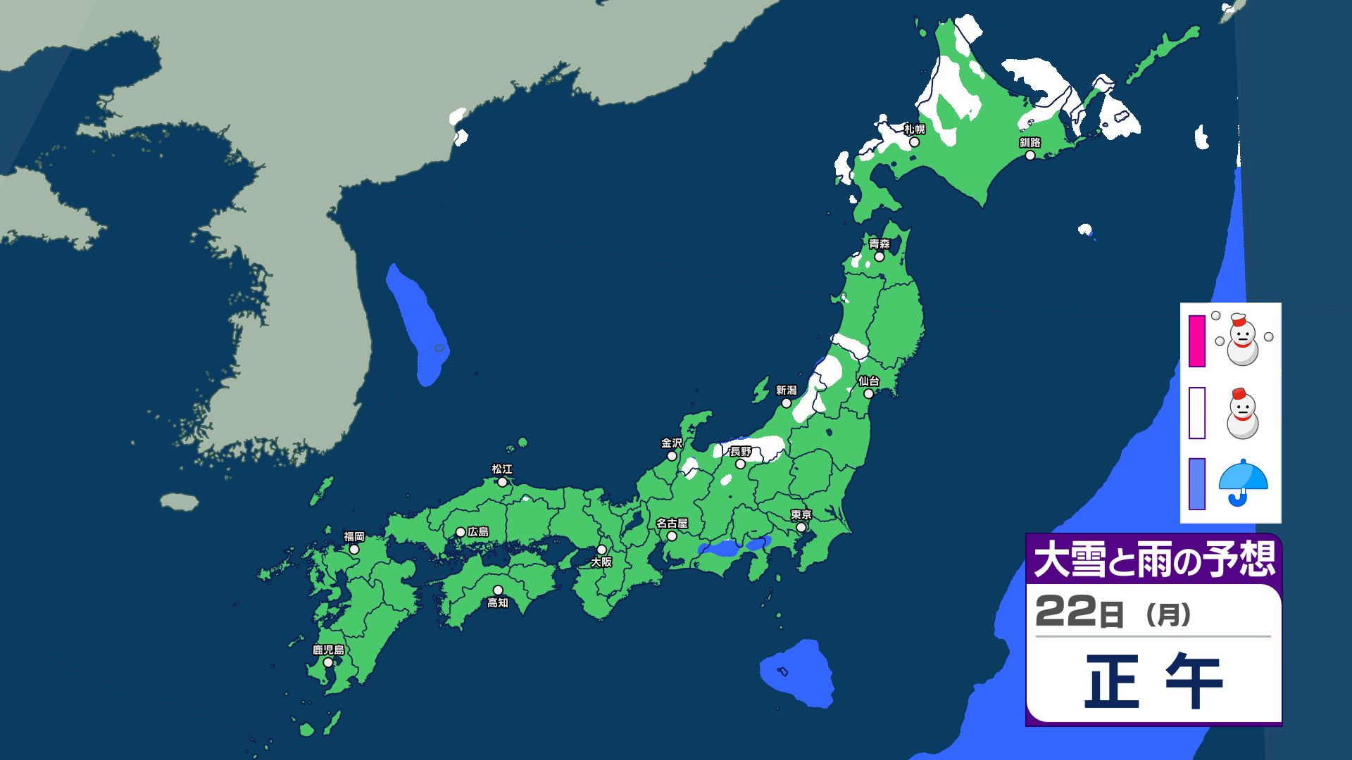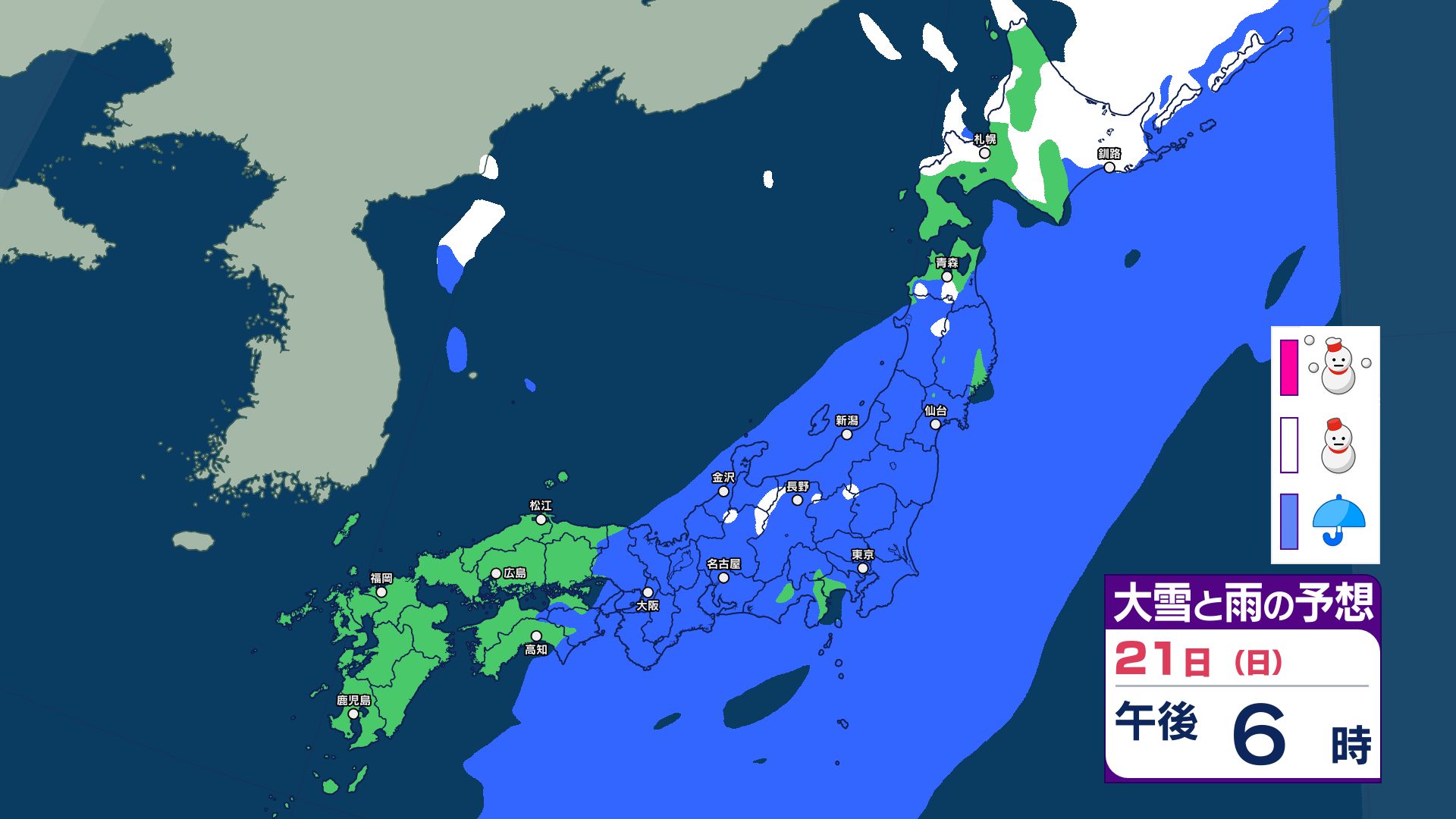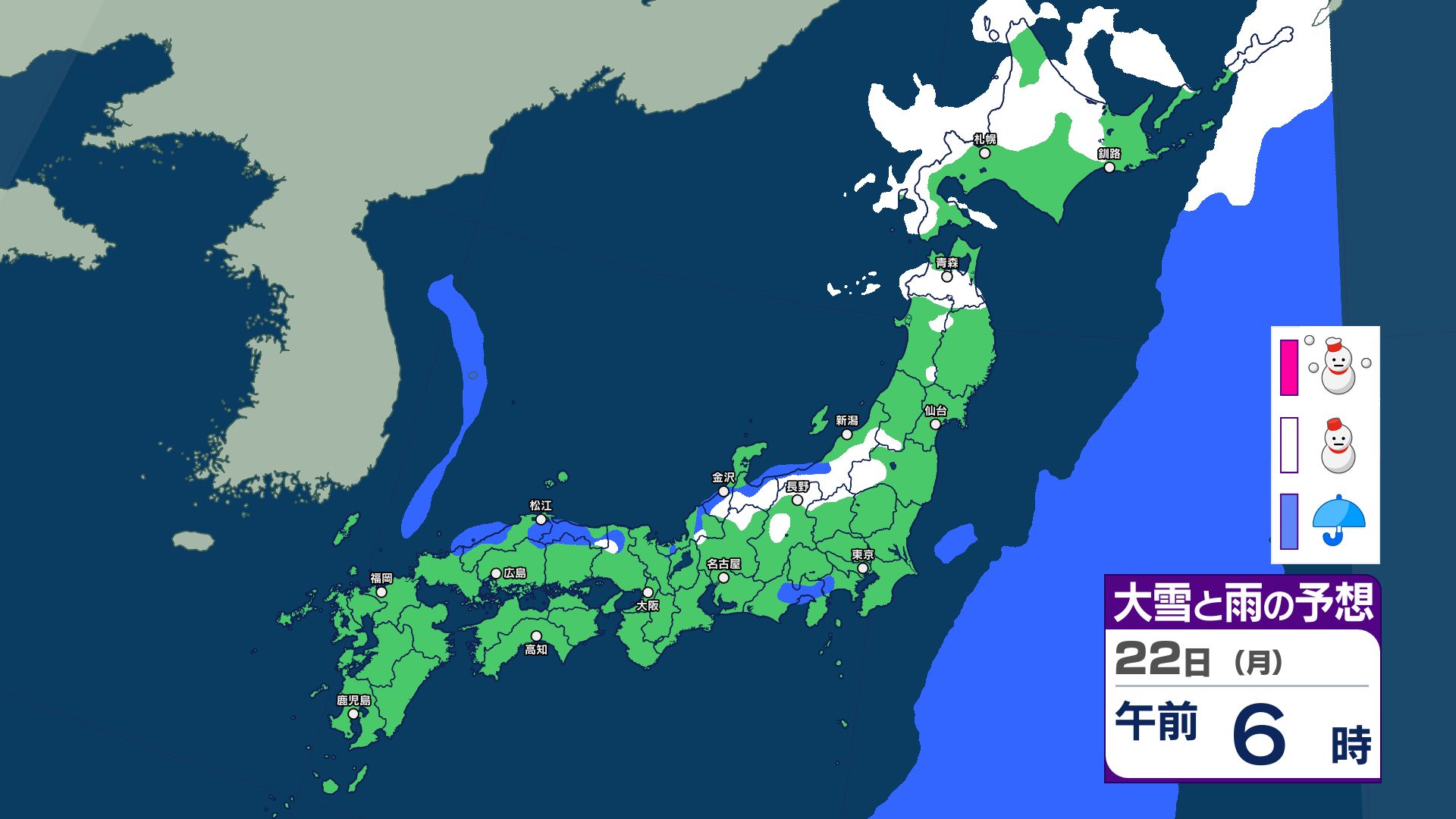 週明けの天気は?22日は寒気流入で日本海側で雪のところも 24日~25日は低気圧と前線の影響で雨や雪予想 26日~冬型で日本海側は雪に【12月26日まで 雪と雨のシミュレーション掲載】 2025年12月21日(日) 15:29 国内 【12月21日~26日 雪と雨のシミュレーション掲載】