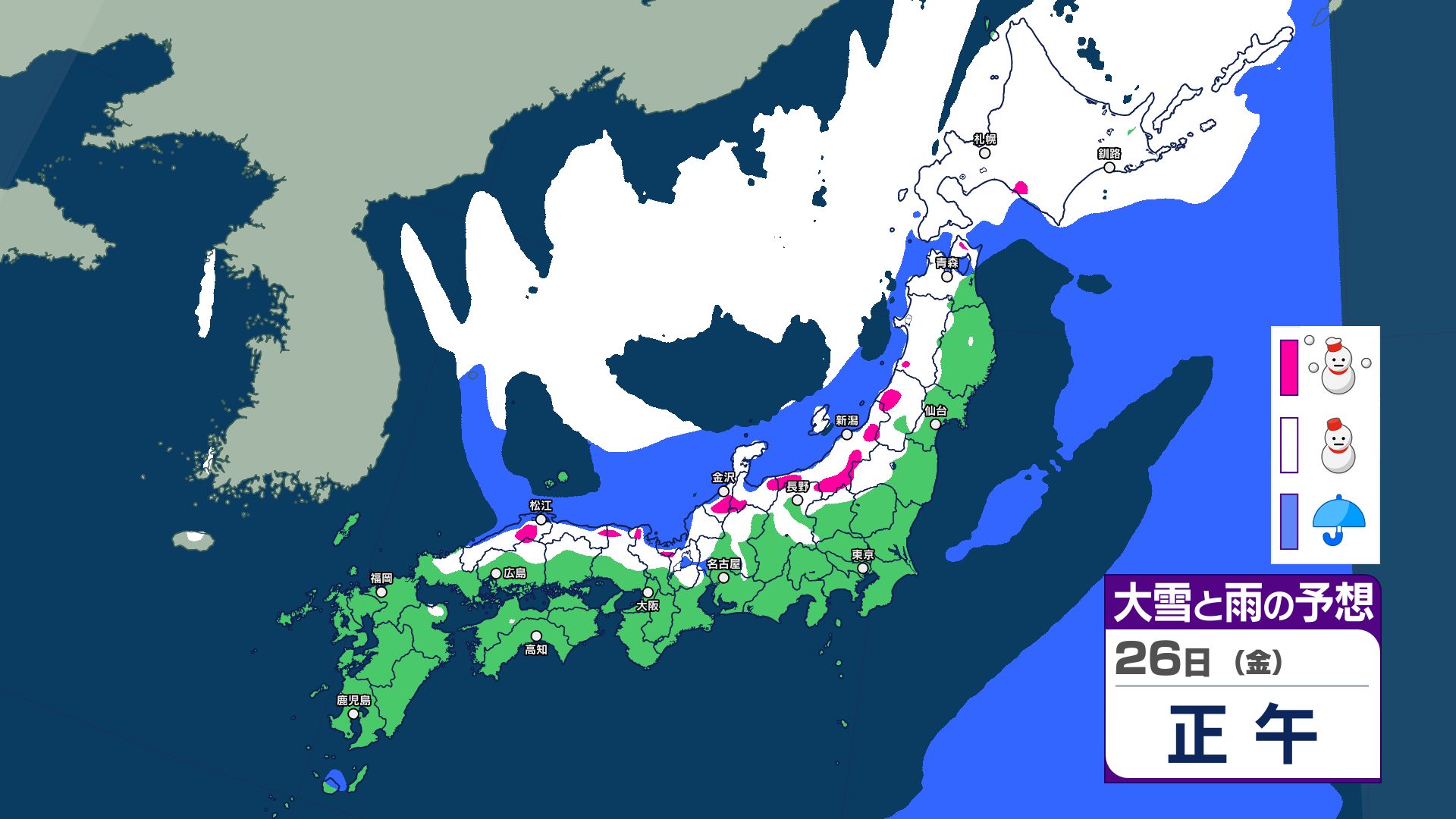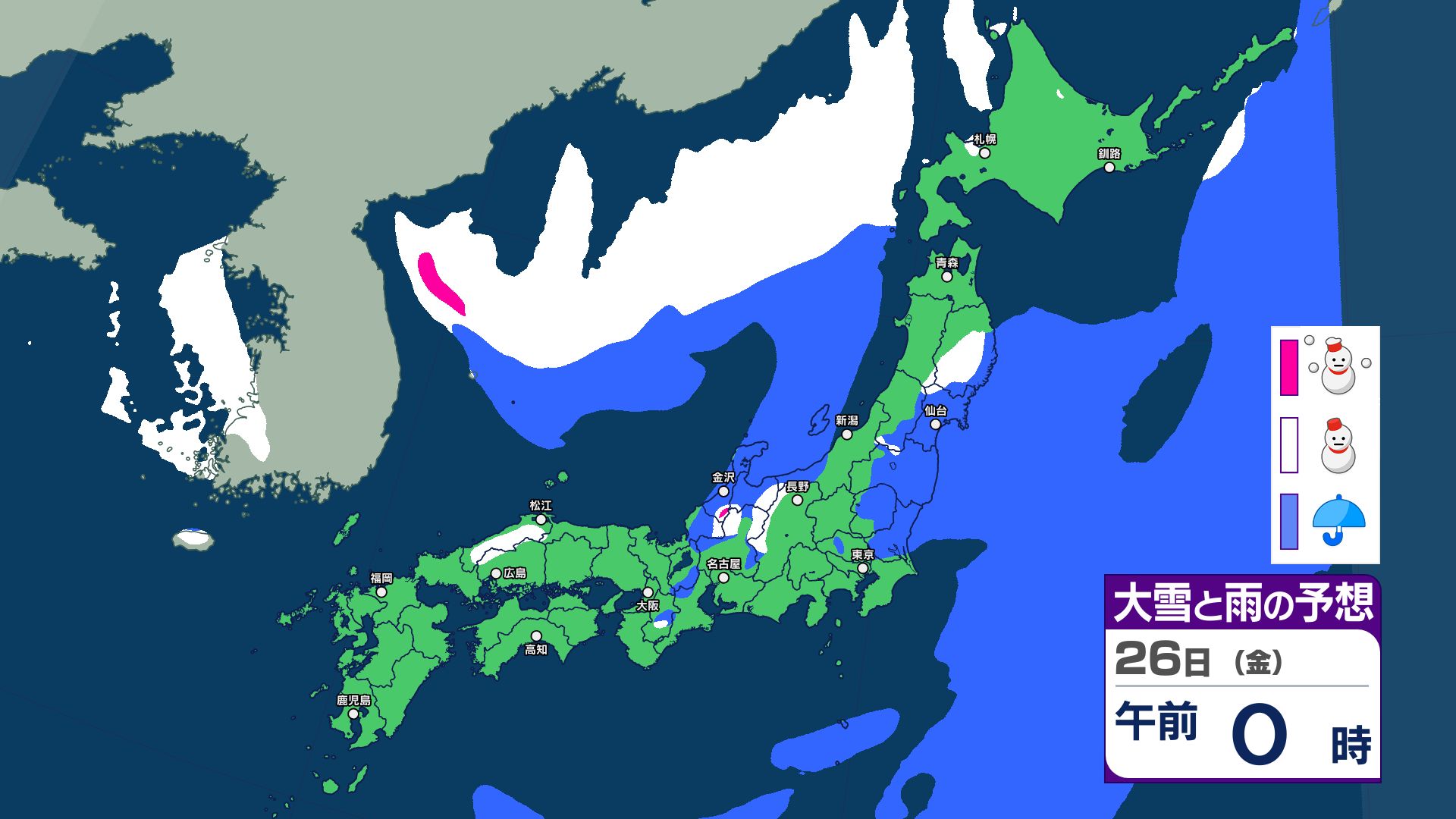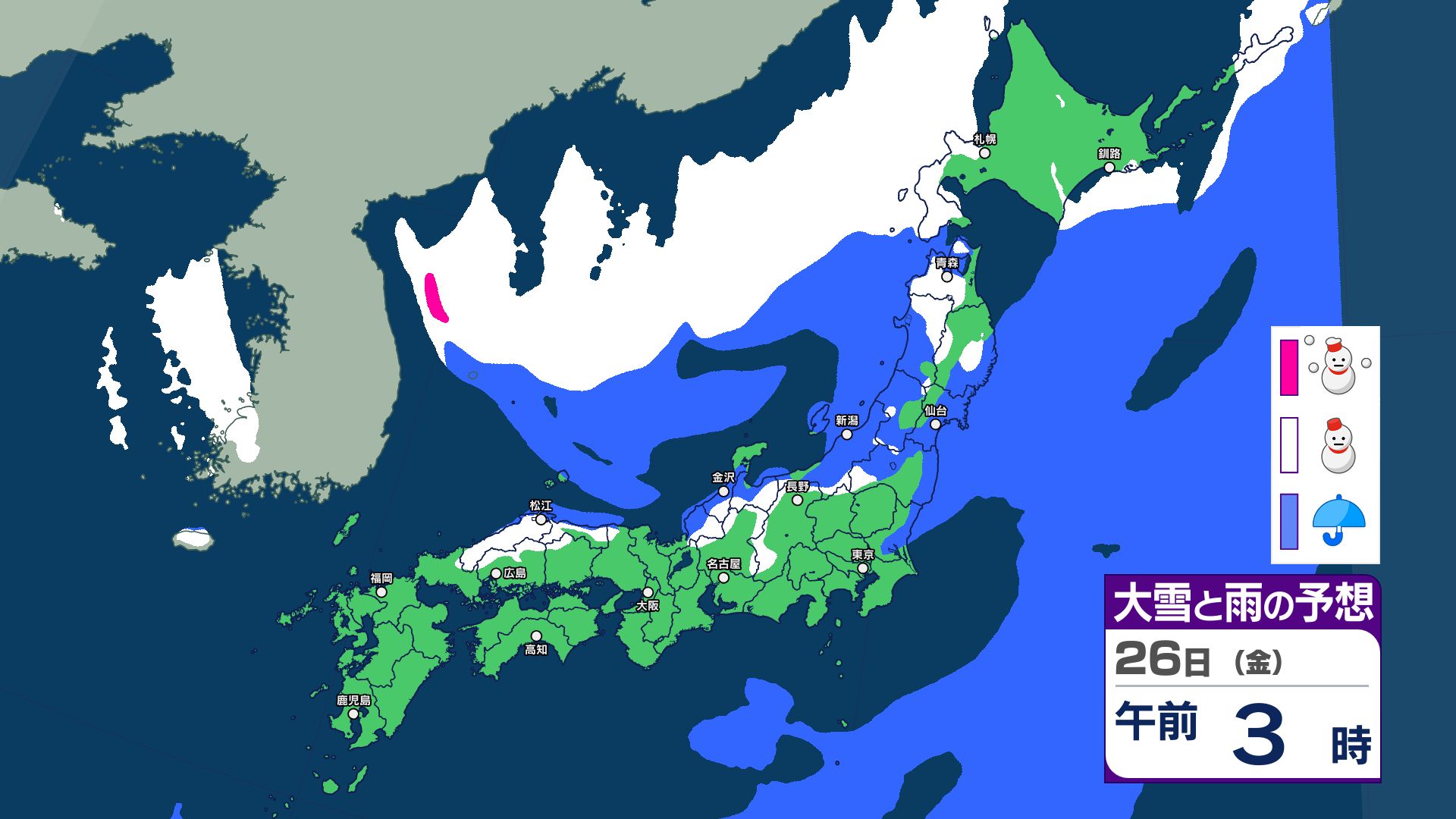 3. 週明けの天気は?22日は寒気流入で日本海側で雪のところも 24日~25日は低気圧と前線の影響で雨や雪予想 26日~冬型で日本海側は雪に【12月26日まで 雪と雨のシミュレーション掲載】