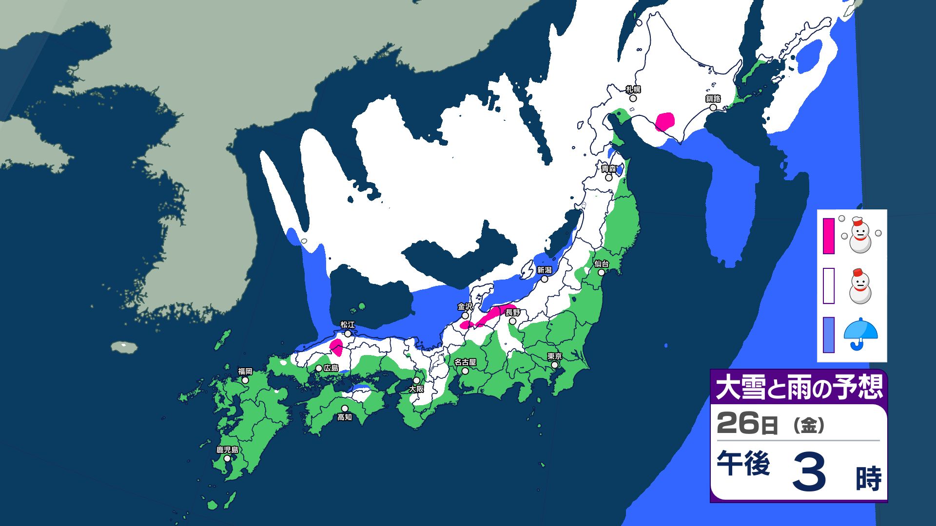 21日にかけて激しい雨や土砂災害に注意…前線通過後の22日は寒気流入で日本海側で雪…