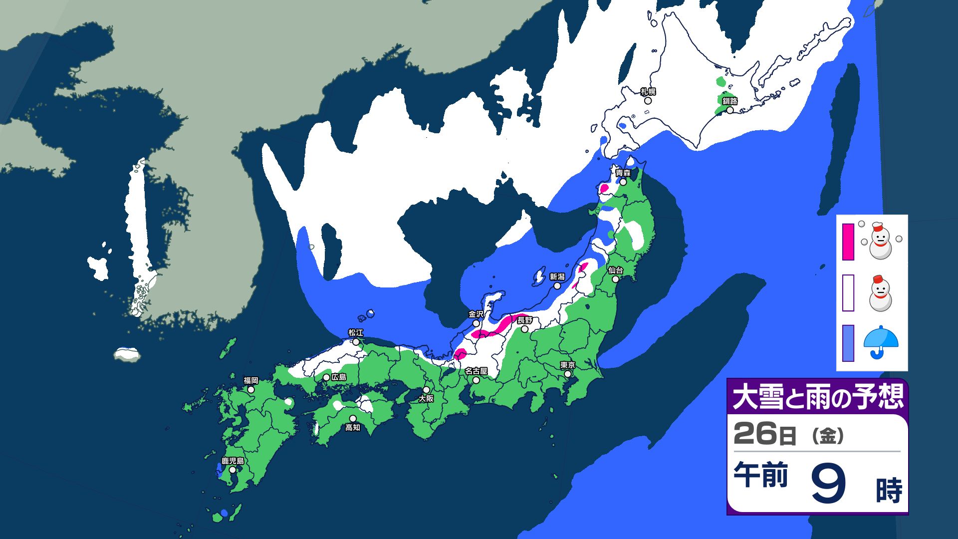 週明けの天気は?22日は寒気流入で日本海側で雪のところも 24日~25日は低気圧と前線の影響で雨や雪予想 26日~冬型で日本海側は雪に【12月26日まで 雪と雨のシミュレーション掲載】