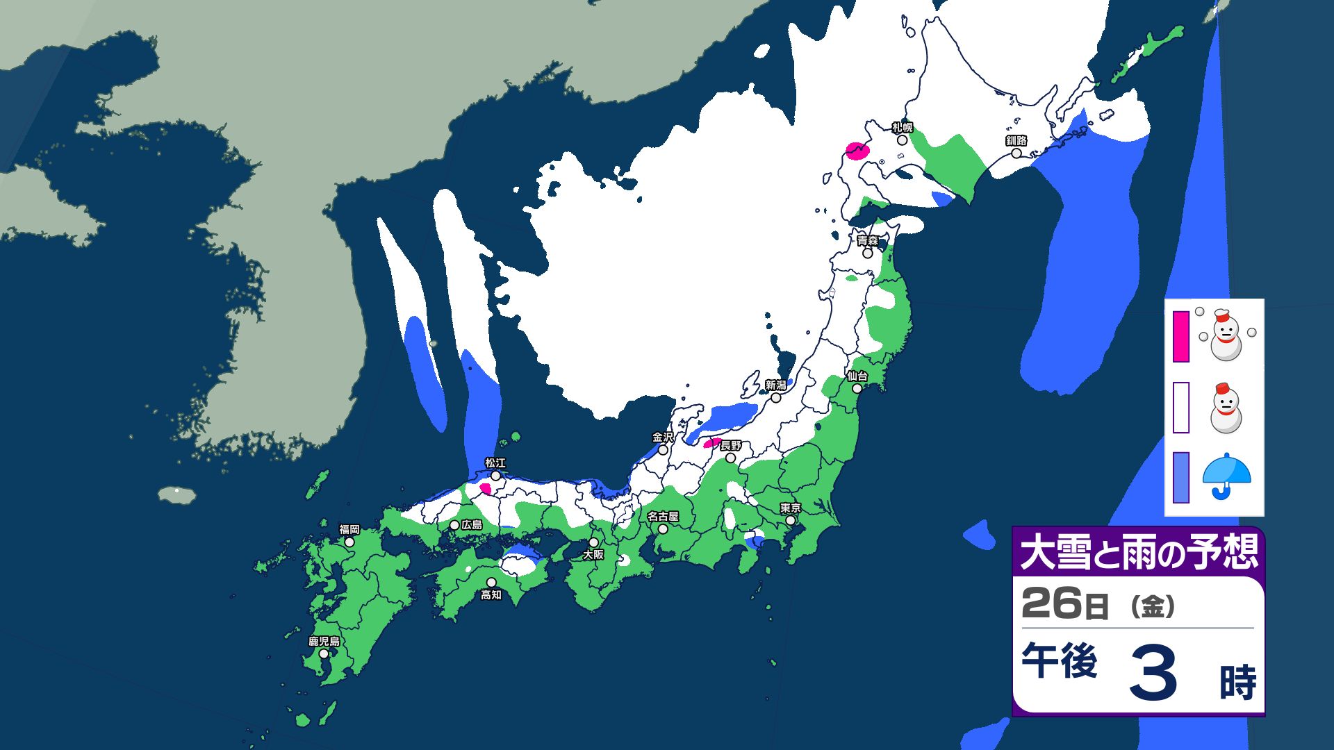 26日は荒れた天気…冬型の気圧配置で日本海側「大雪の可能性」 24日~25日は低気圧の通過で広い範囲で雨予想【12月27日まで 雪と雨のシミュレーション掲載】 2025年12月22日(月) 11:38 国内