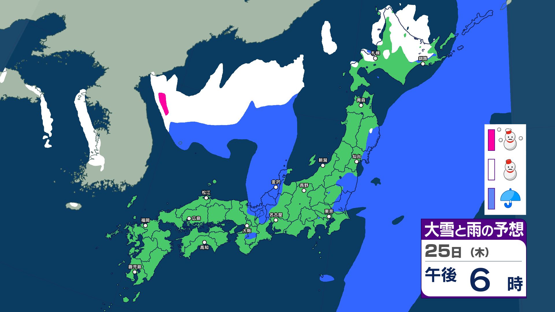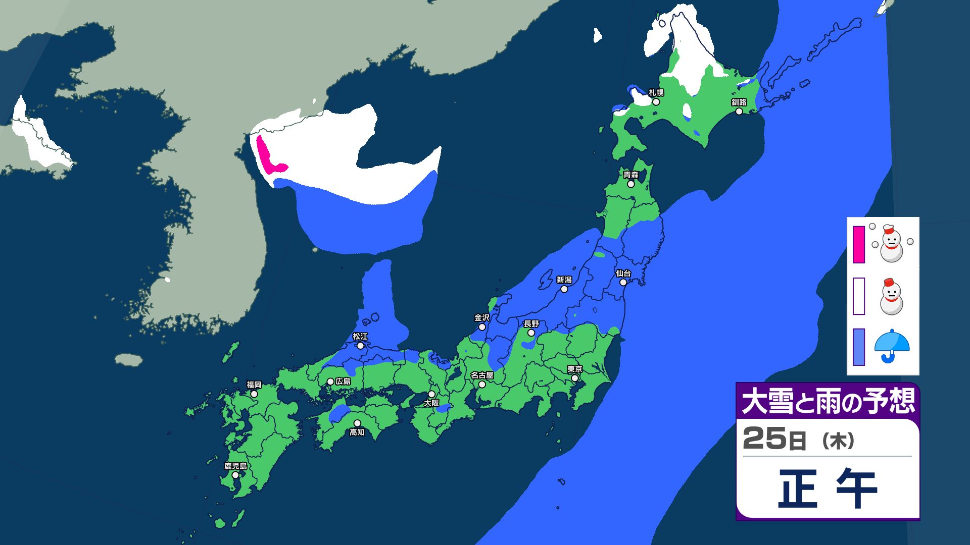 26日は荒れた天気…冬型の気圧配置で日本海側「大雪の可能性」 24日~25日は低気圧…