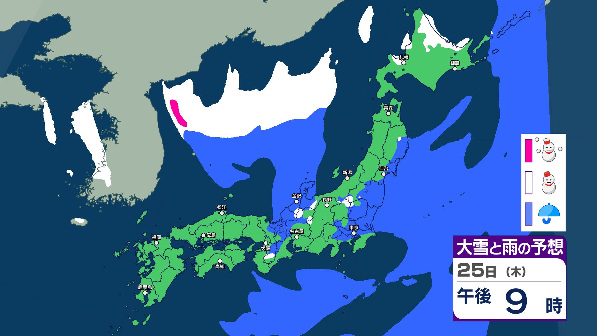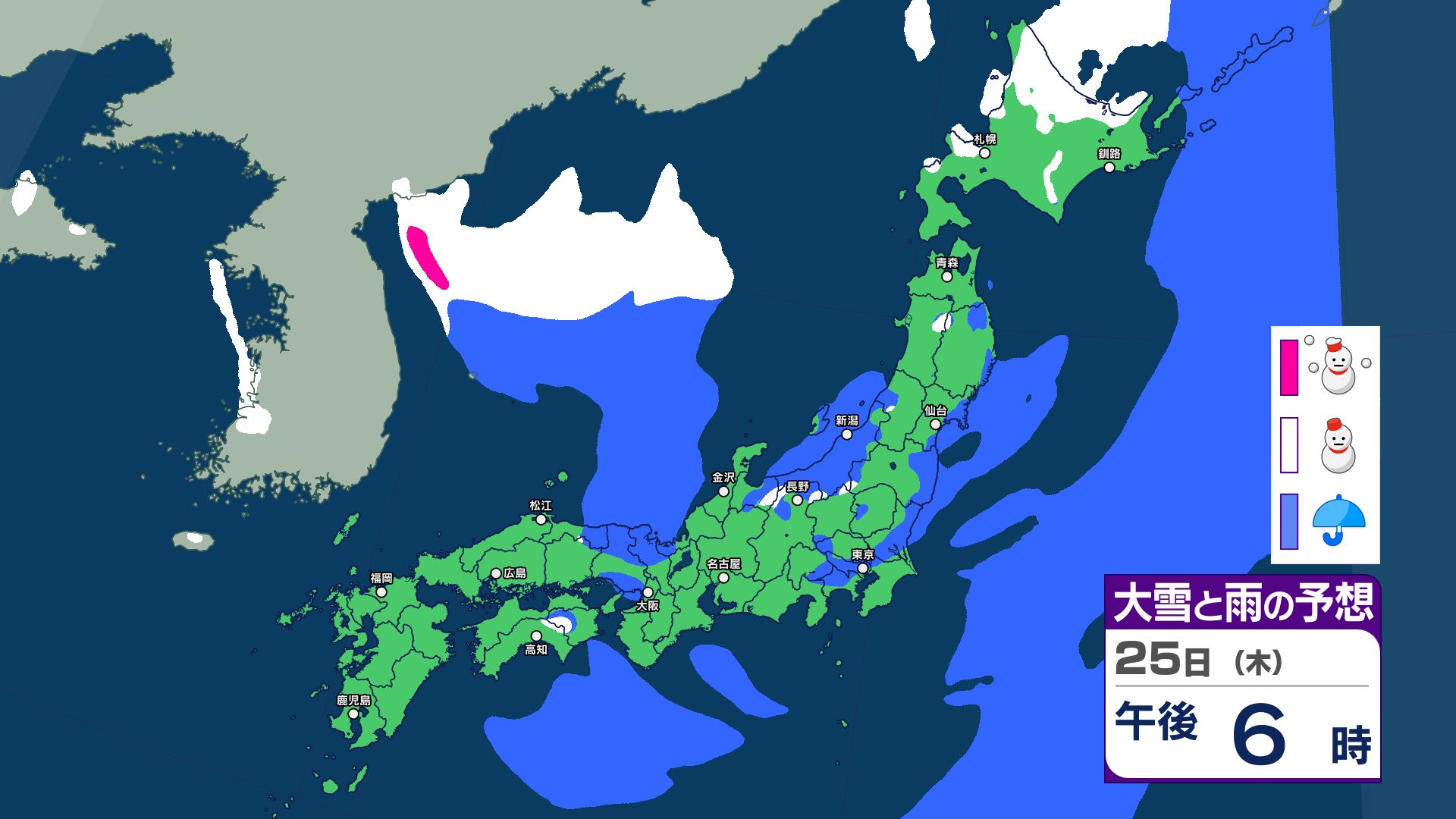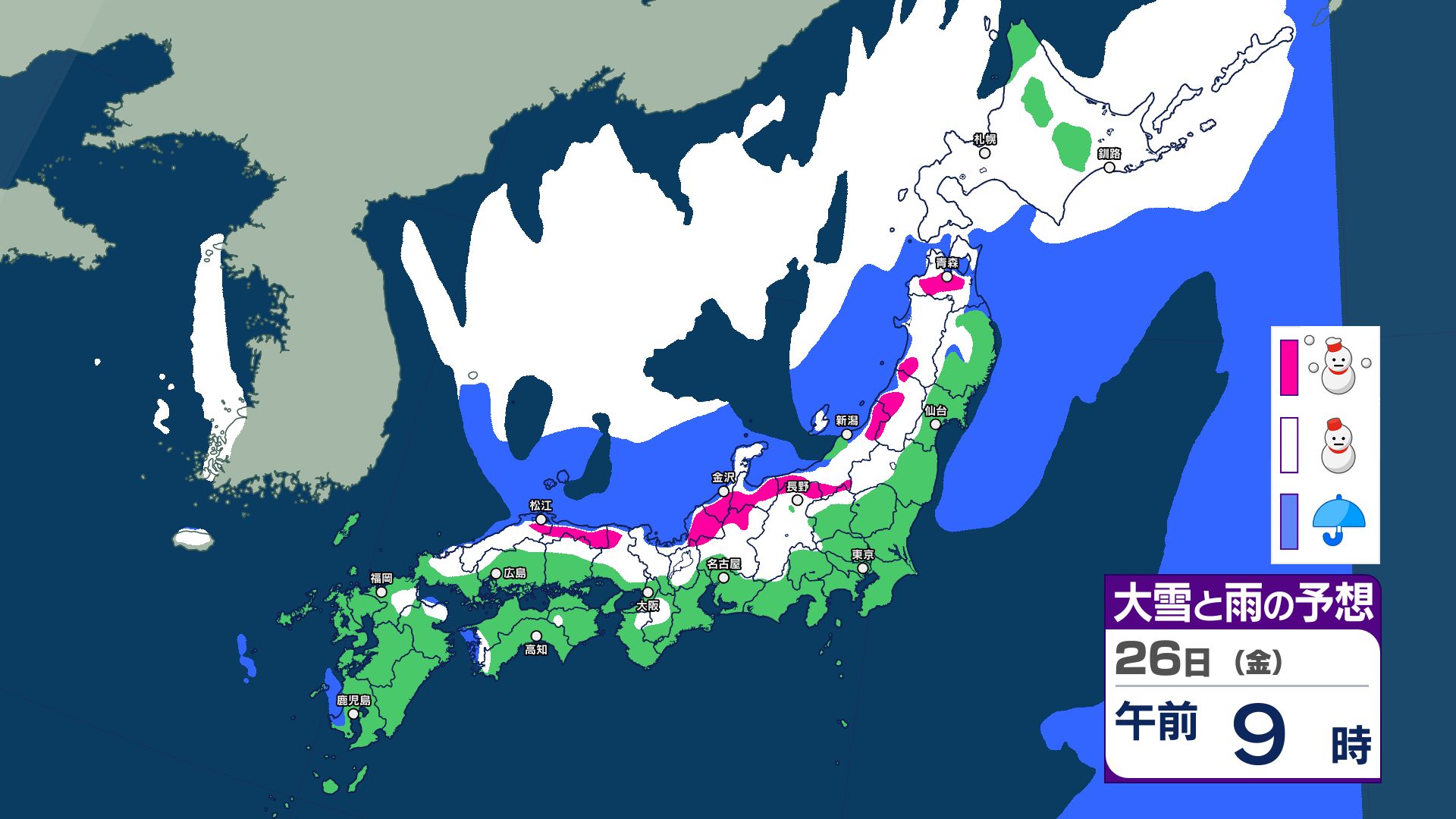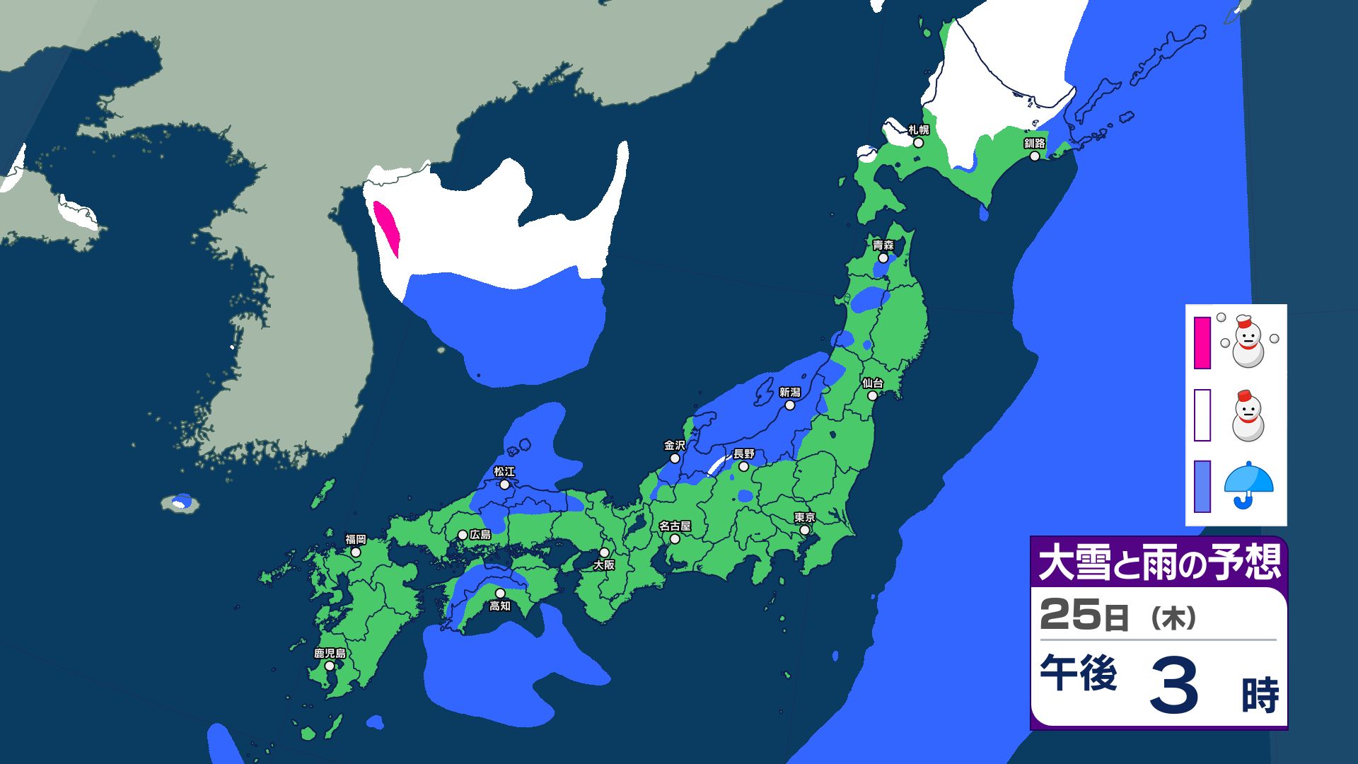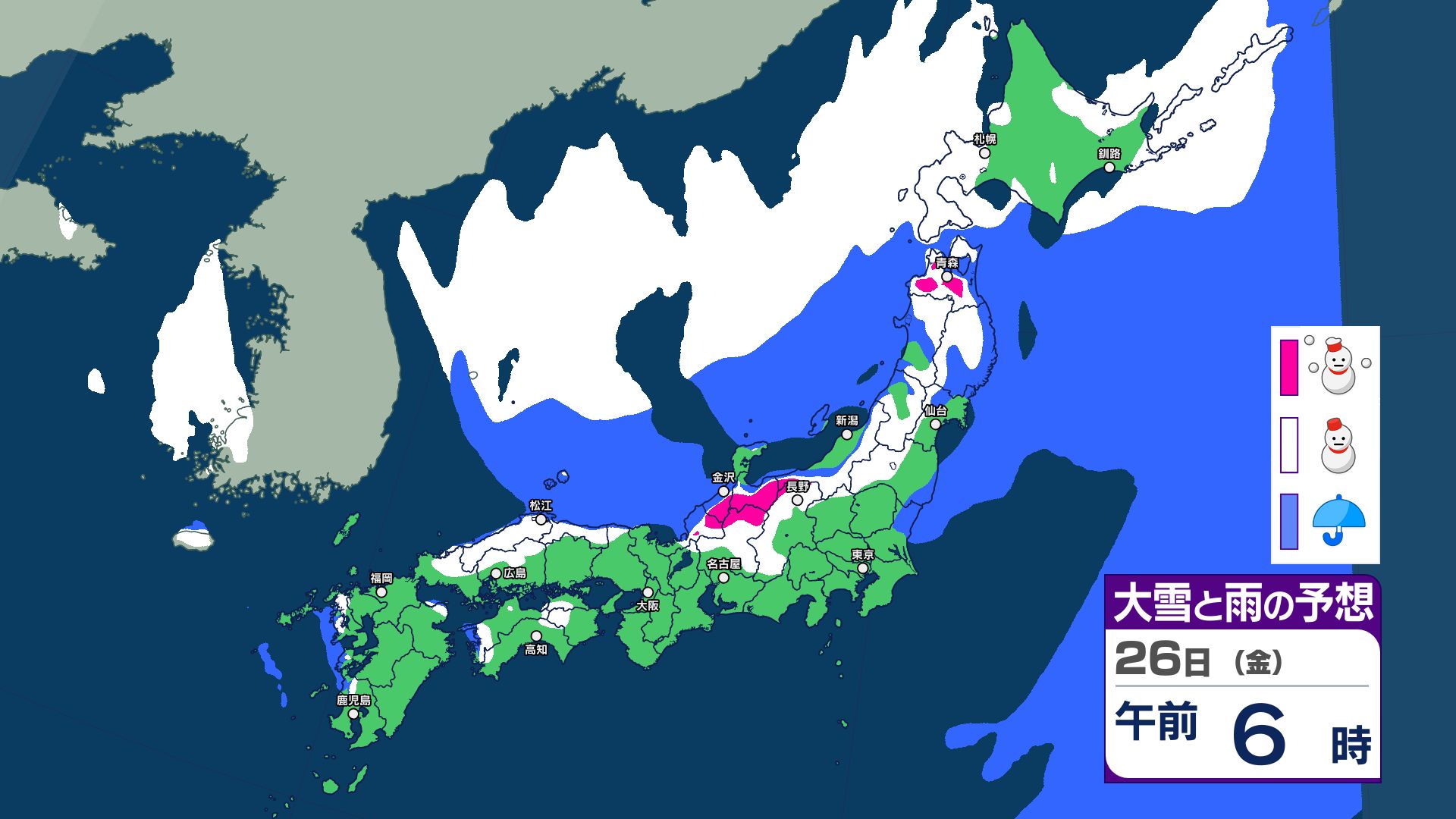 強い寒気…26日は「警報級の大雪の可能性」早期注意情報 長野・群馬・新潟・富山・岐阜 24日~25日は広い範囲で雨予想…関東南部 神奈川・千葉で大雨警報の可能性【12月28日まで 雪と雨のシミュレーション掲載】 2025年12月23日(火) 17:15 国内